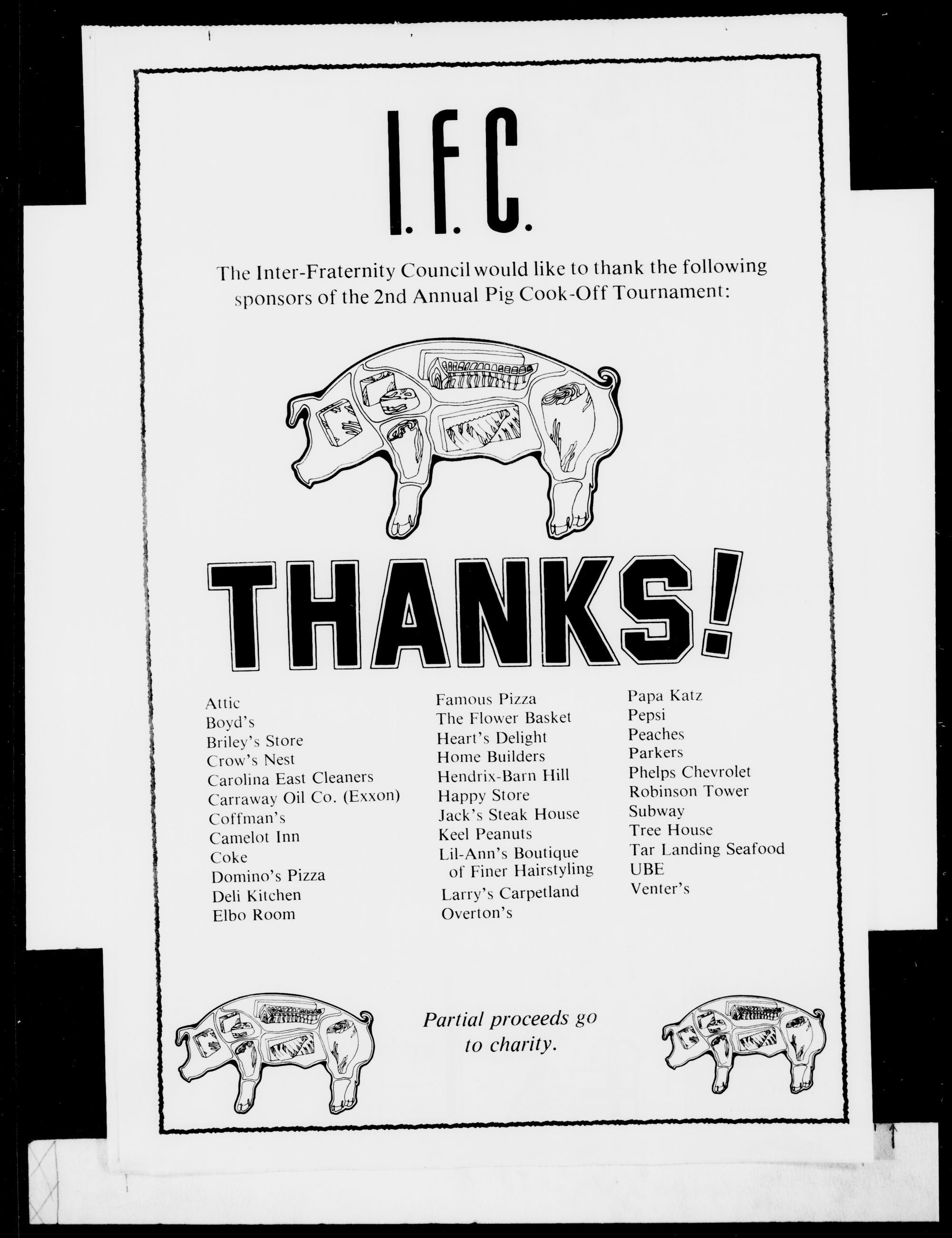 sponsors of the 2nd Annual Pig Cook-Off Tournament: