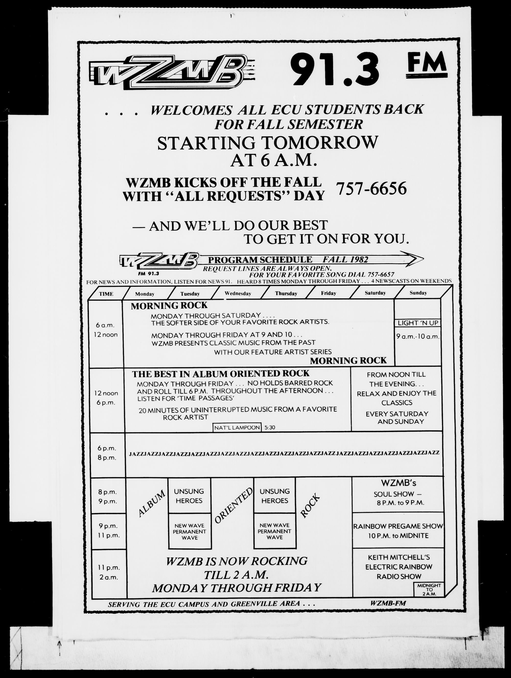 PROGRAM SCHEDULE FALL 1982