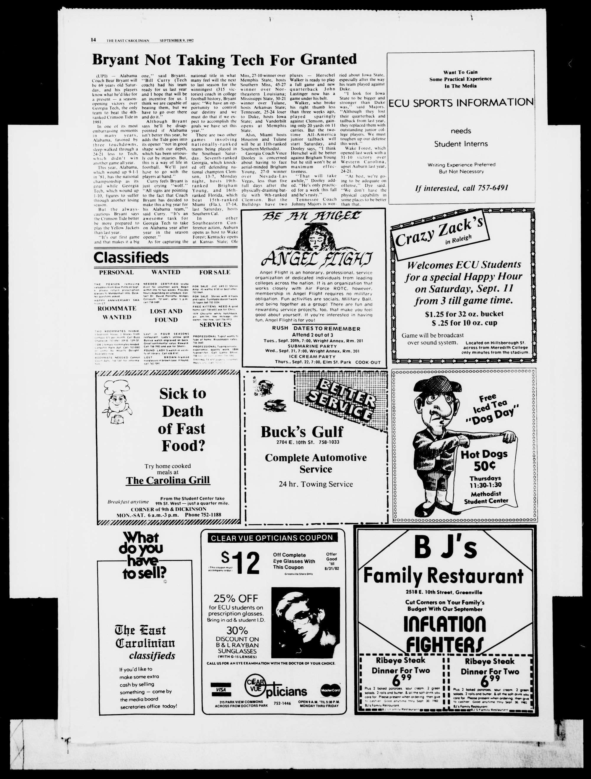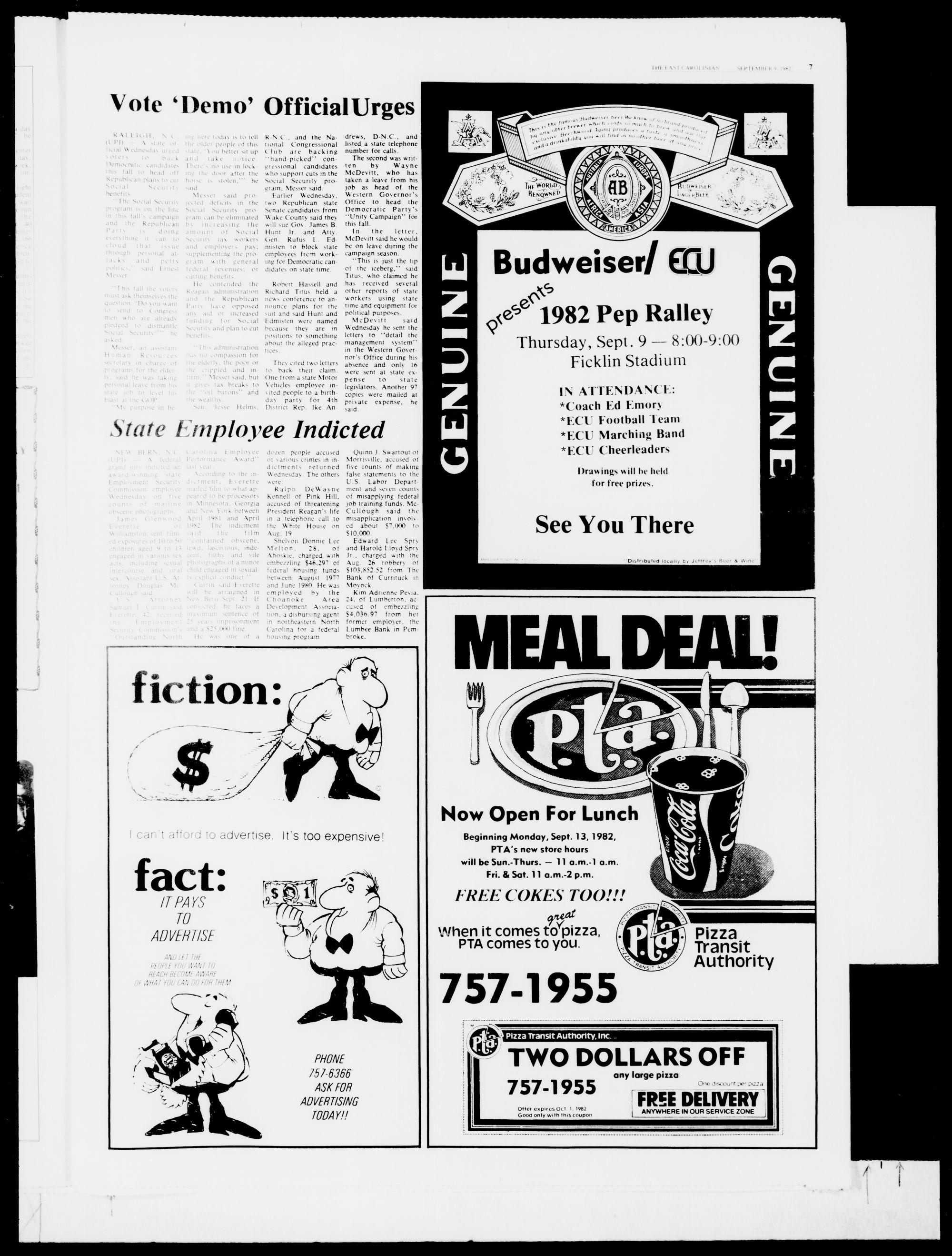 East Carolina's student-run campus newspaper was first published in 1923 as the East Carolina Teachers College News (1923-1925). It has been re-named as The Teco Echo (1925, 1926-1952), East Carolinian (1952-1969), Fountainhead (1969-1979), and The East Carolinian (1969, 1979-present). It includes local, state, national, and international stories with a focus on campus events.