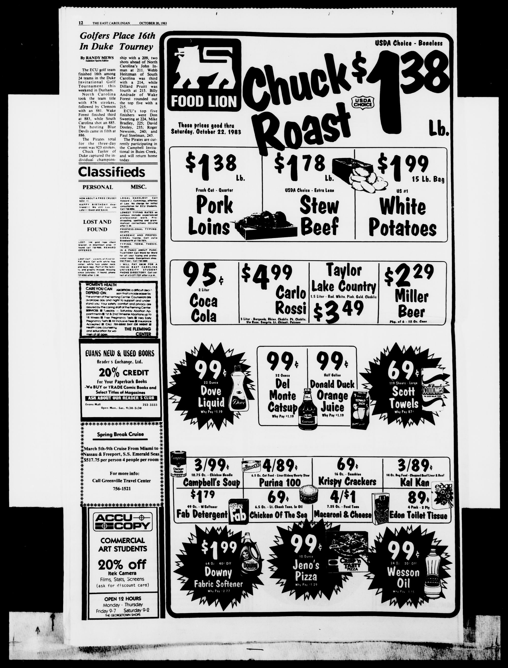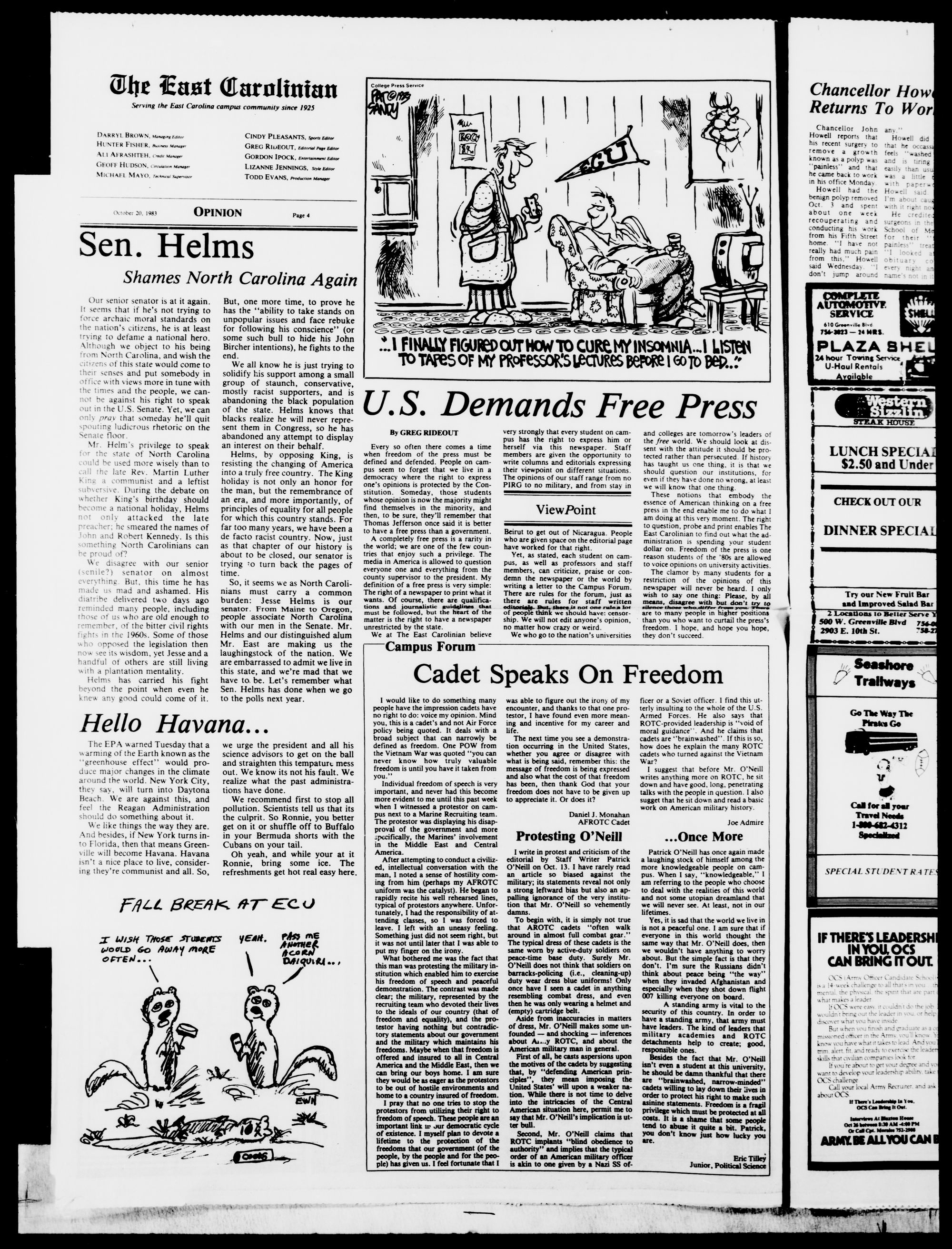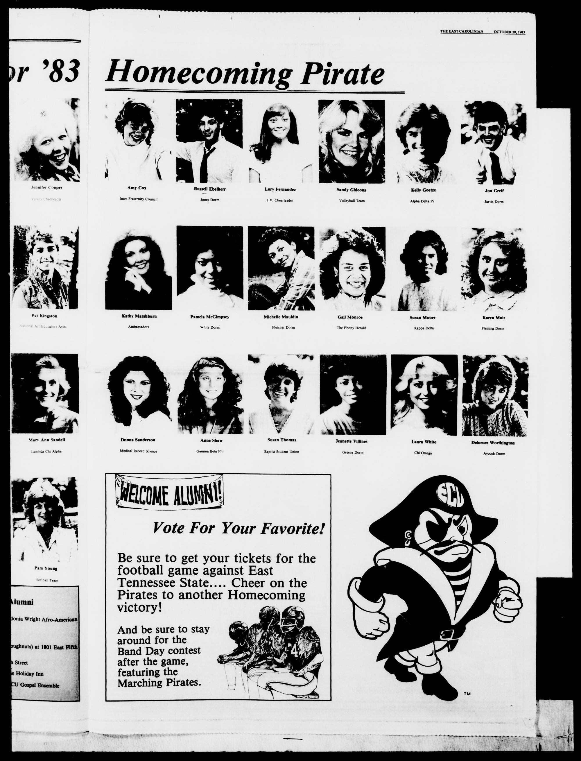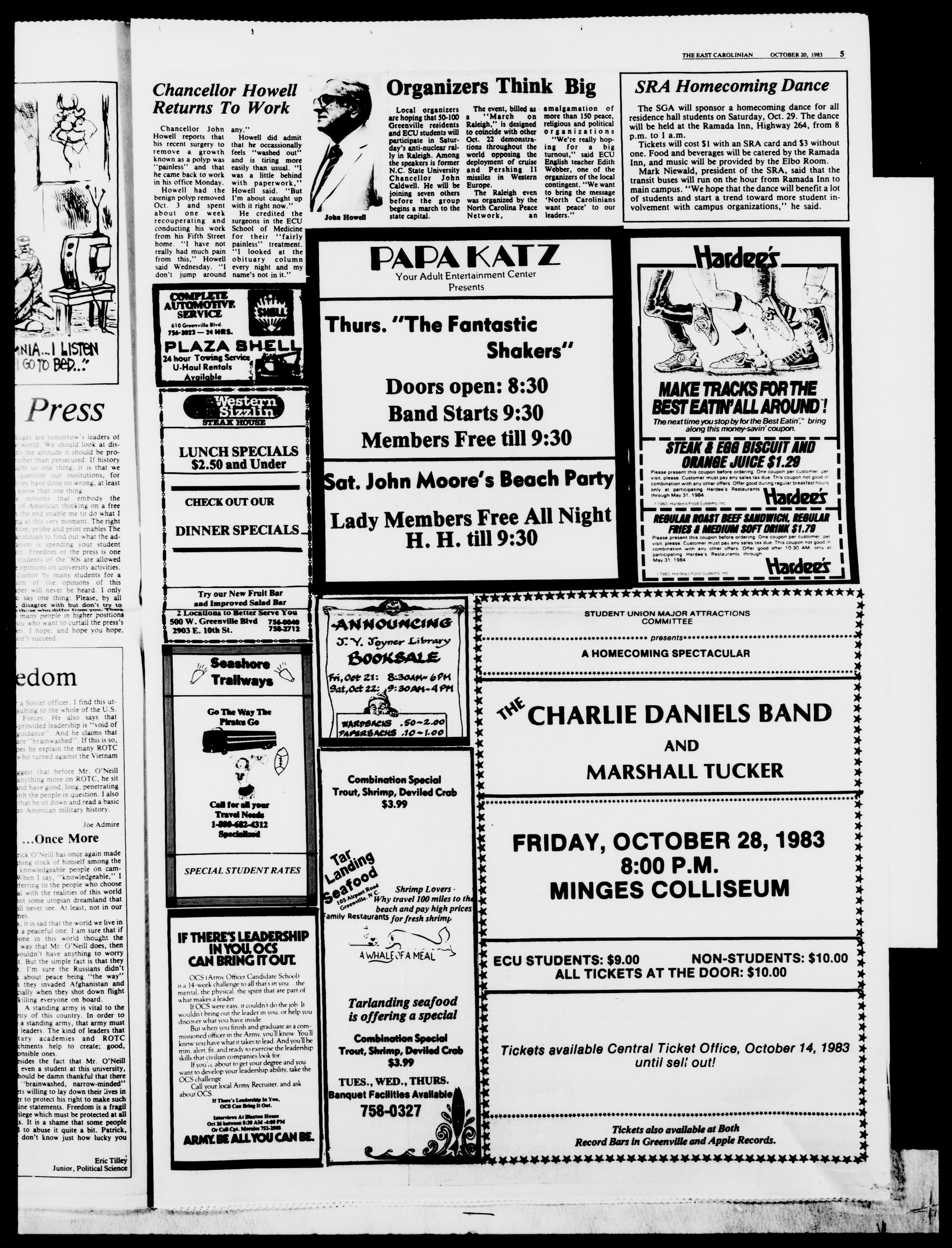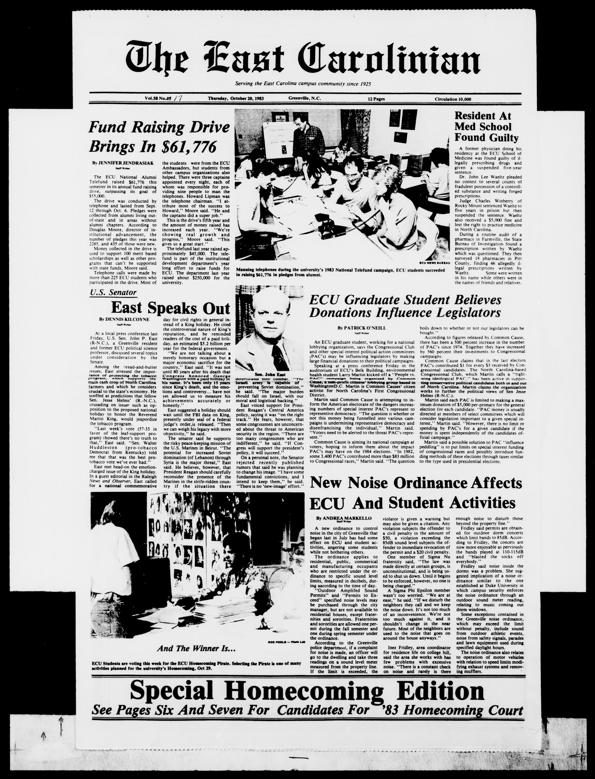 Manning telephones during the university's 1983 National Telefund campaign, ECU students succeeded