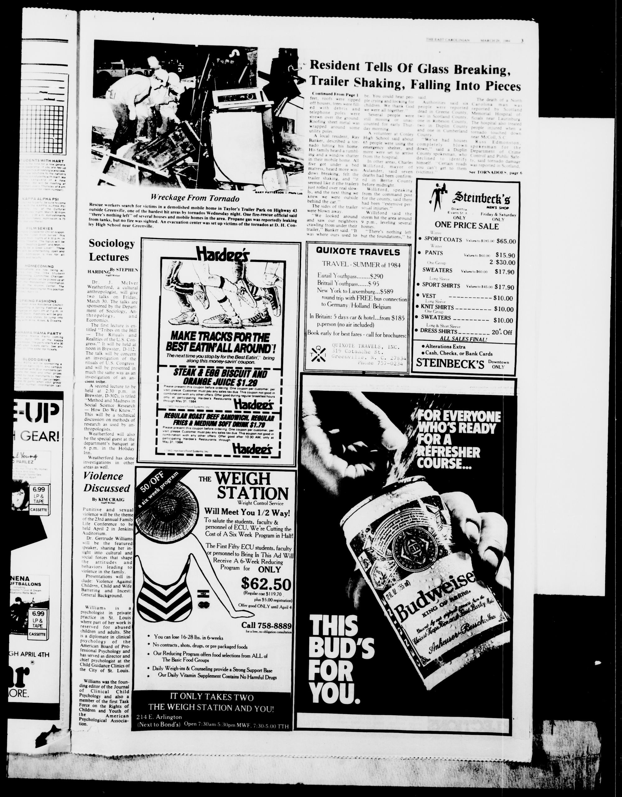 from tornados hitting Pitt County Wednesday night, and at least 43