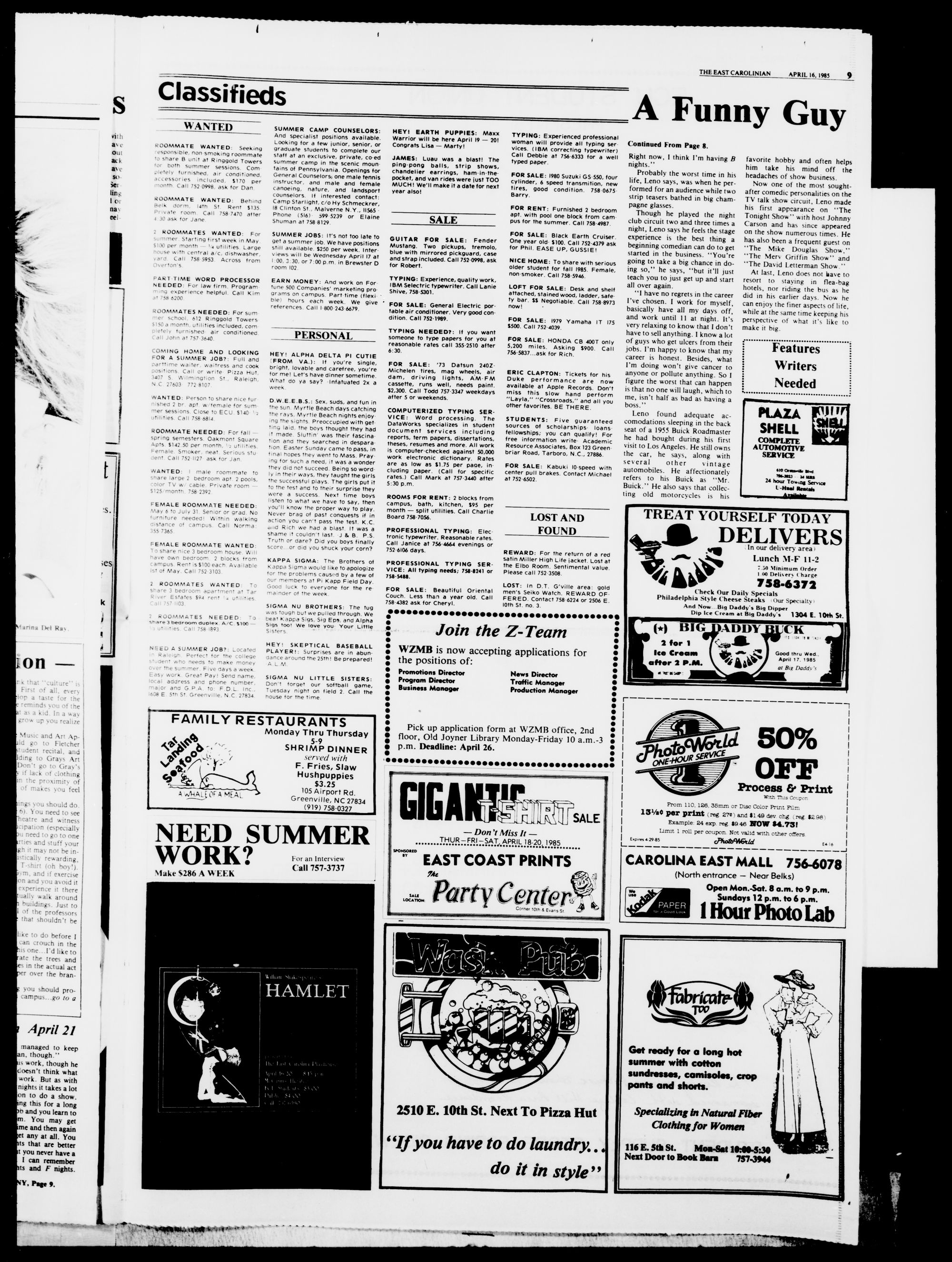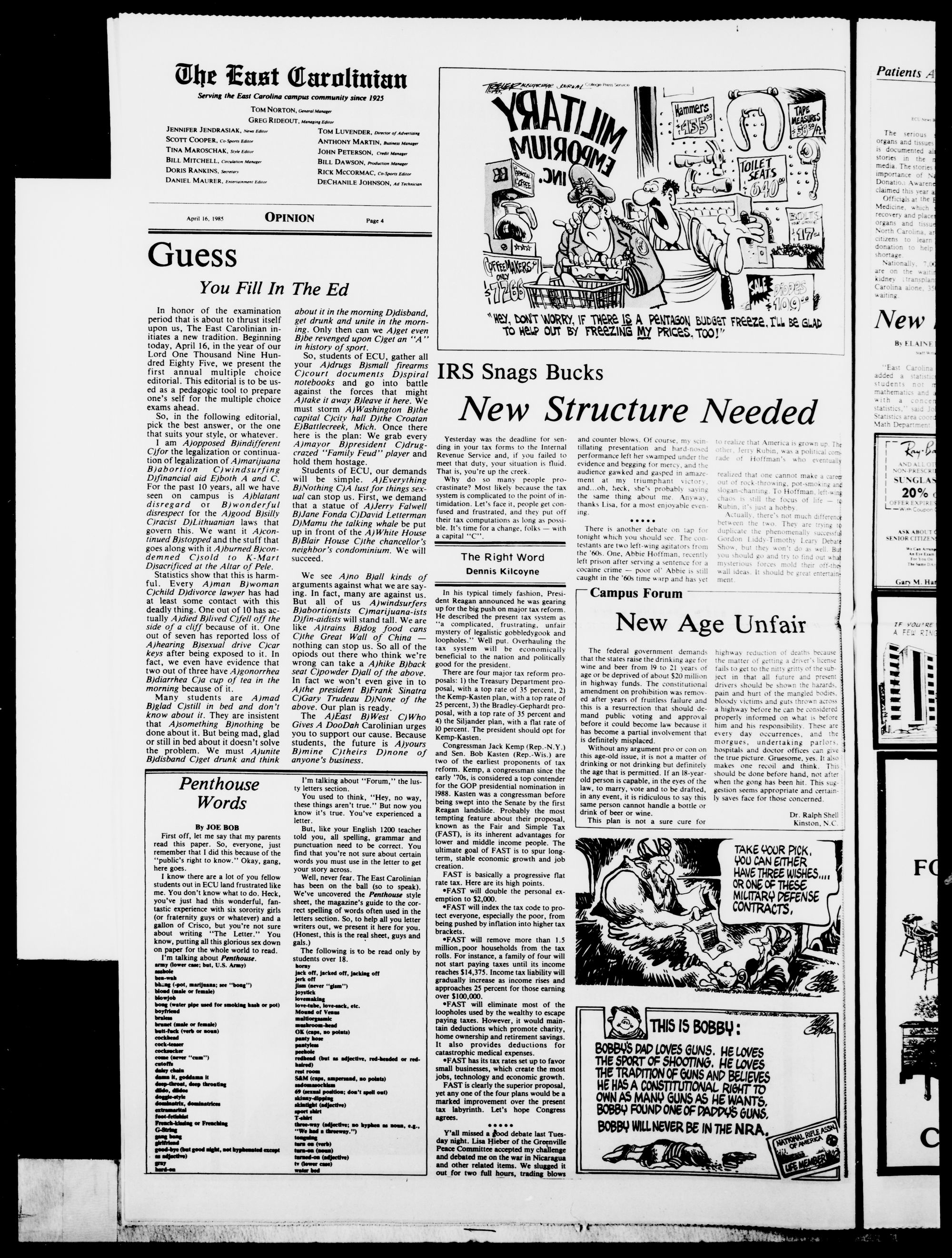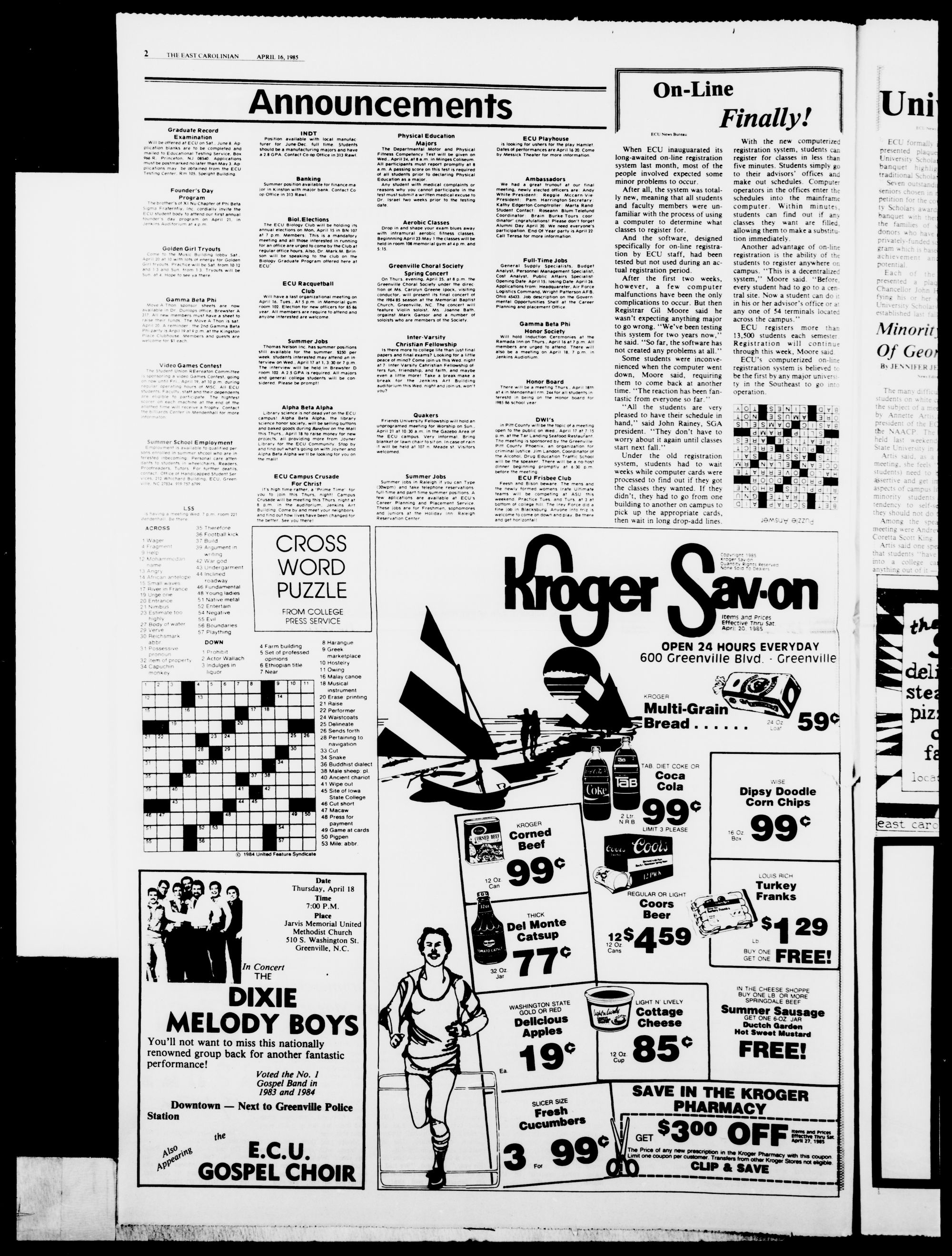?IHEEAST CAROLINIAN APRIL 16,1985