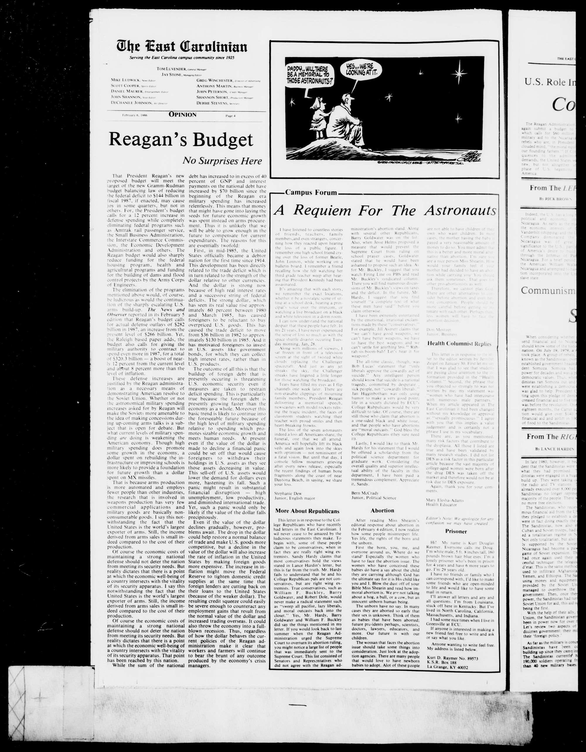 Reagan, in his budget, also