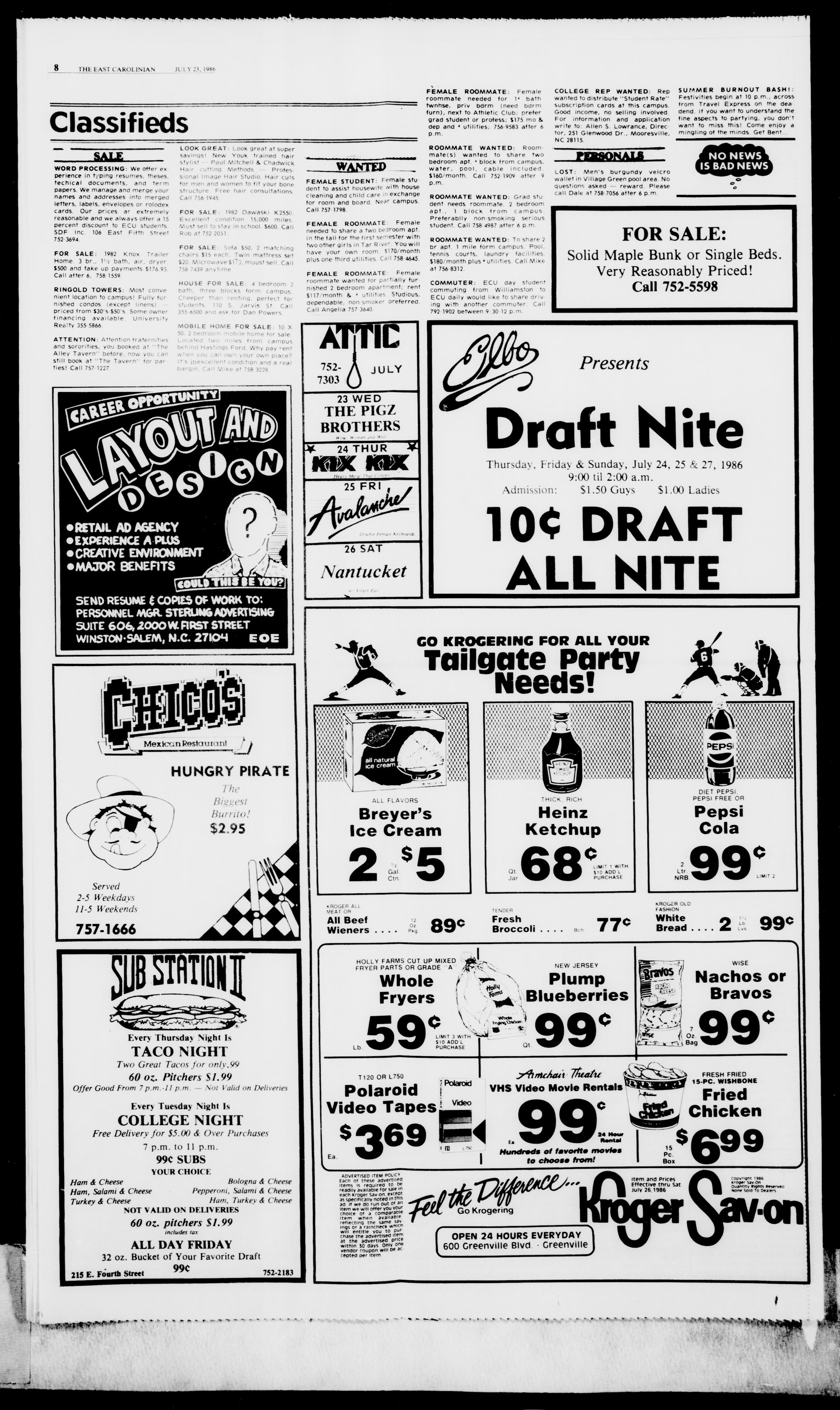 Thursday, Friday & Sunday, July 24, 25 & 27, 1986