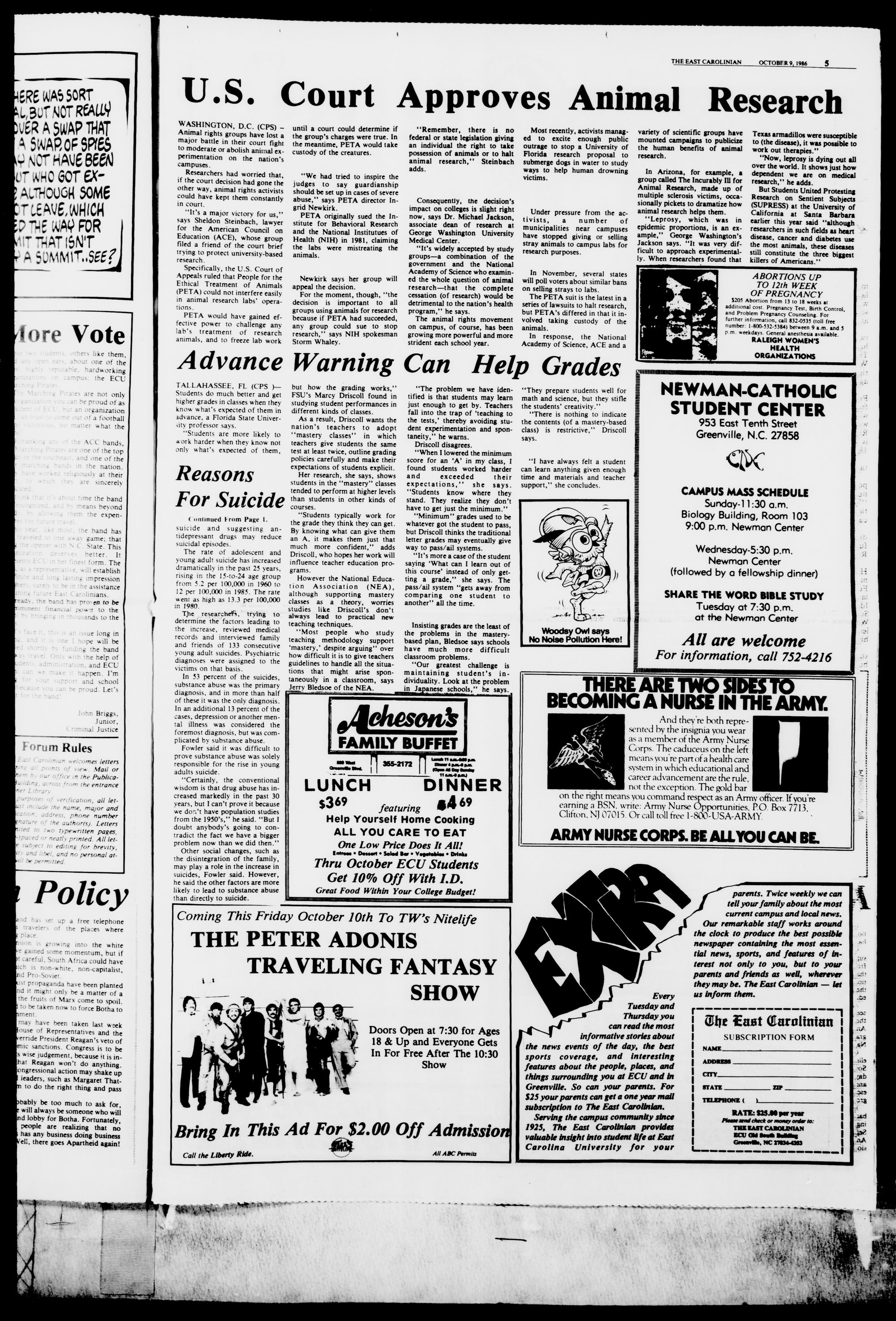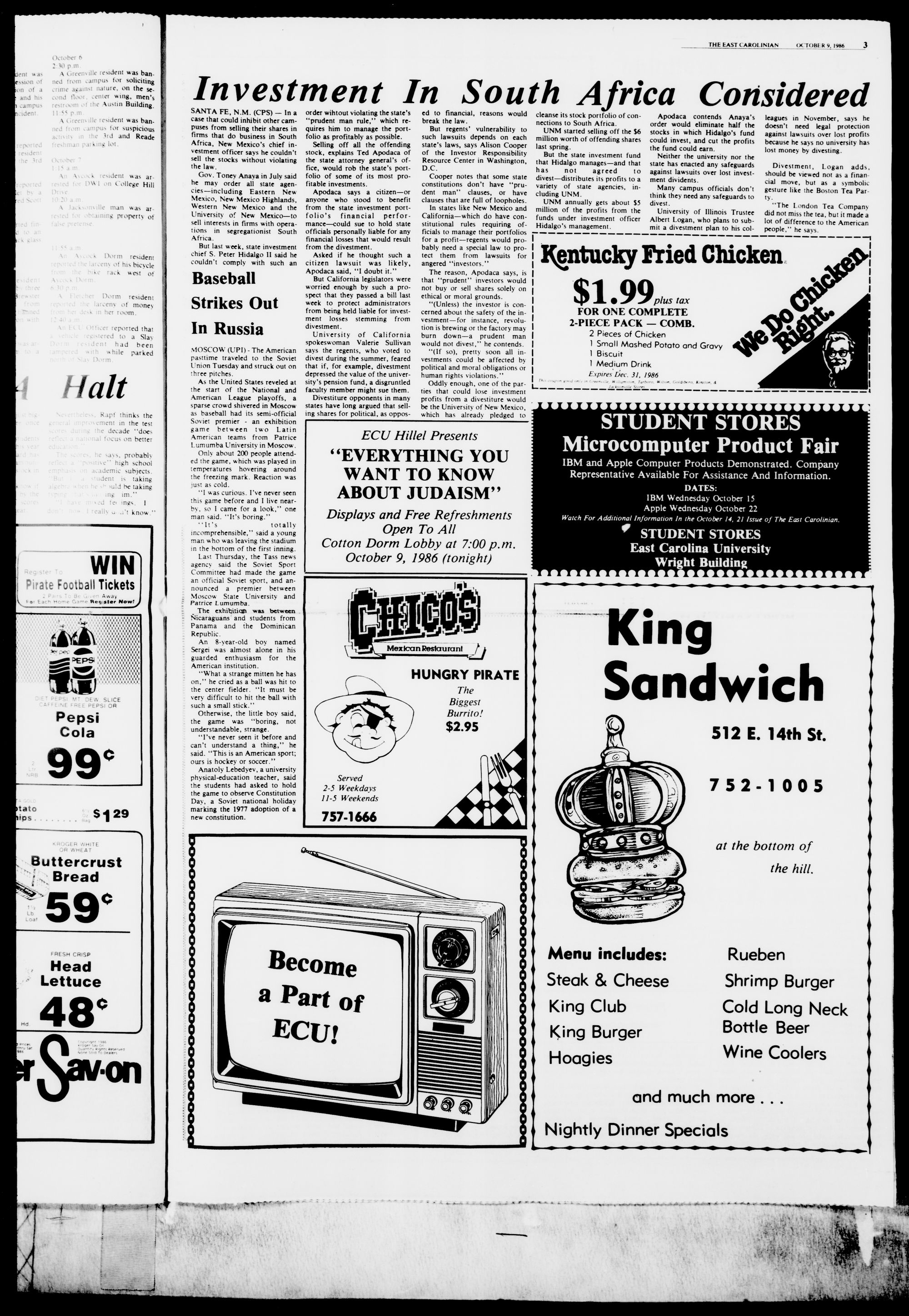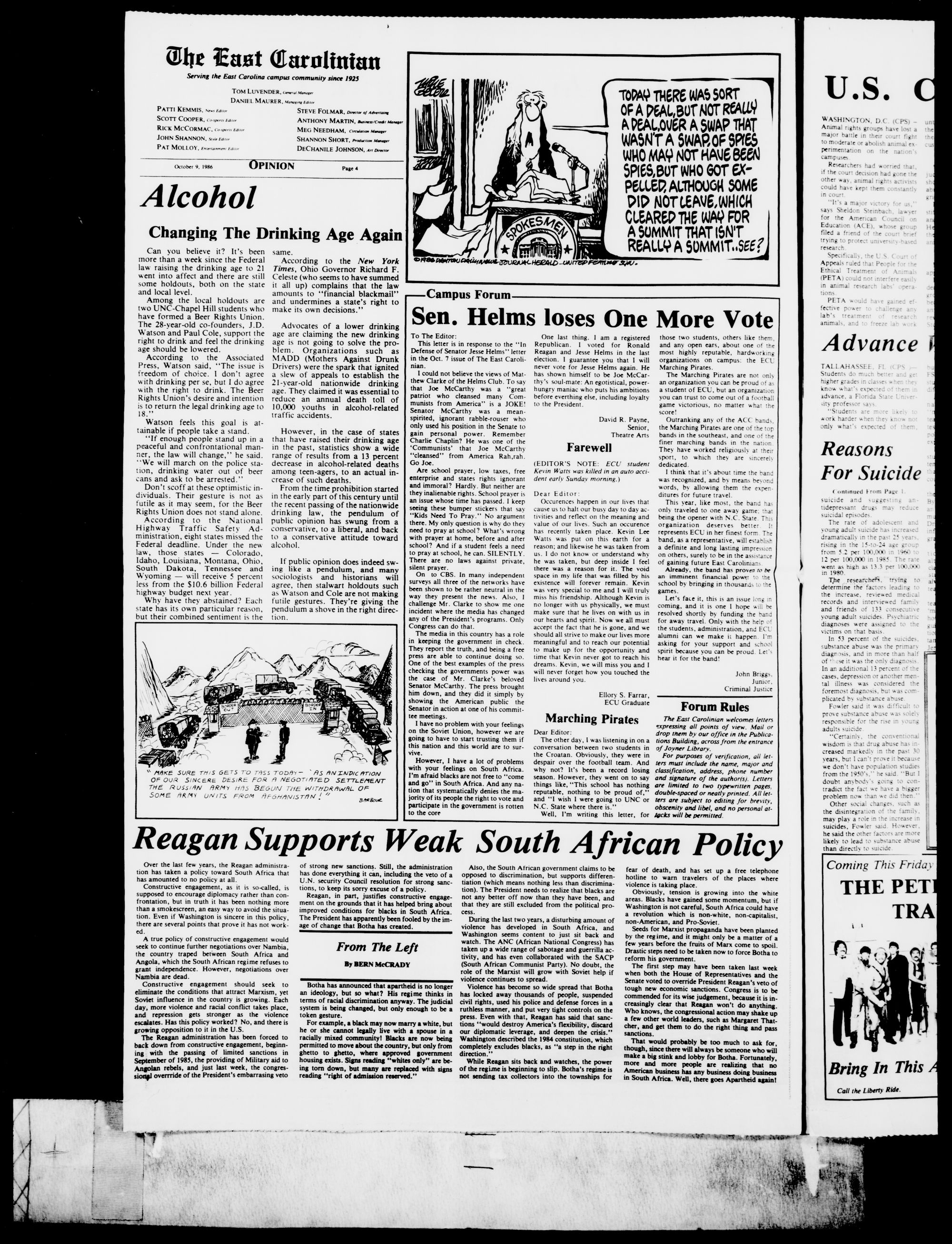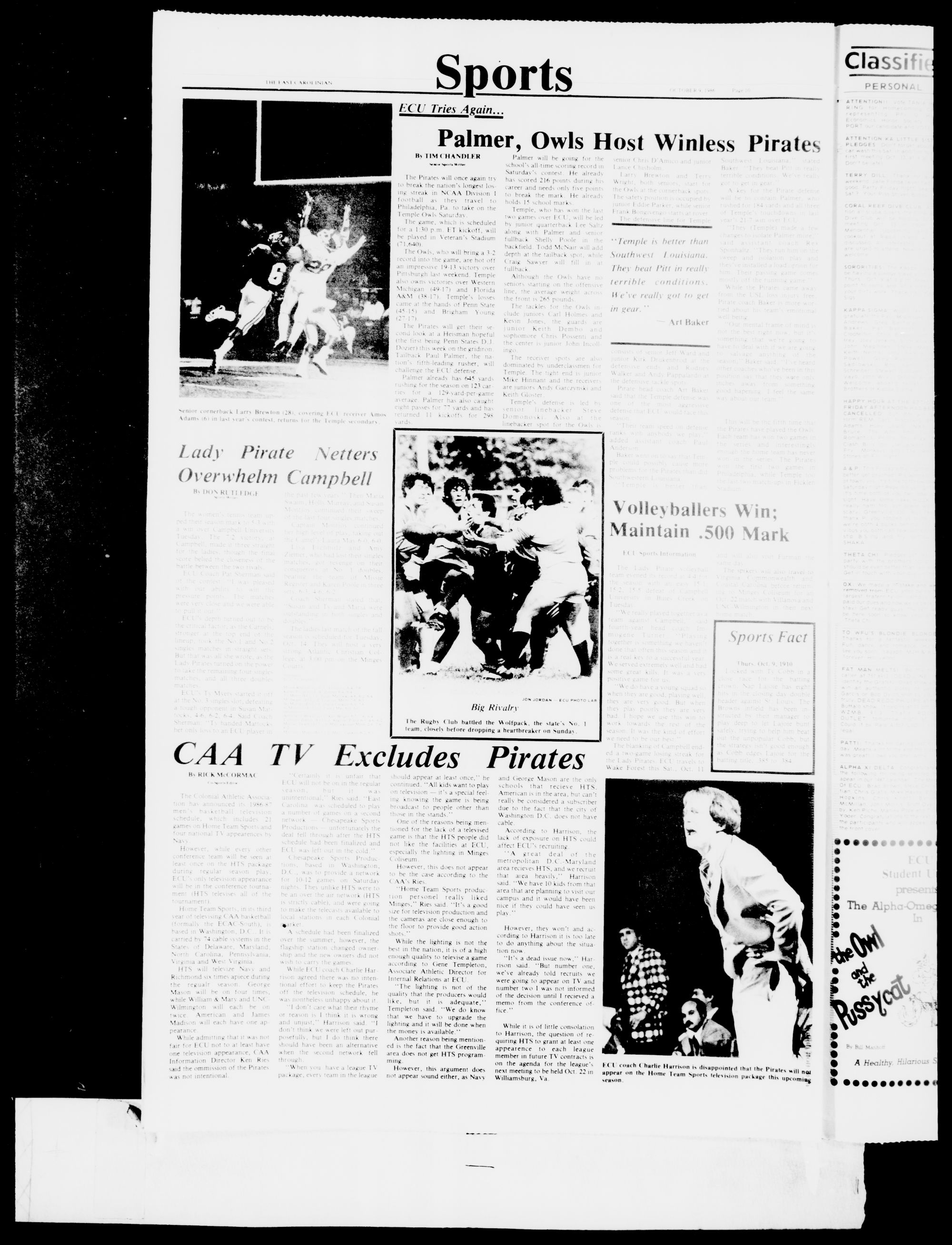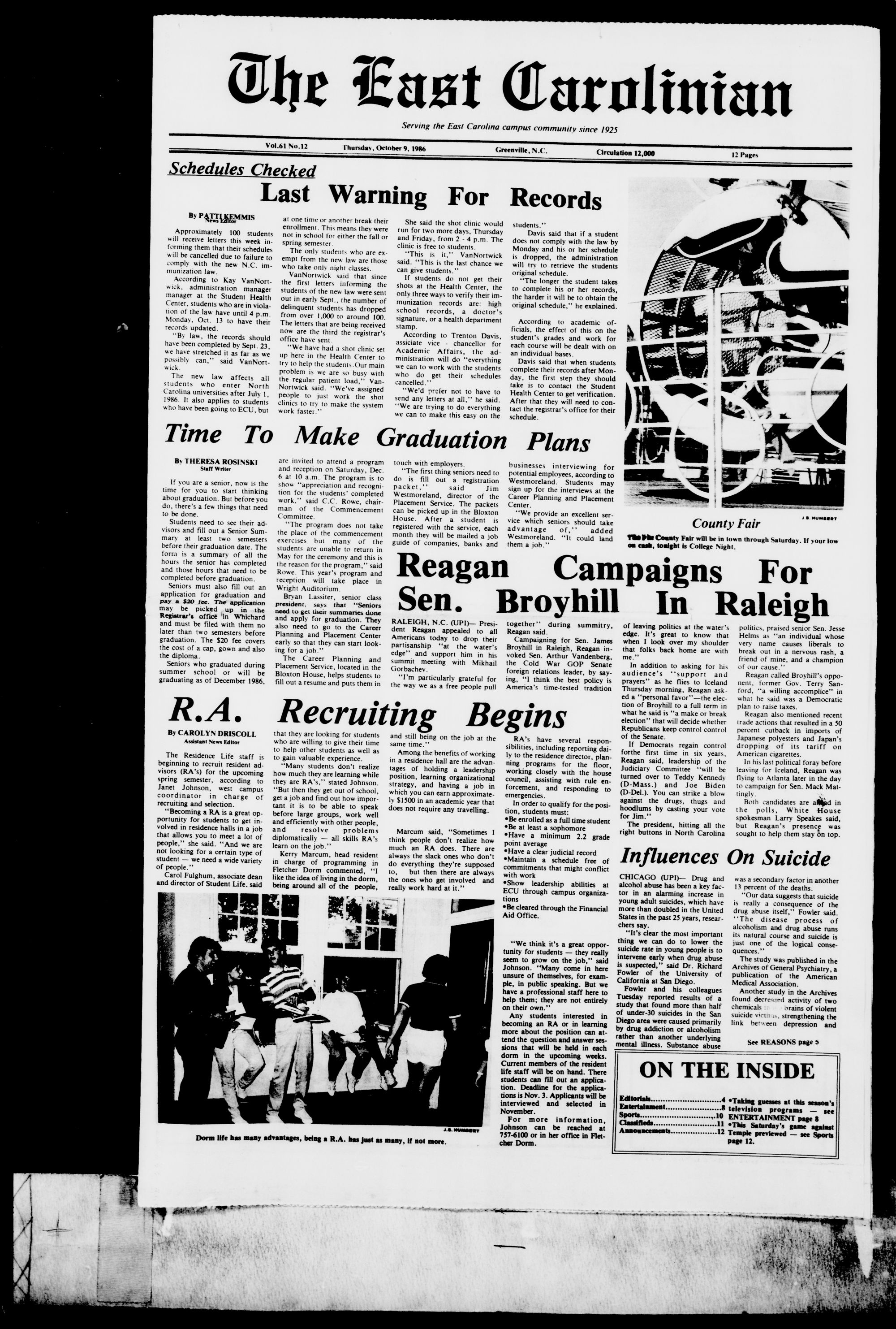 East Carolina's student-run campus newspaper was first published in 1923 as the East Carolina Teachers College News (1923-1925). It has been re-named as The Teco Echo (1925, 1926-1952), East Carolinian (1952-1969), Fountainhead (1969-1979), and The East Carolinian (1969, 1979-present). It includes local, state, national, and international stories with a focus on campus events.