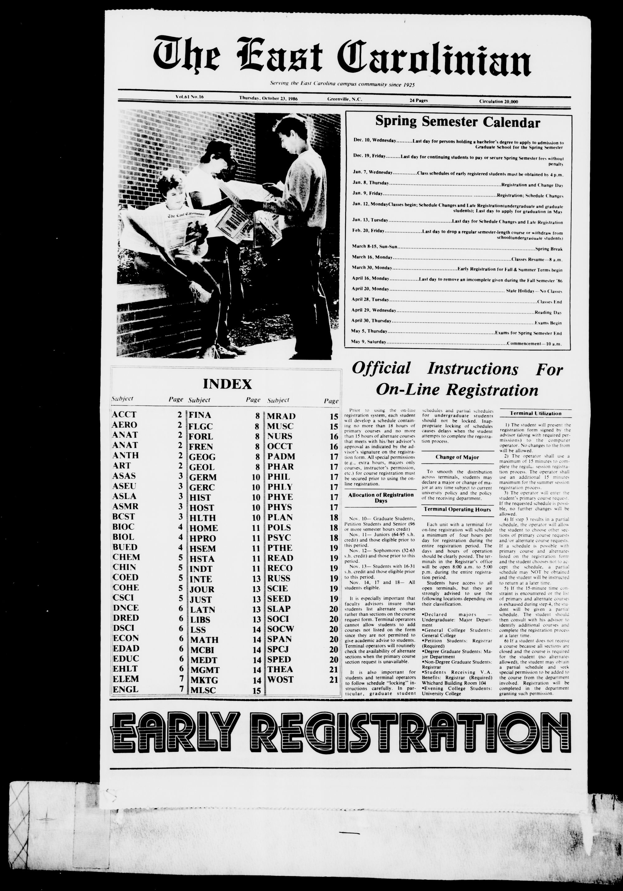 Jan. 7, WednesdayClass schedules of early registered students must be obtained by 4p.m.