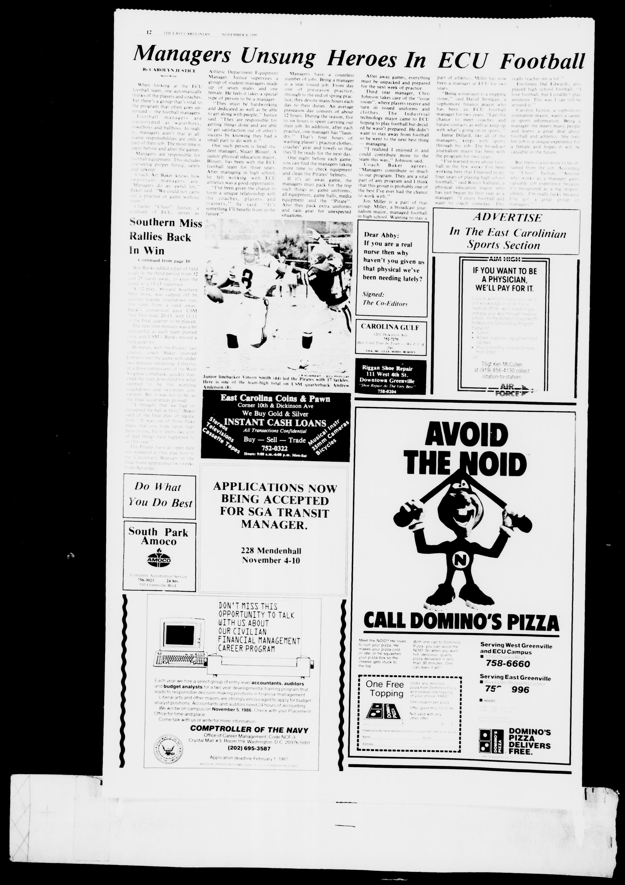 We will be on campus on November 5.1986. Check with your Placement