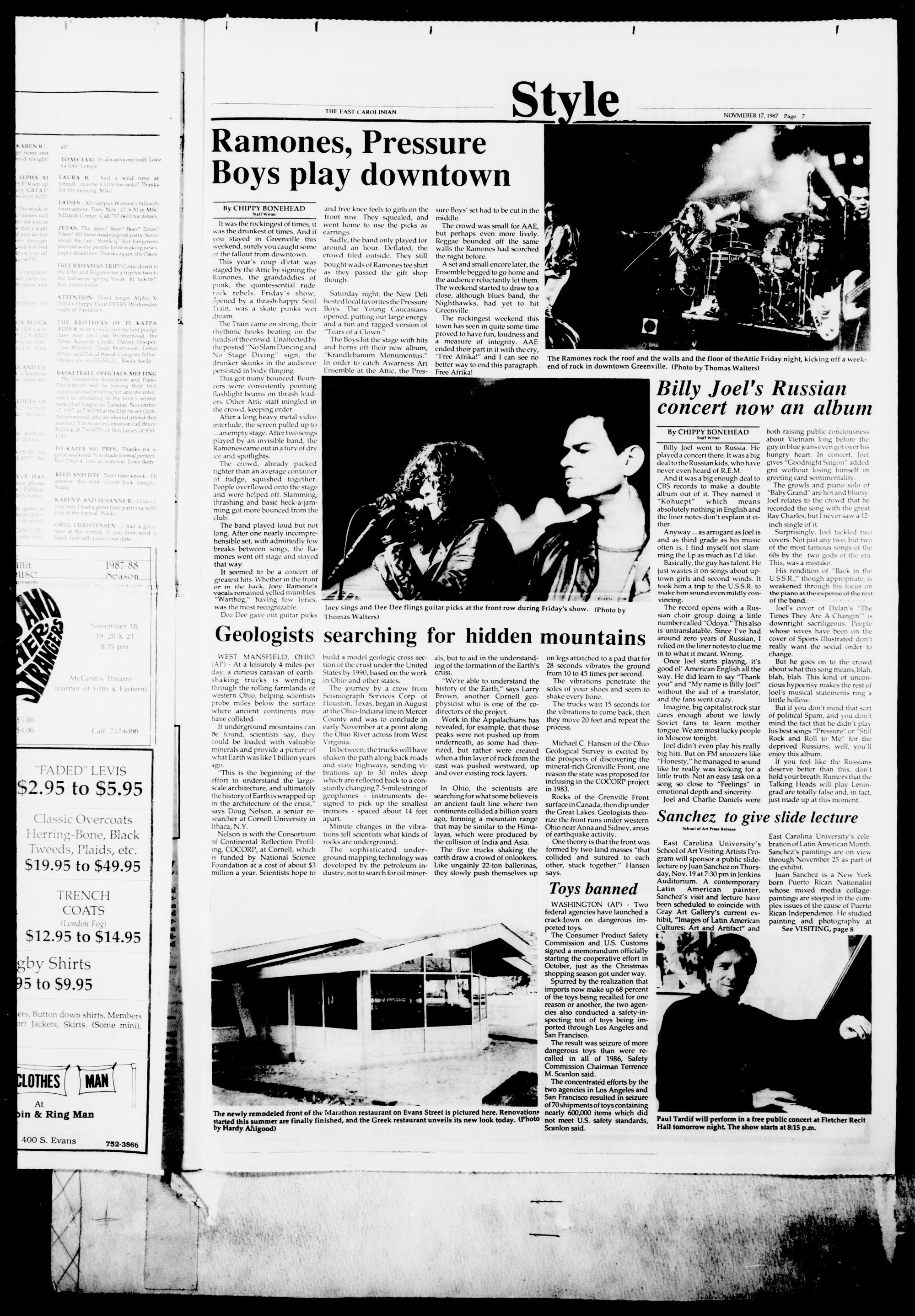 Nightlife in Greenville included The Ramones and