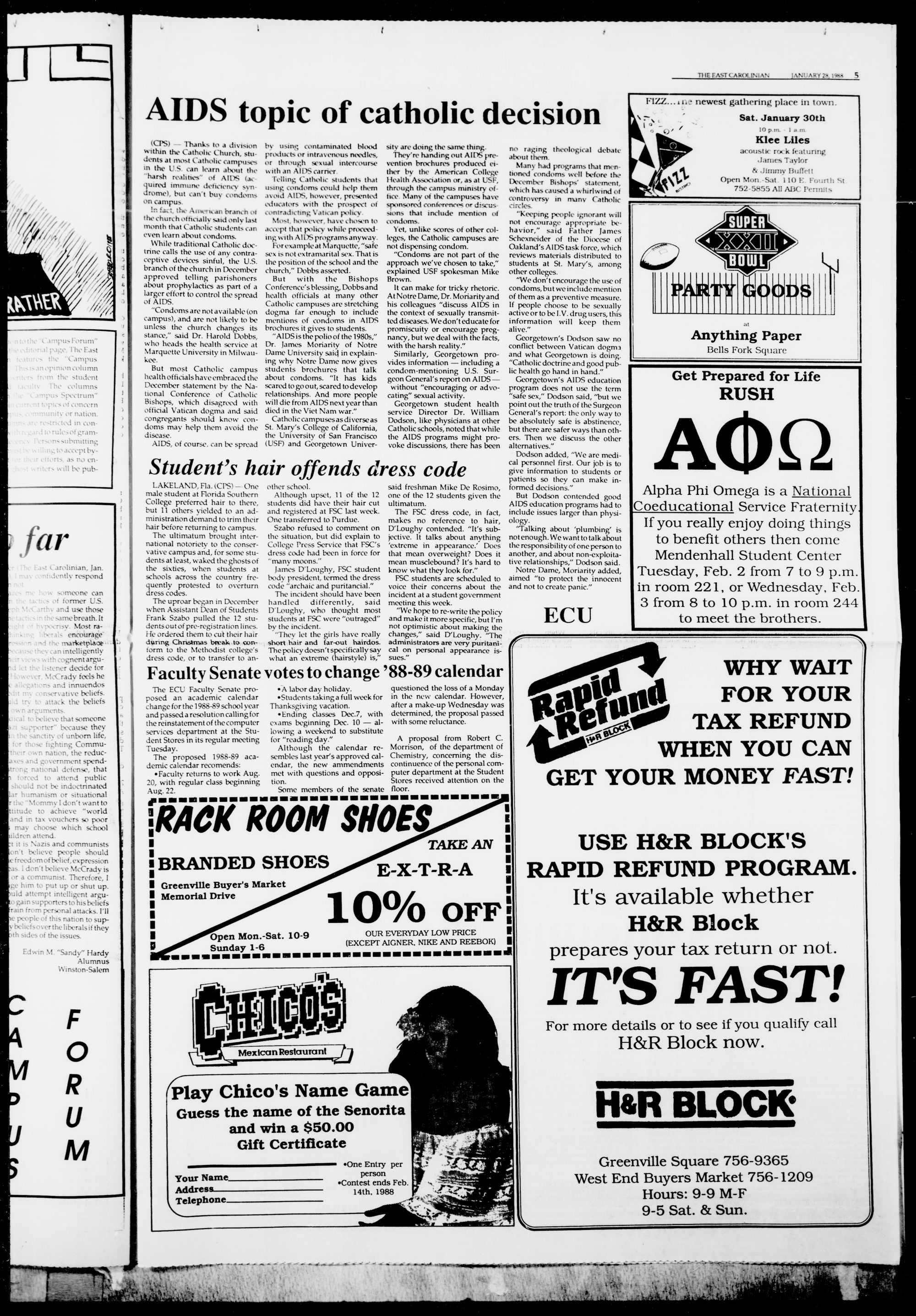 East Carolina's student-run campus newspaper was first published in 1923 as the East Carolina Teachers College News (1923-1925). It has been re-named as The Teco Echo (1925, 1926-1952), East Carolinian (1952-1969), Fountainhead (1969-1979), and The East Carolinian (1969, 1979-present). It includes local, state, national, and international stories with a focus on campus events.