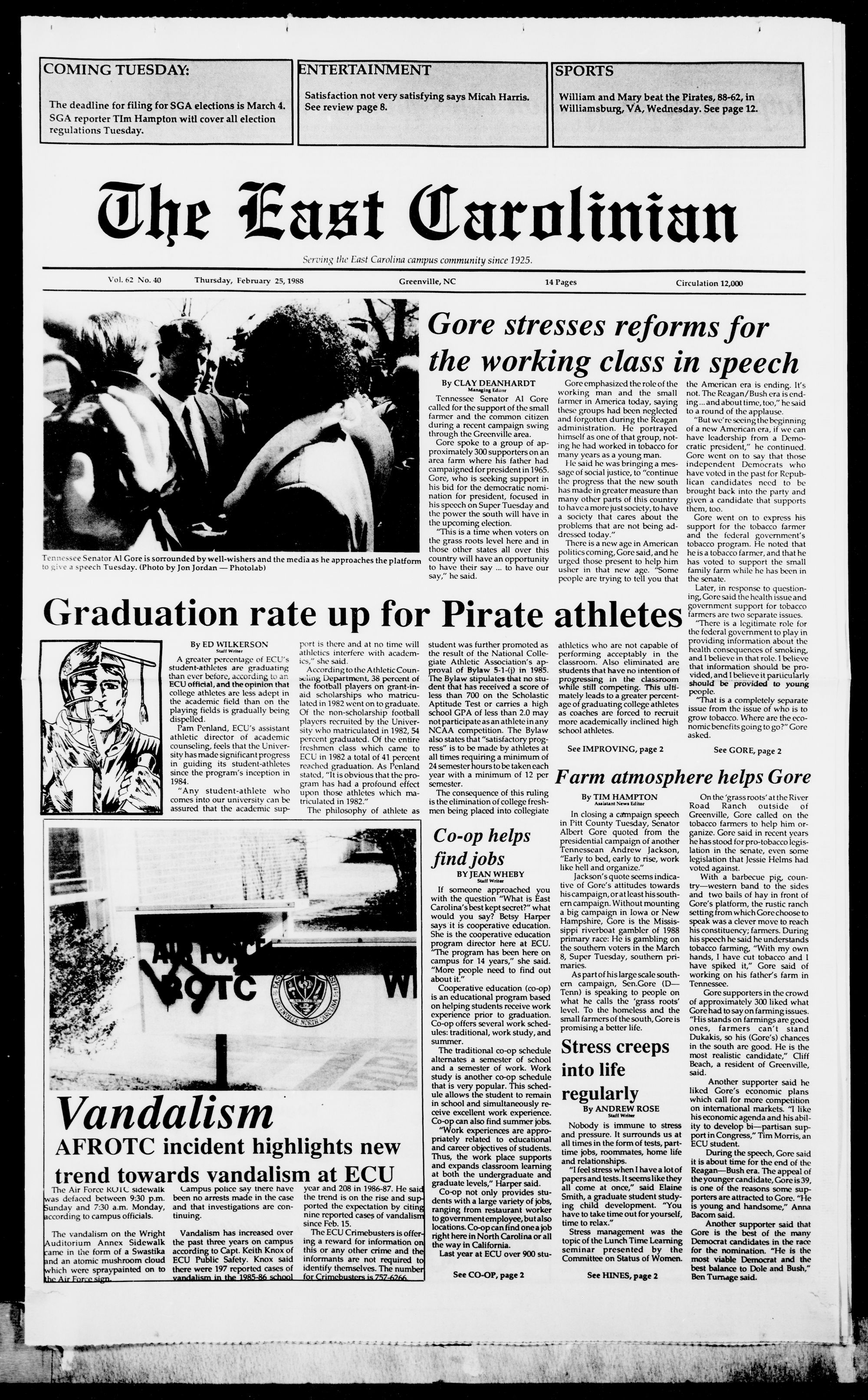 Gore spoke to a group of ap- ing hc had workcd in tobacco for cratic prcsidcnt hc continuod.