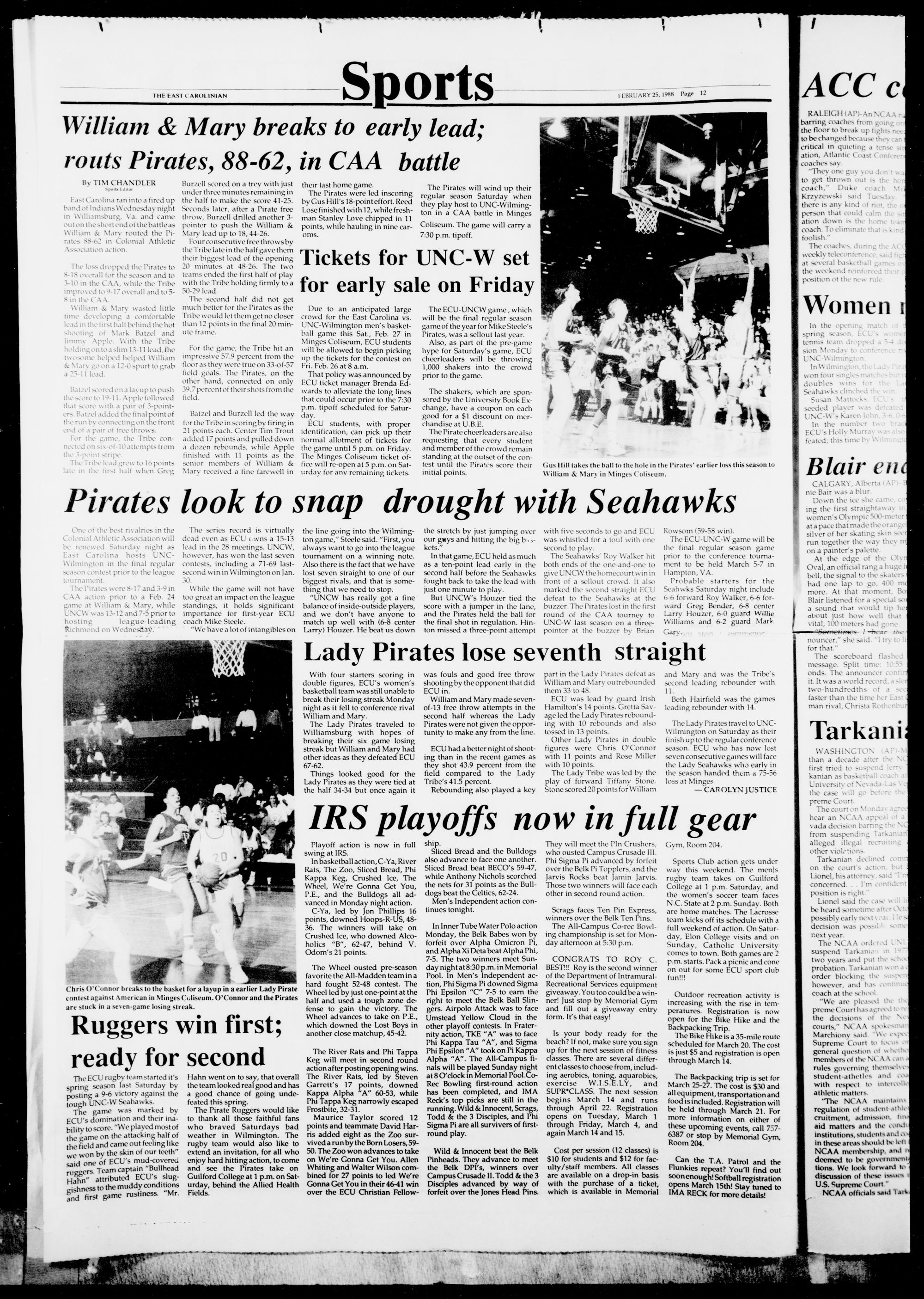 William and M&jy beat the JUrateS 88-62, in