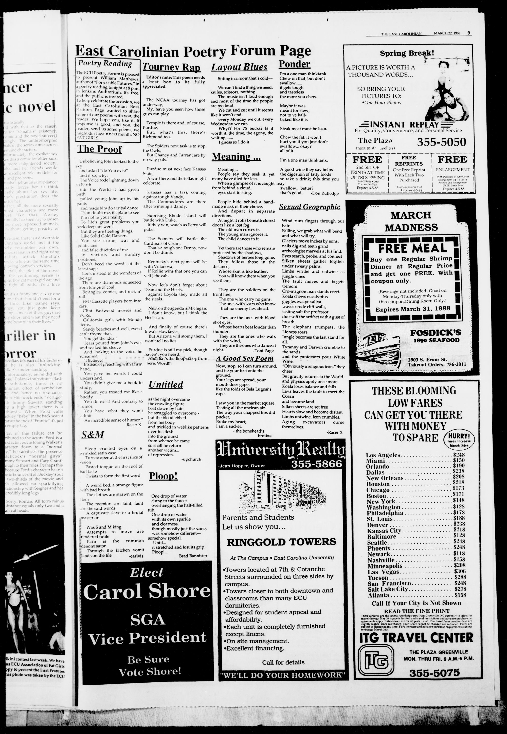 Thursday. March 24th. at the Student Supply Store, ECU CAMPUS.
