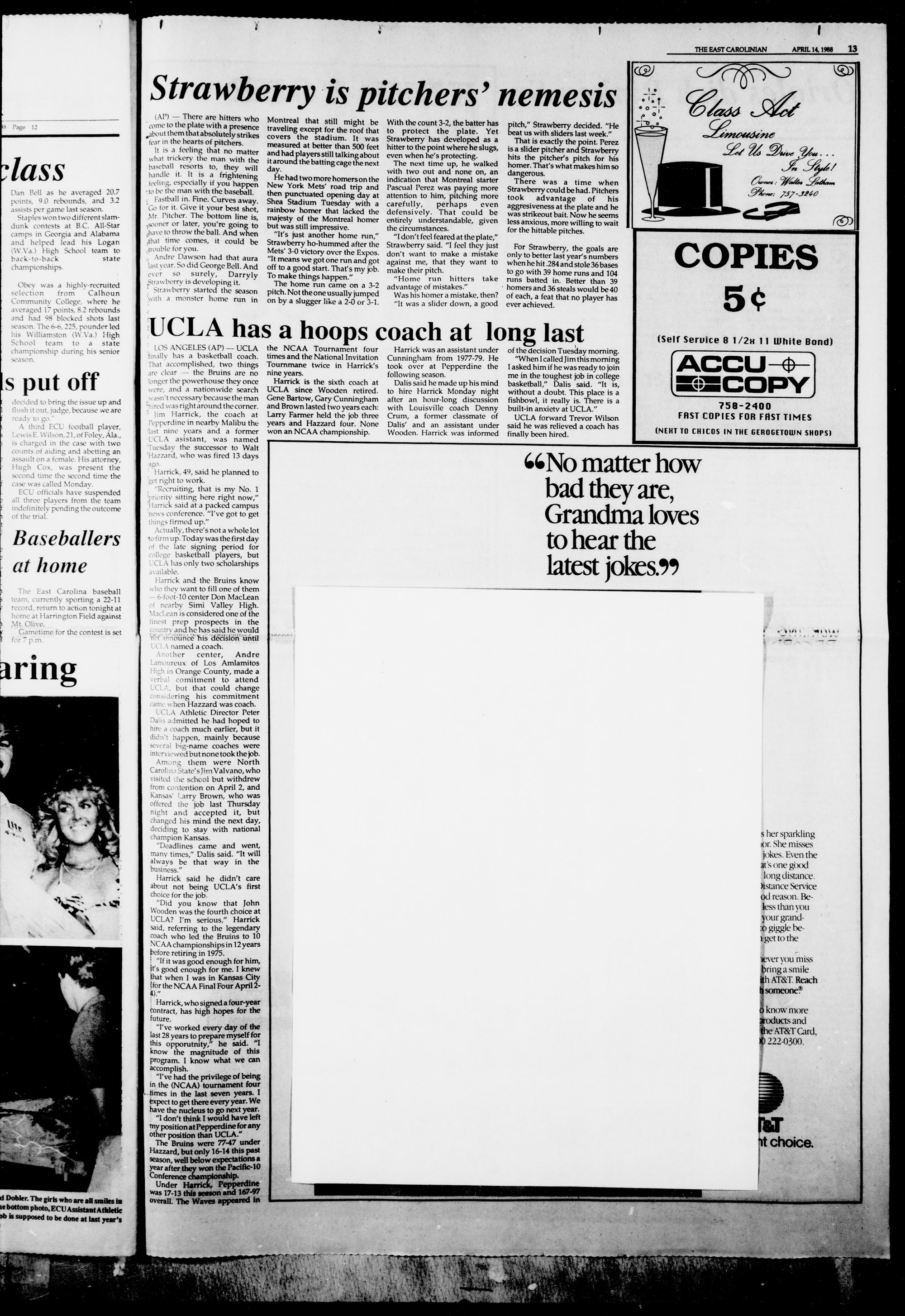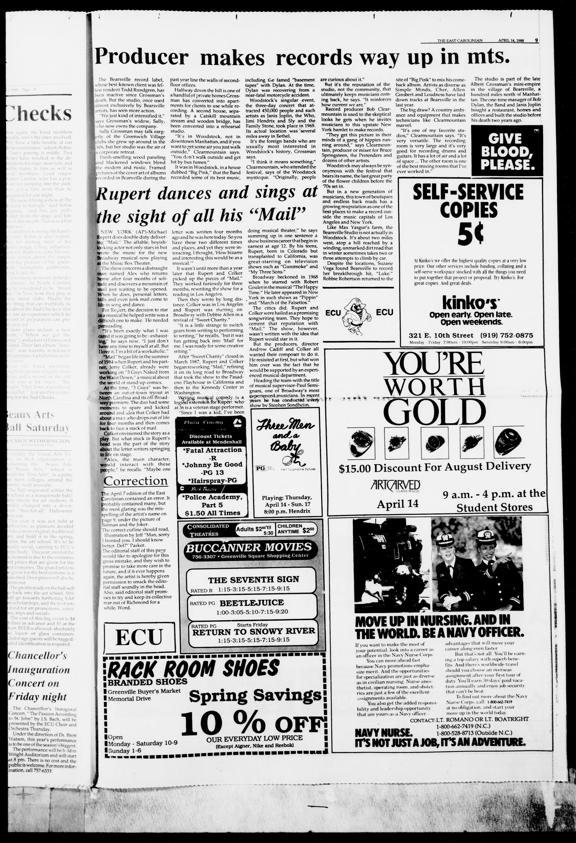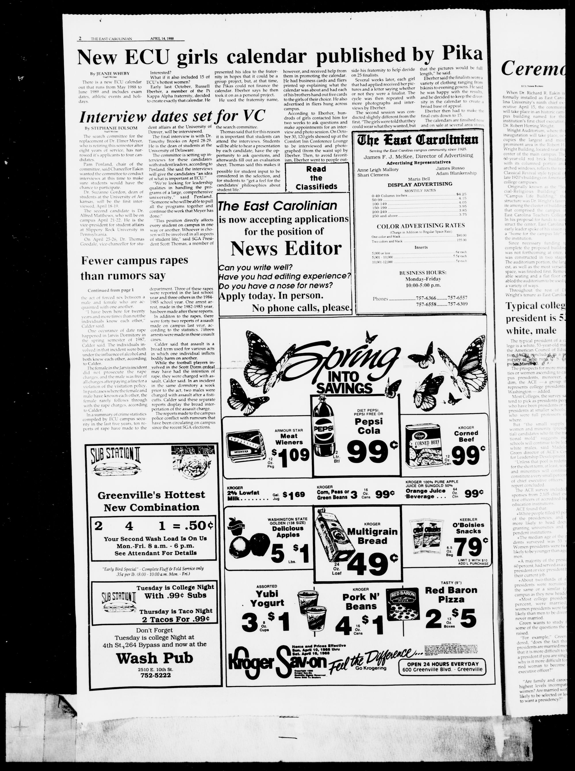 COMING TUESDAY: Reports on the Chancellor Richard Eakin's inauguration.ENTERTAINMENT An Evening with the Bad Checks, see page 8.SPORTS ECU Cagers recruit class prospects, see page 12. t