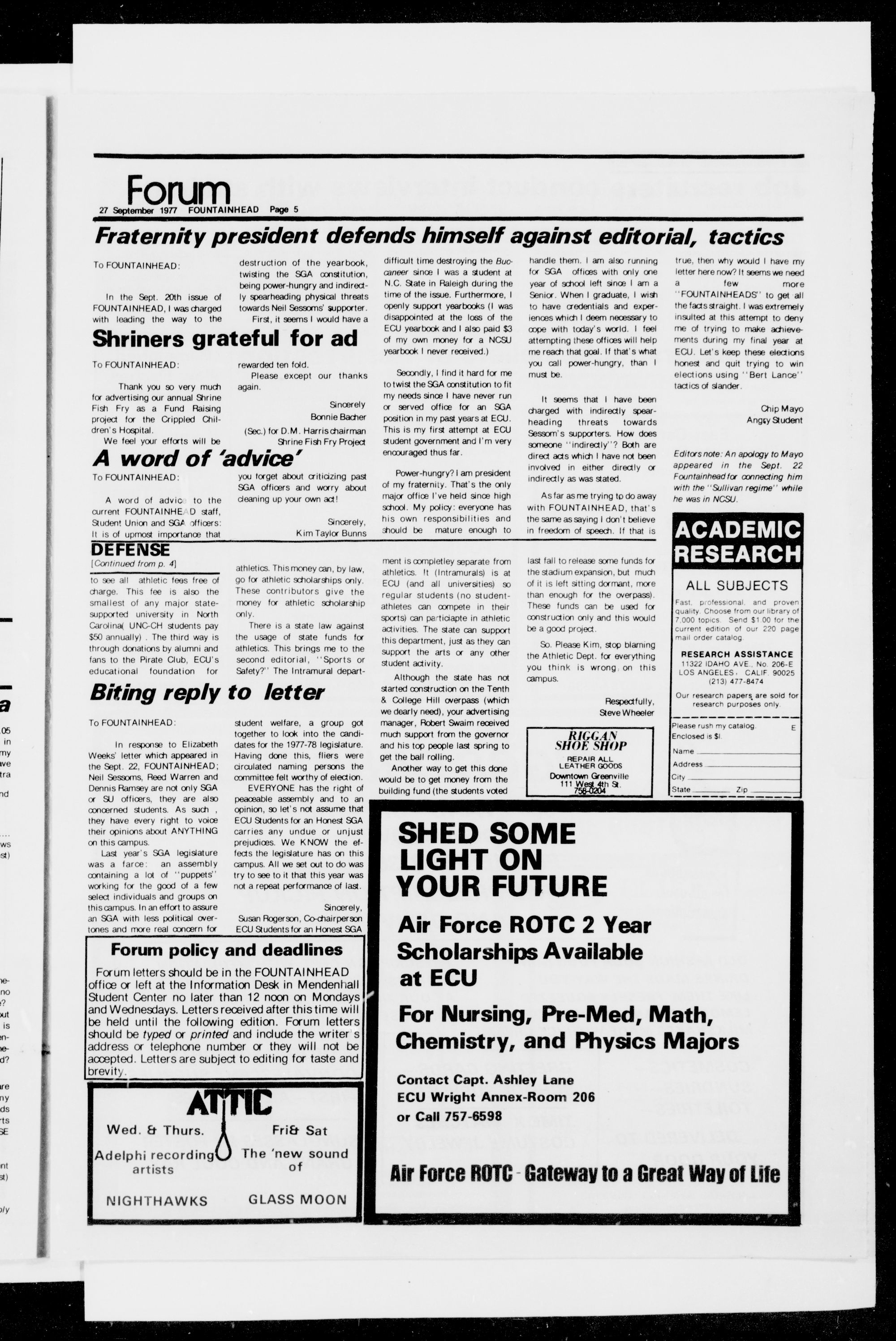 iu m wr, ft pa?? r-arriina Universitv Greenville. North Carolina 27 September 1077