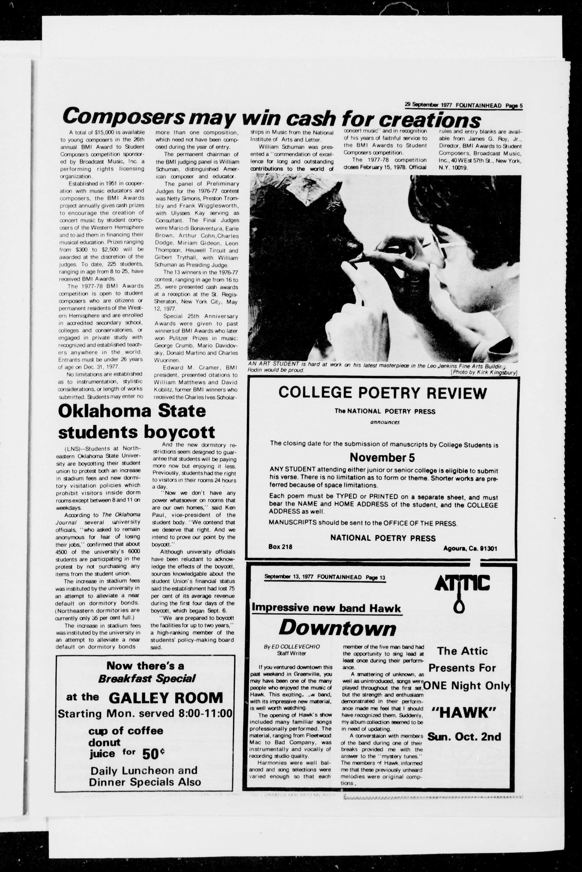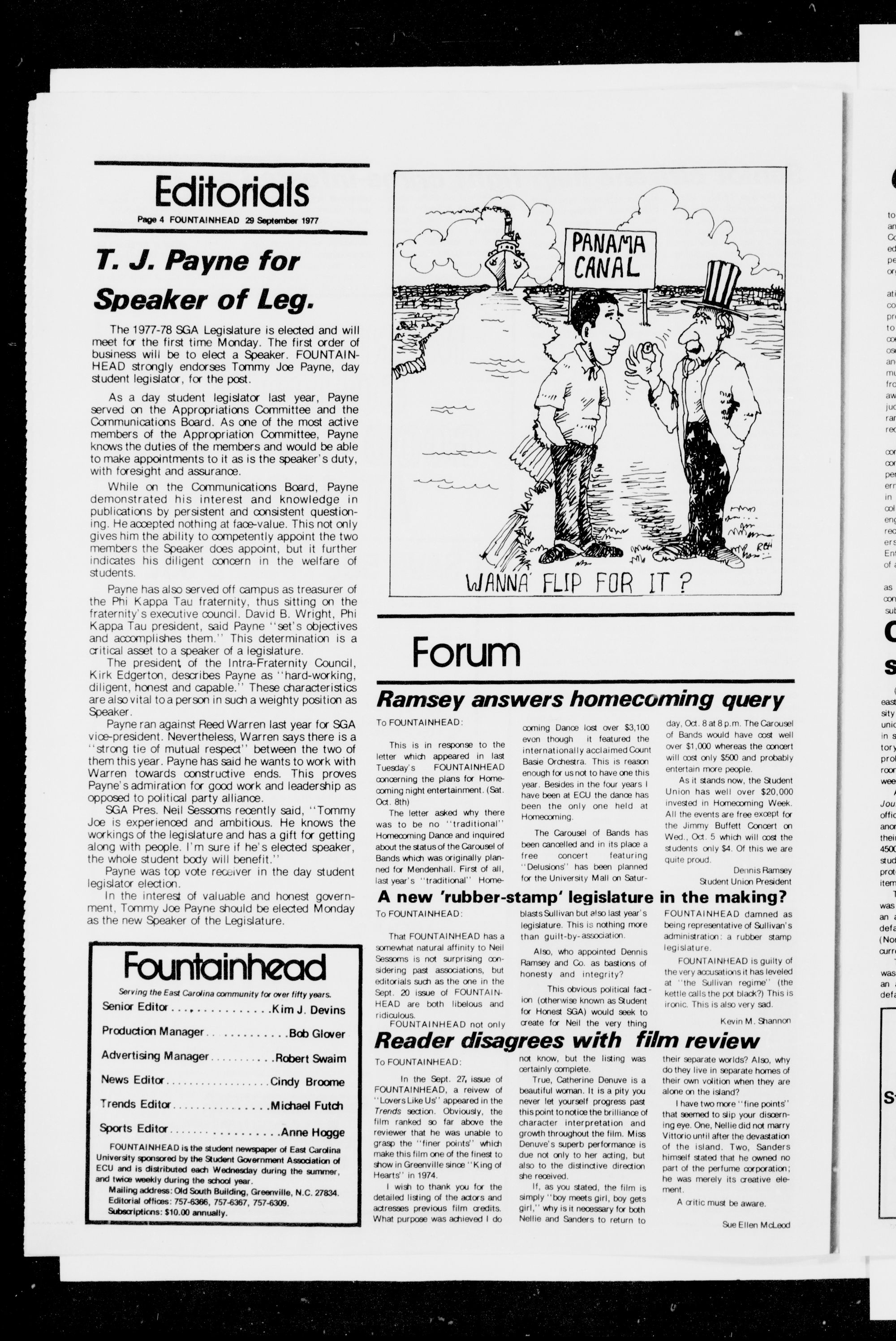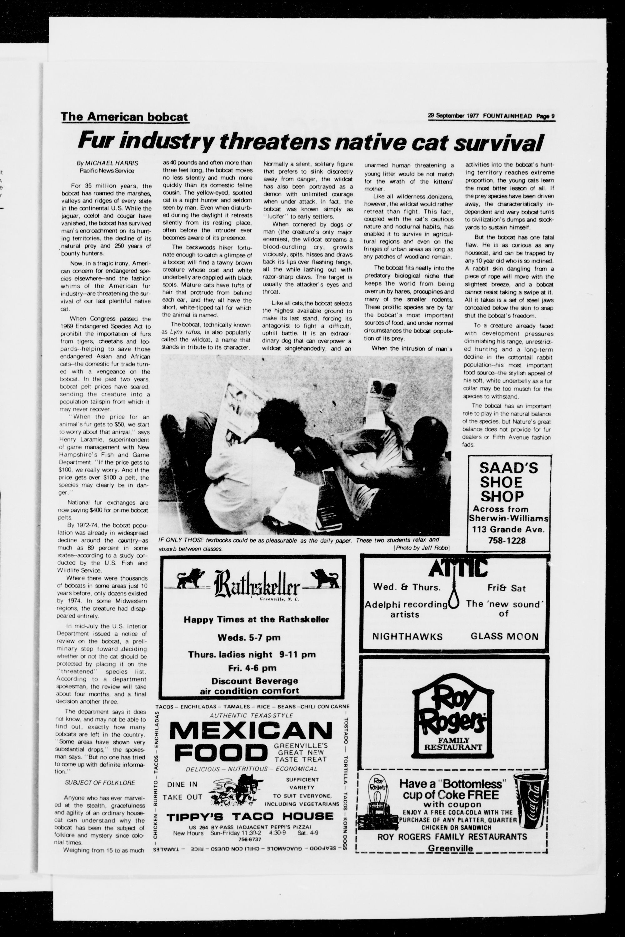 East Carolina's student-run campus newspaper was first published in 1923 as the East Carolina Teachers College News (1923-1925). It has been re-named as The Teco Echo (1925, 1926-1952), East Carolinian (1952-1969), Fountainhead (1969-1979), and The East Carolinian (1969, 1979-present). It includes local, state, national, and international stories with a focus on campus events.