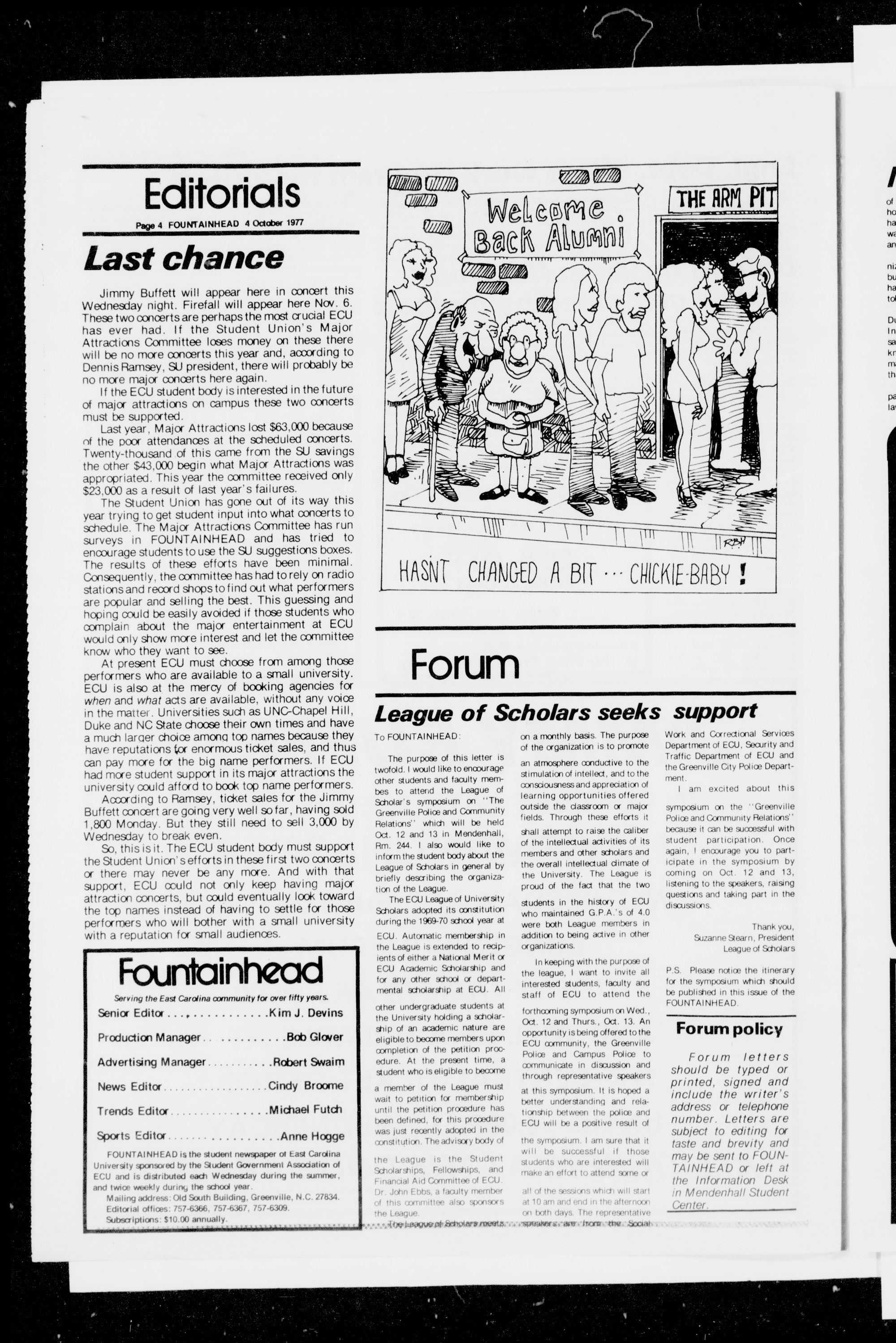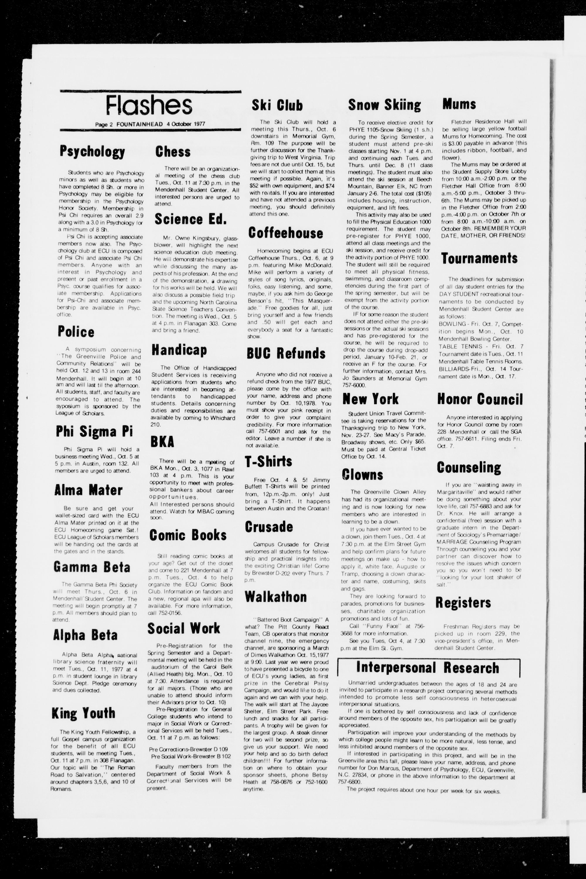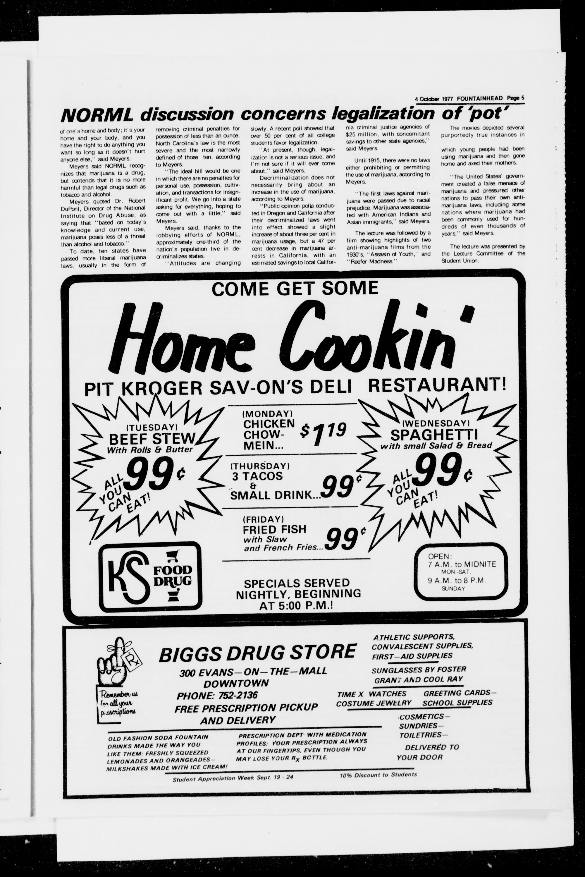 across from campus. Call 752-