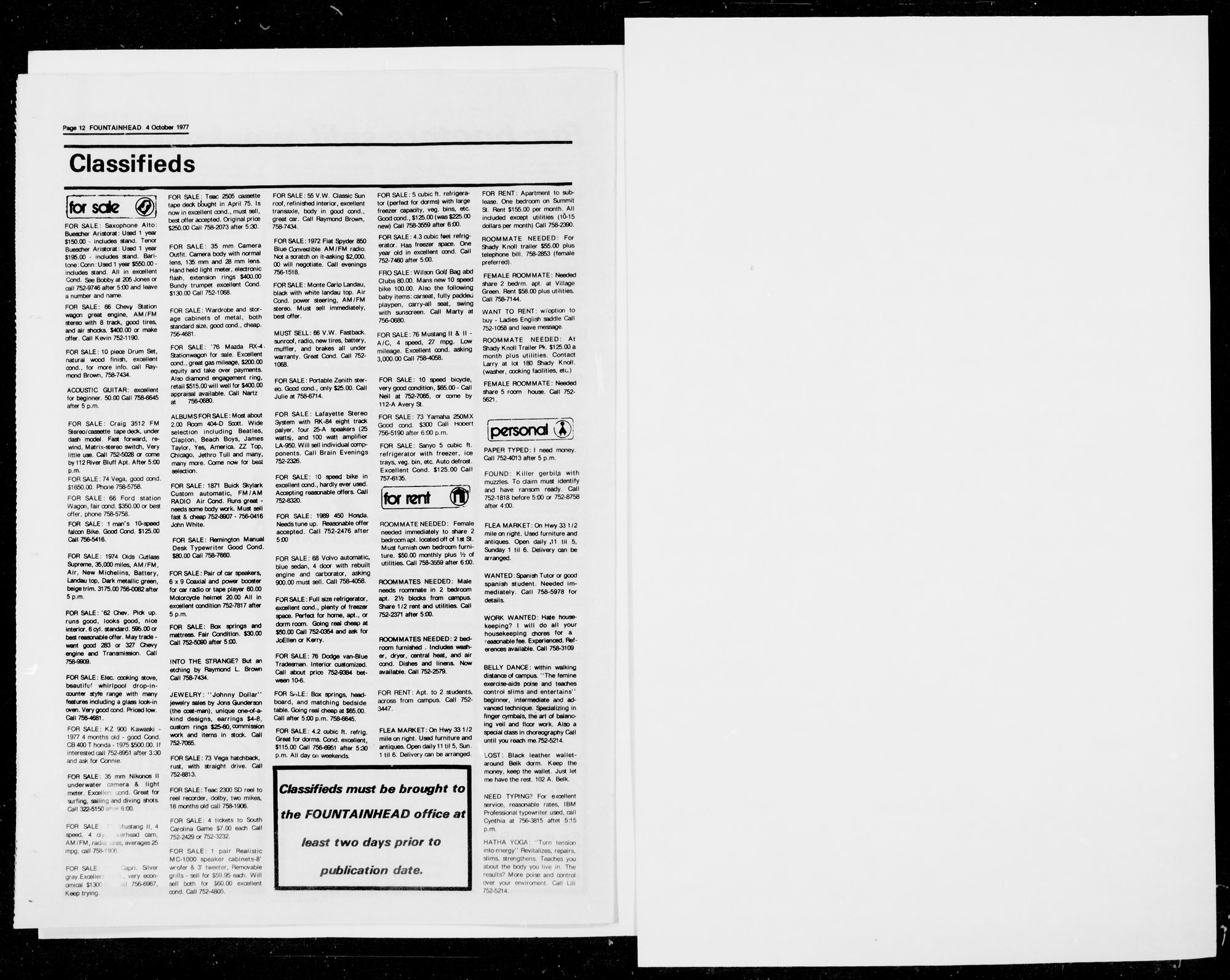 Classifieds must be brought to