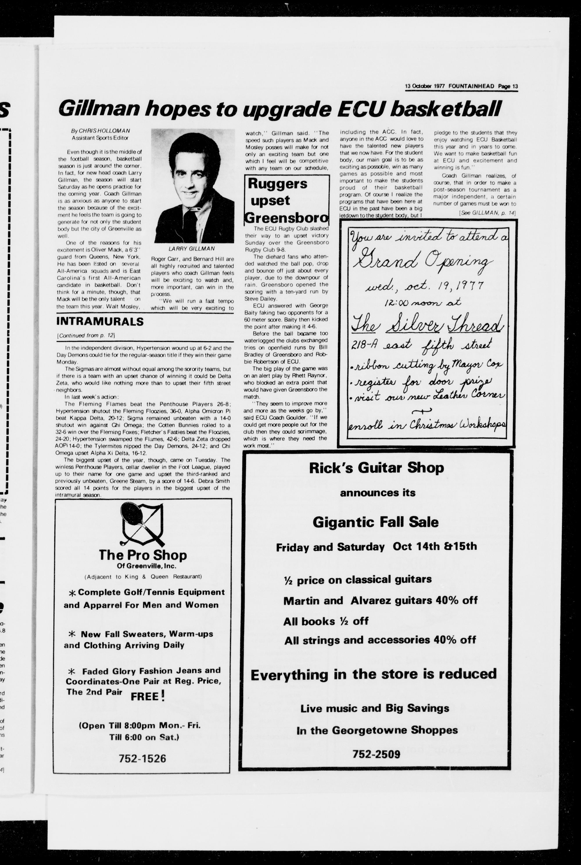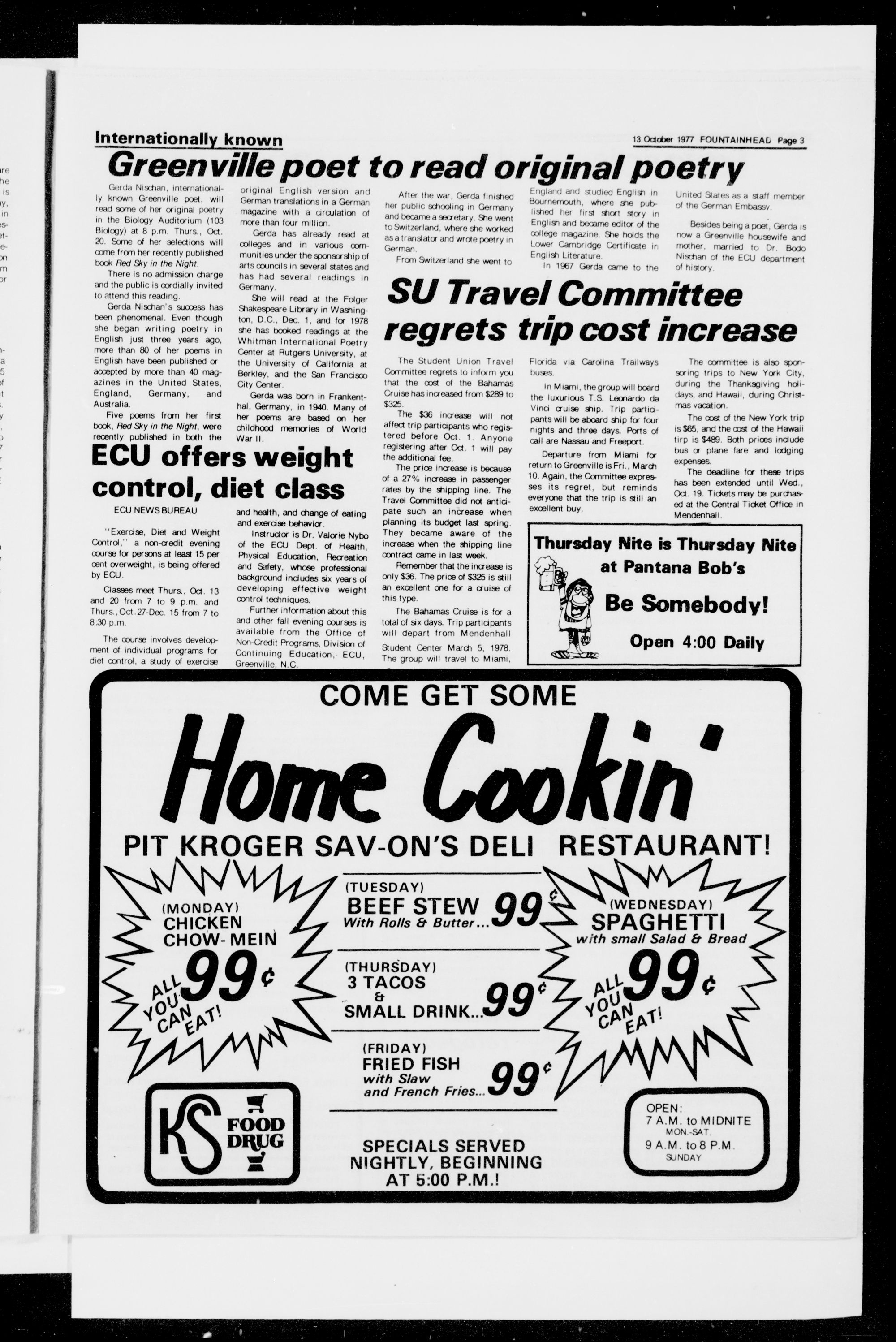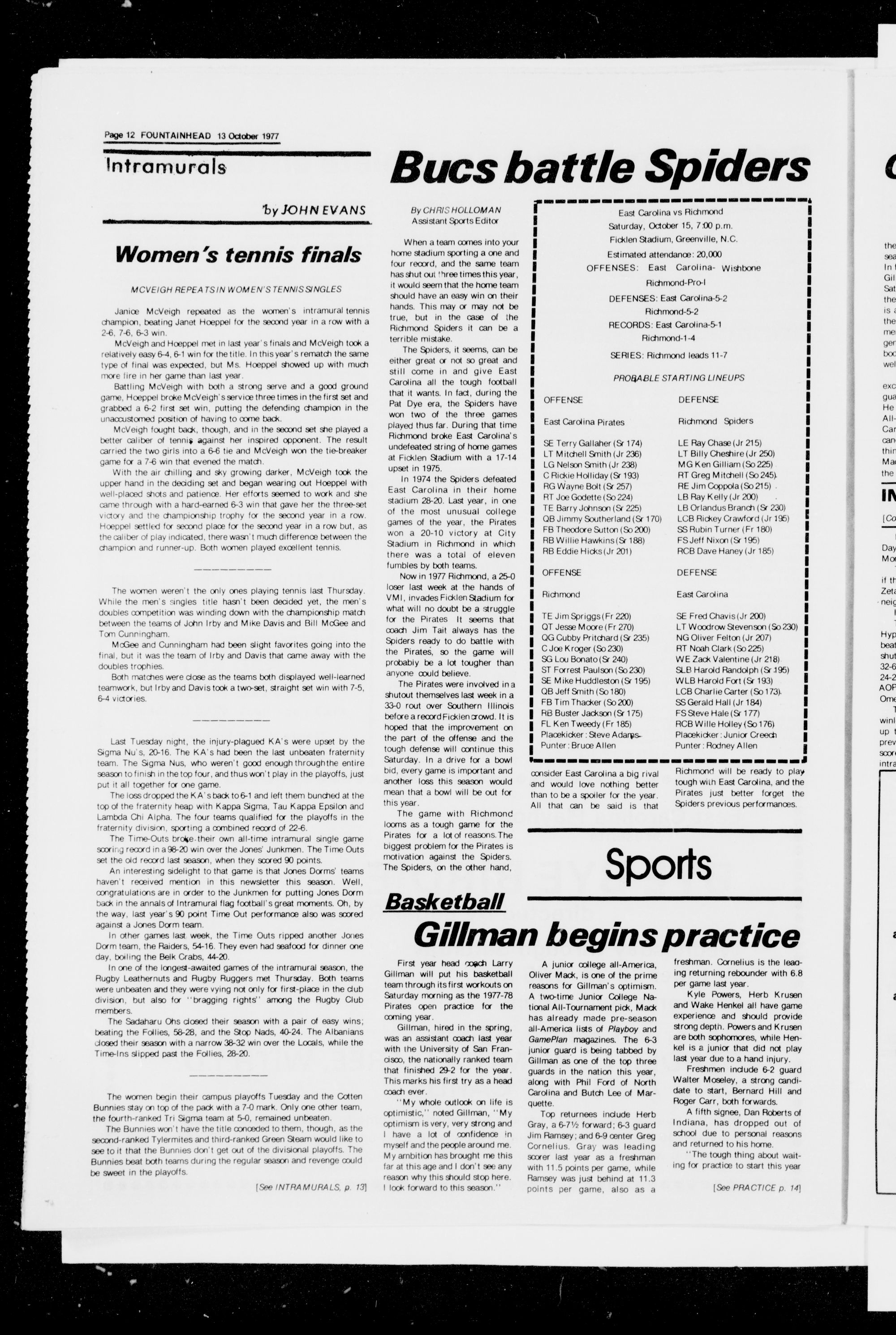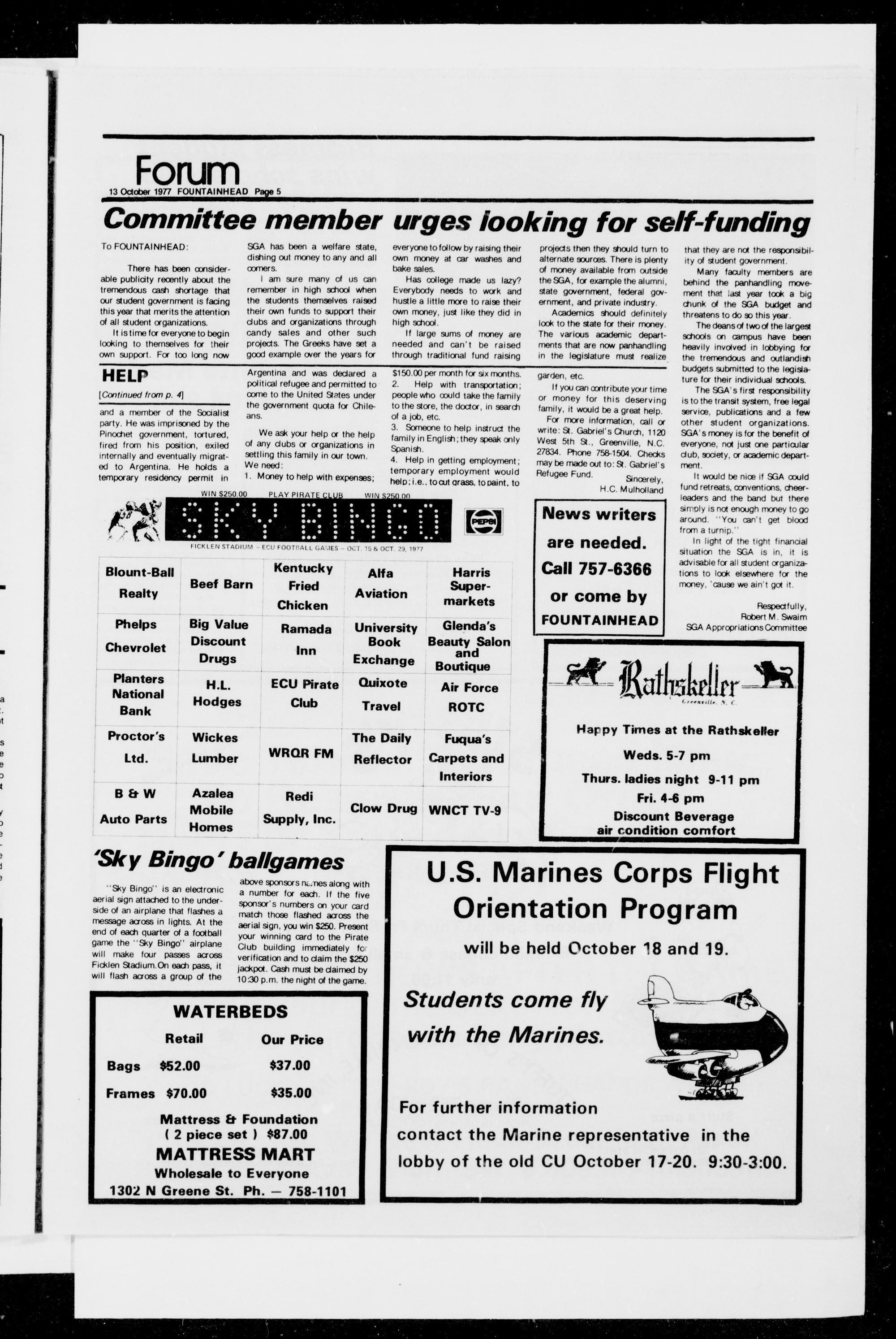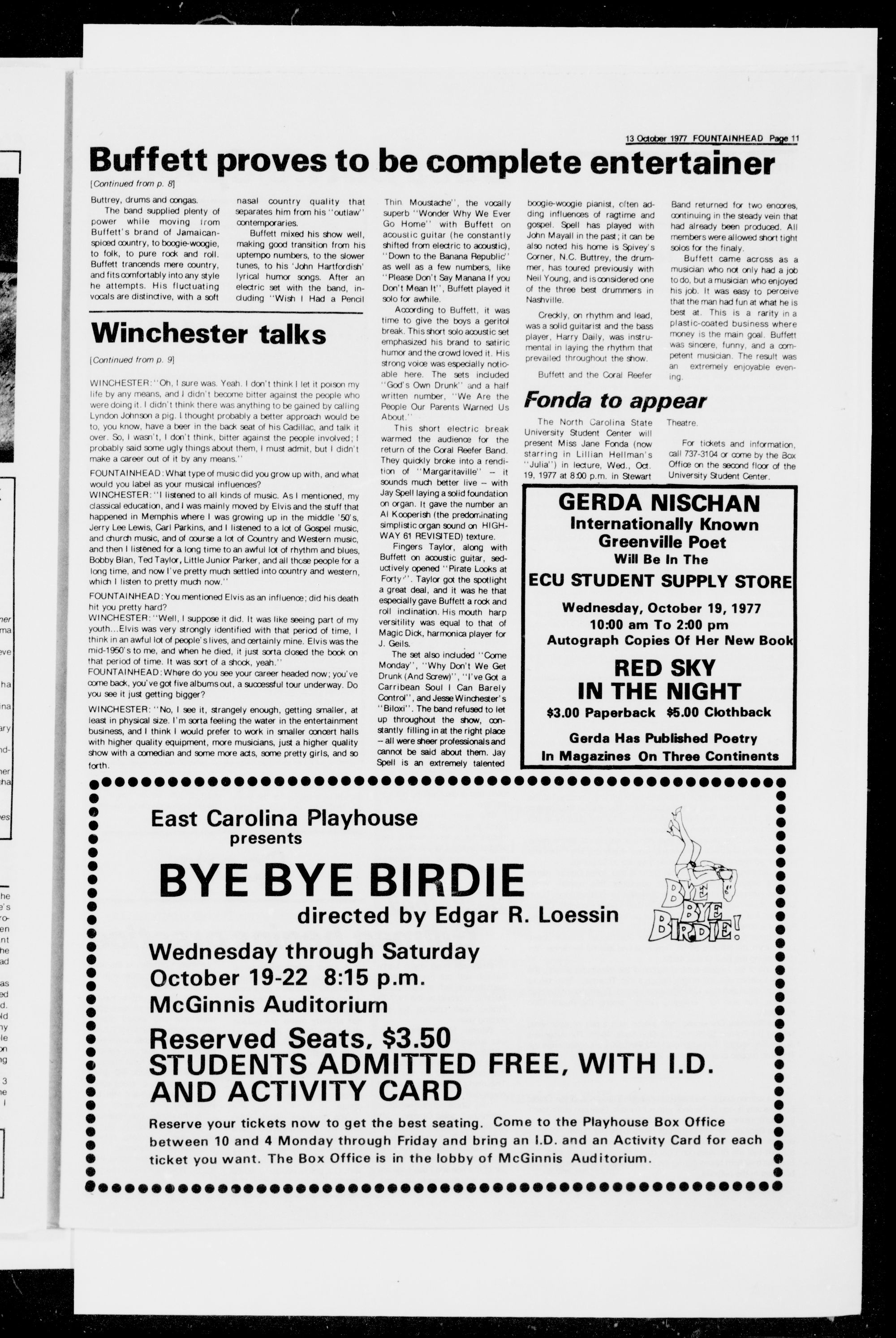 East Carolina's student-run campus newspaper was first published in 1923 as the East Carolina Teachers College News (1923-1925). It has been re-named as The Teco Echo (1925, 1926-1952), East Carolinian (1952-1969), Fountainhead (1969-1979), and The East Carolinian (1969, 1979-present). It includes local, state, national, and international stories with a focus on campus events.