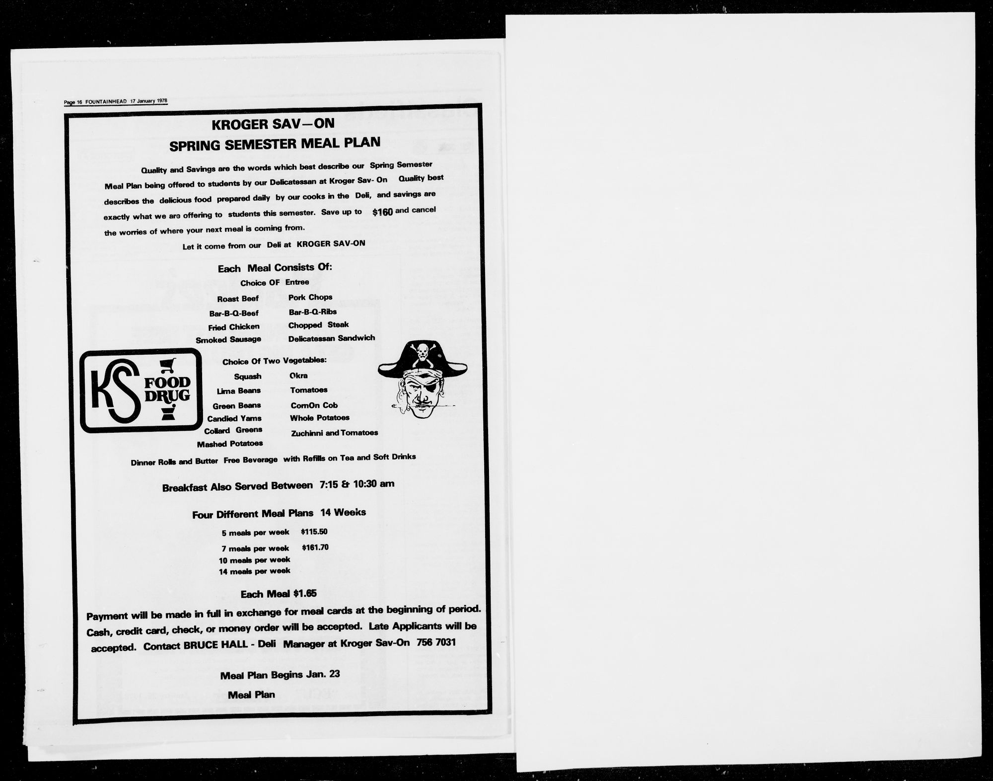accepted. Contact BRUCE HALL - Deli Manager at Kroger Sav-On 756 7031