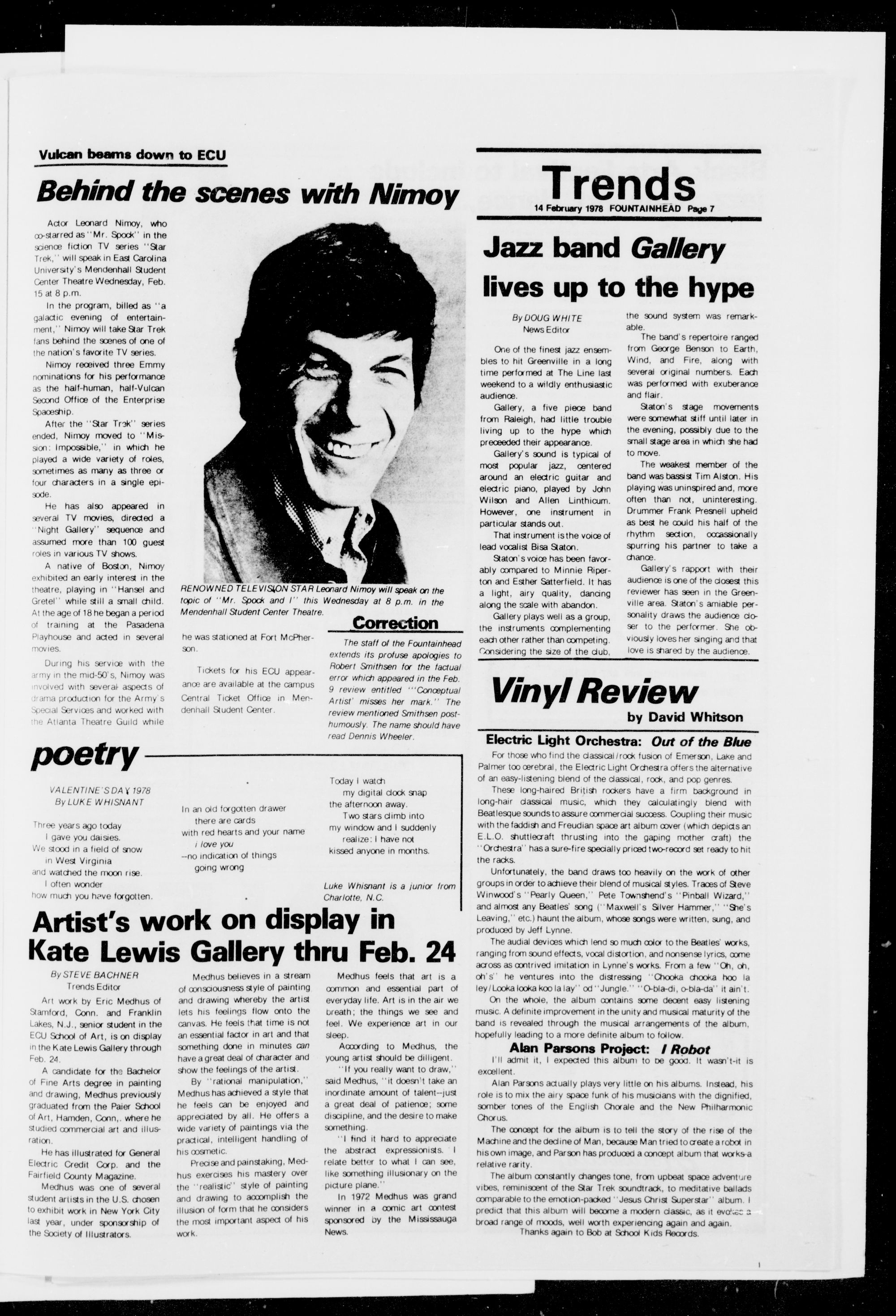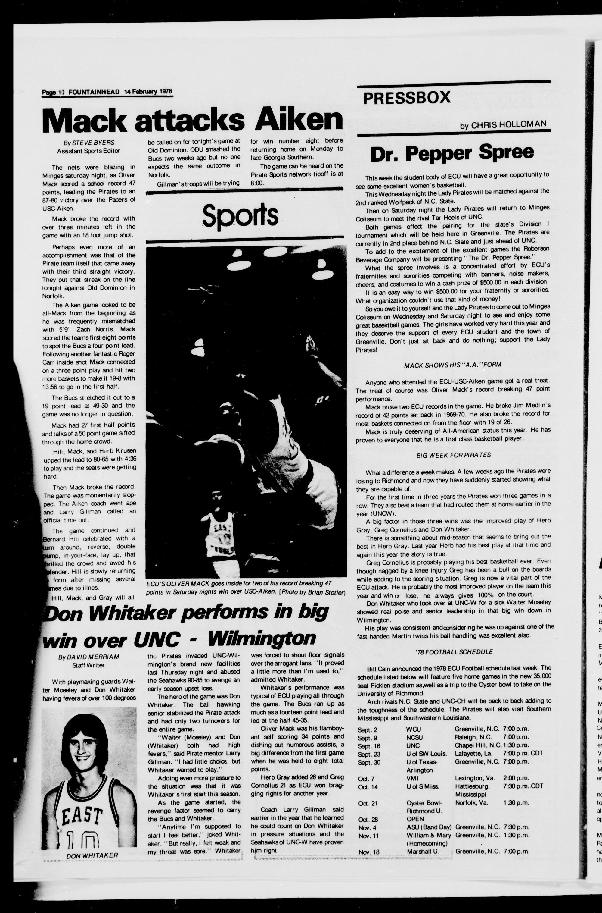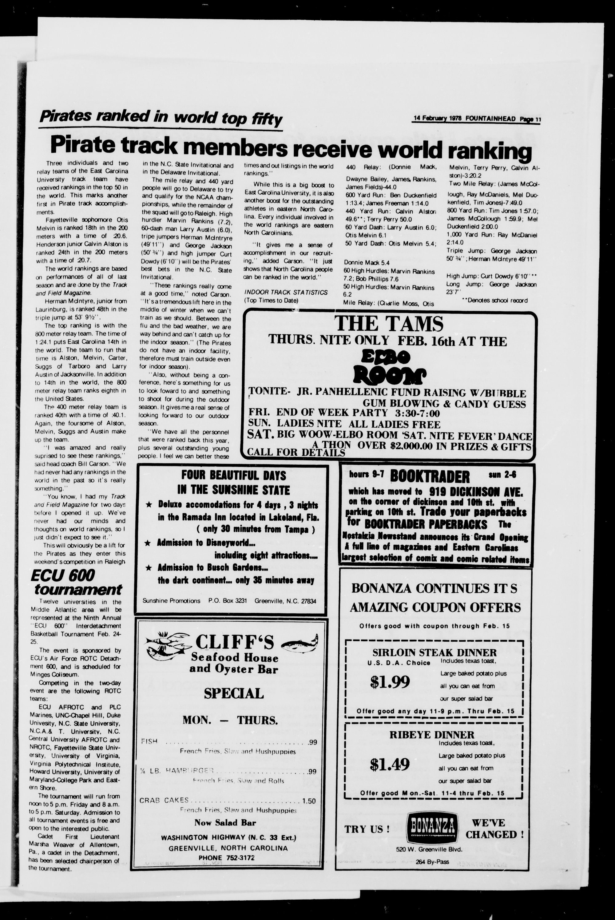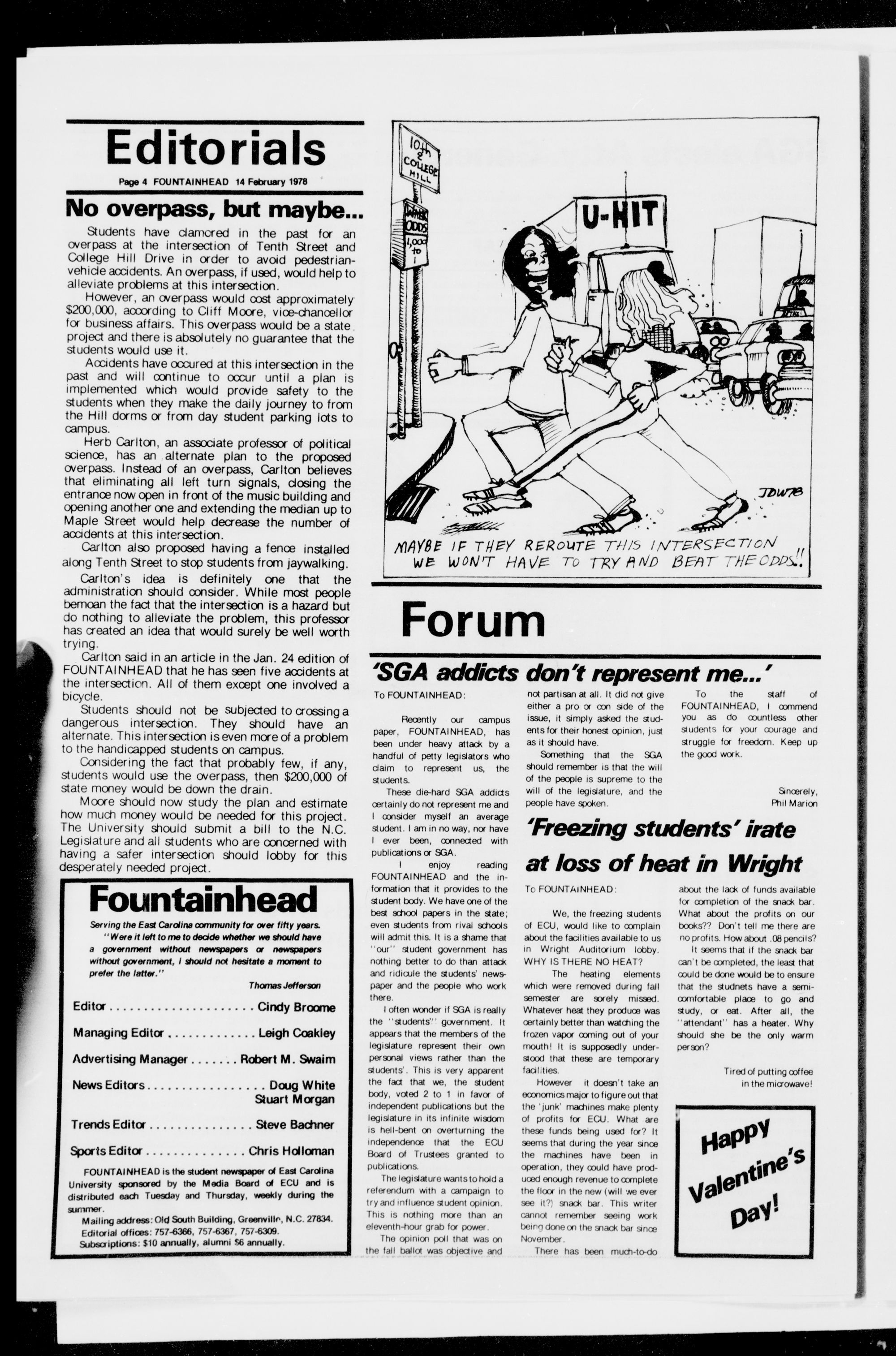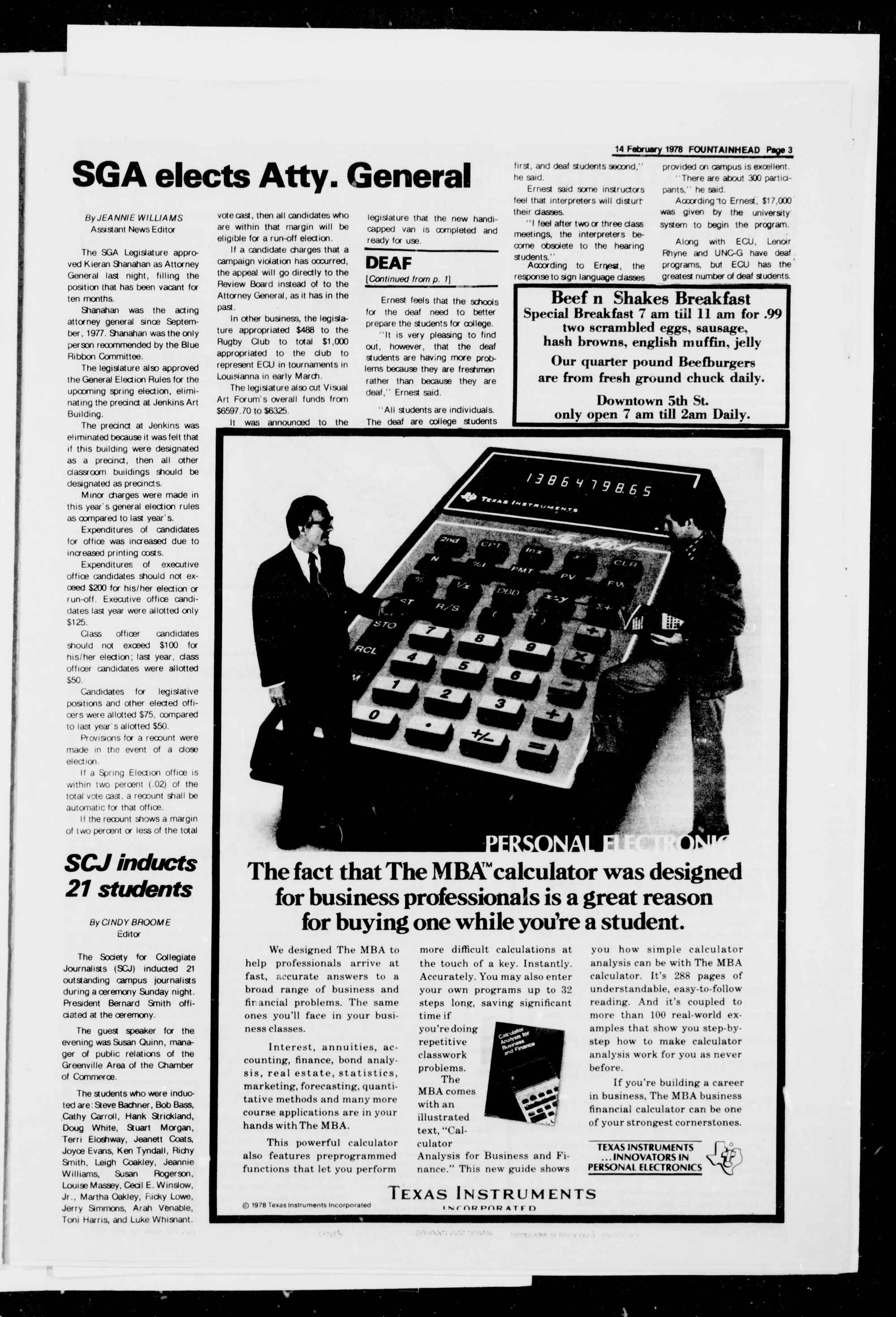 East Carolina's student-run campus newspaper was first published in 1923 as the East Carolina Teachers College News (1923-1925). It has been re-named as The Teco Echo (1925, 1926-1952), East Carolinian (1952-1969), Fountainhead (1969-1979), and The East Carolinian (1969, 1979-present). It includes local, state, national, and international stories with a focus on campus events.