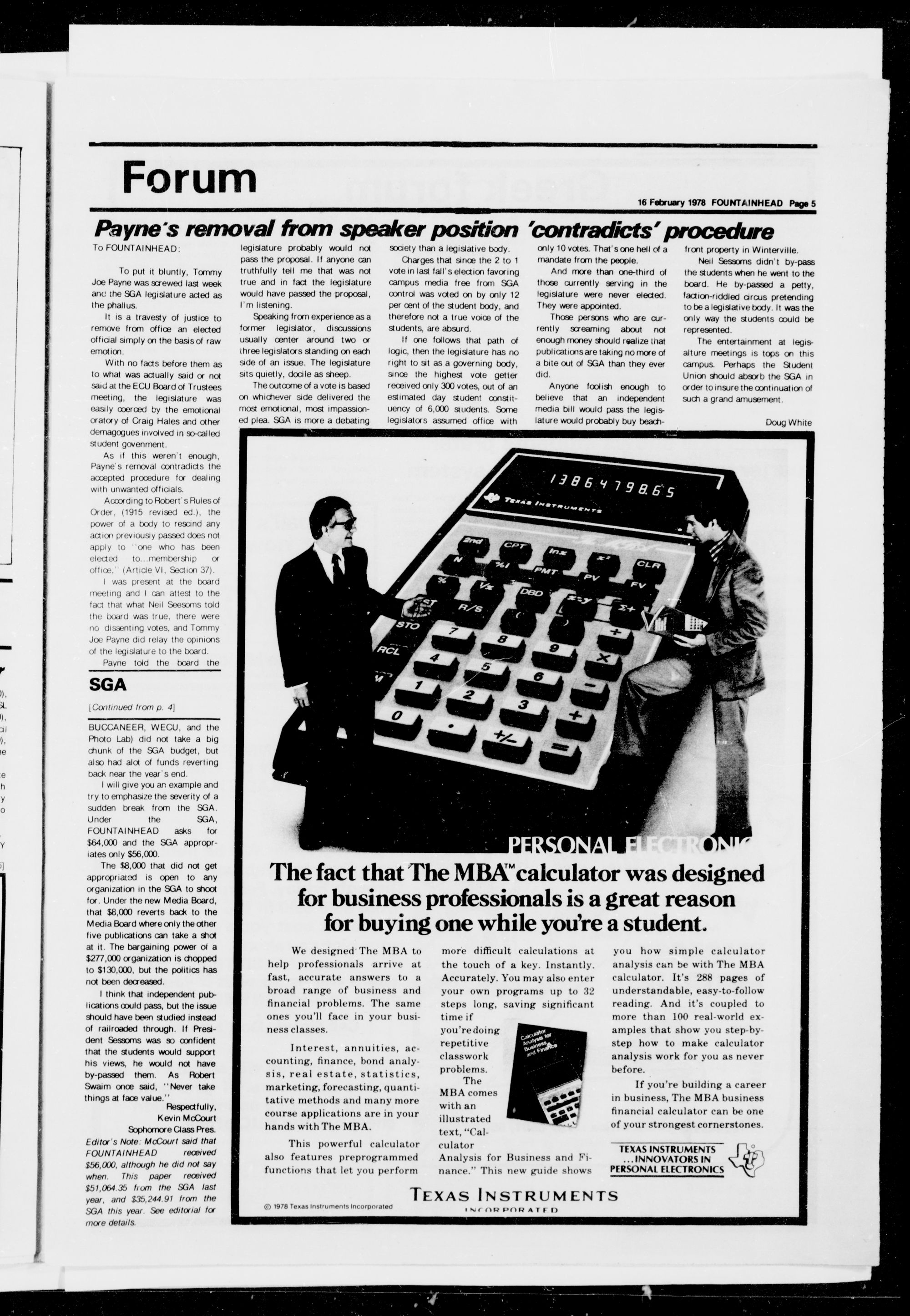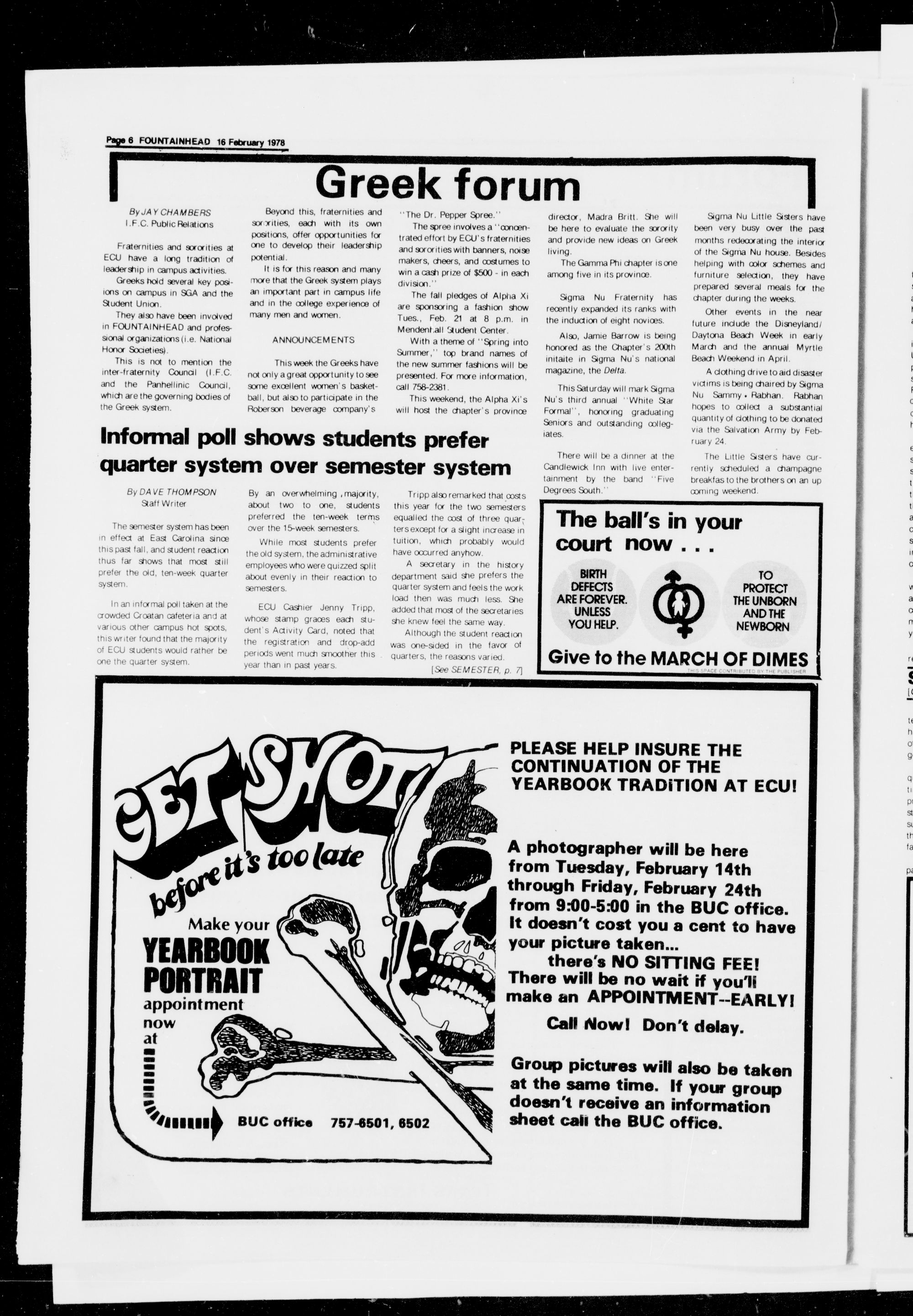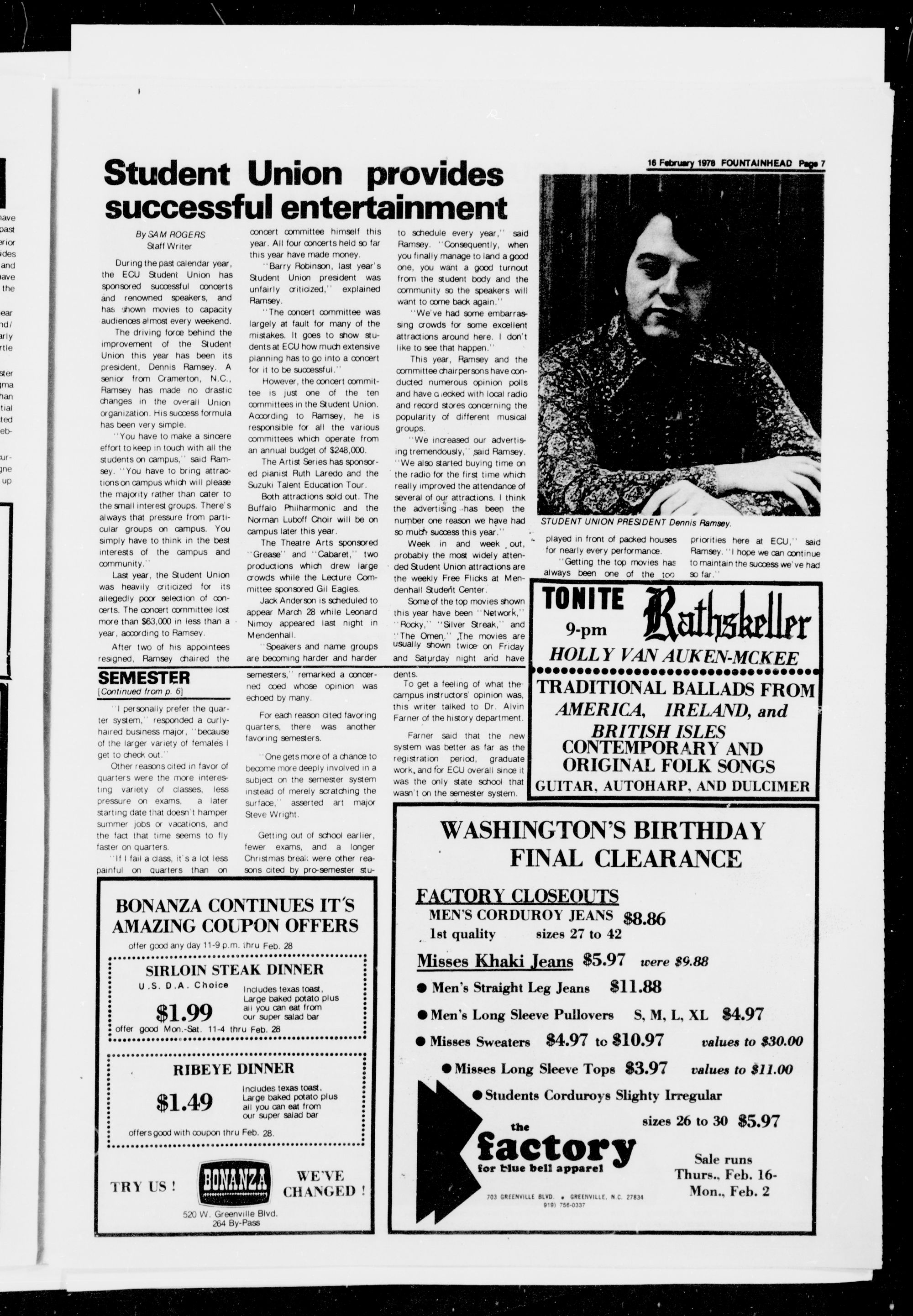 Vol. No. 53, No. East Carolina University Greenville, North Carolina 16 February 1978