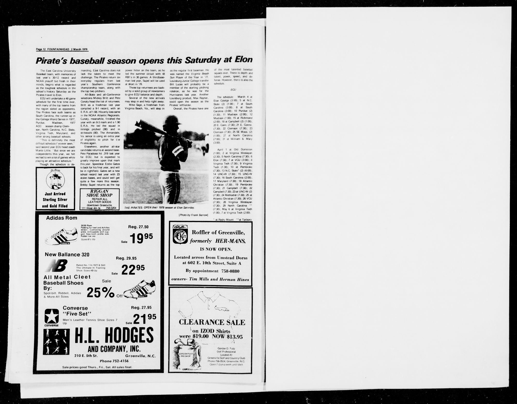 THE PIRA TES OPEN their 1978 season at Elon Saturday.