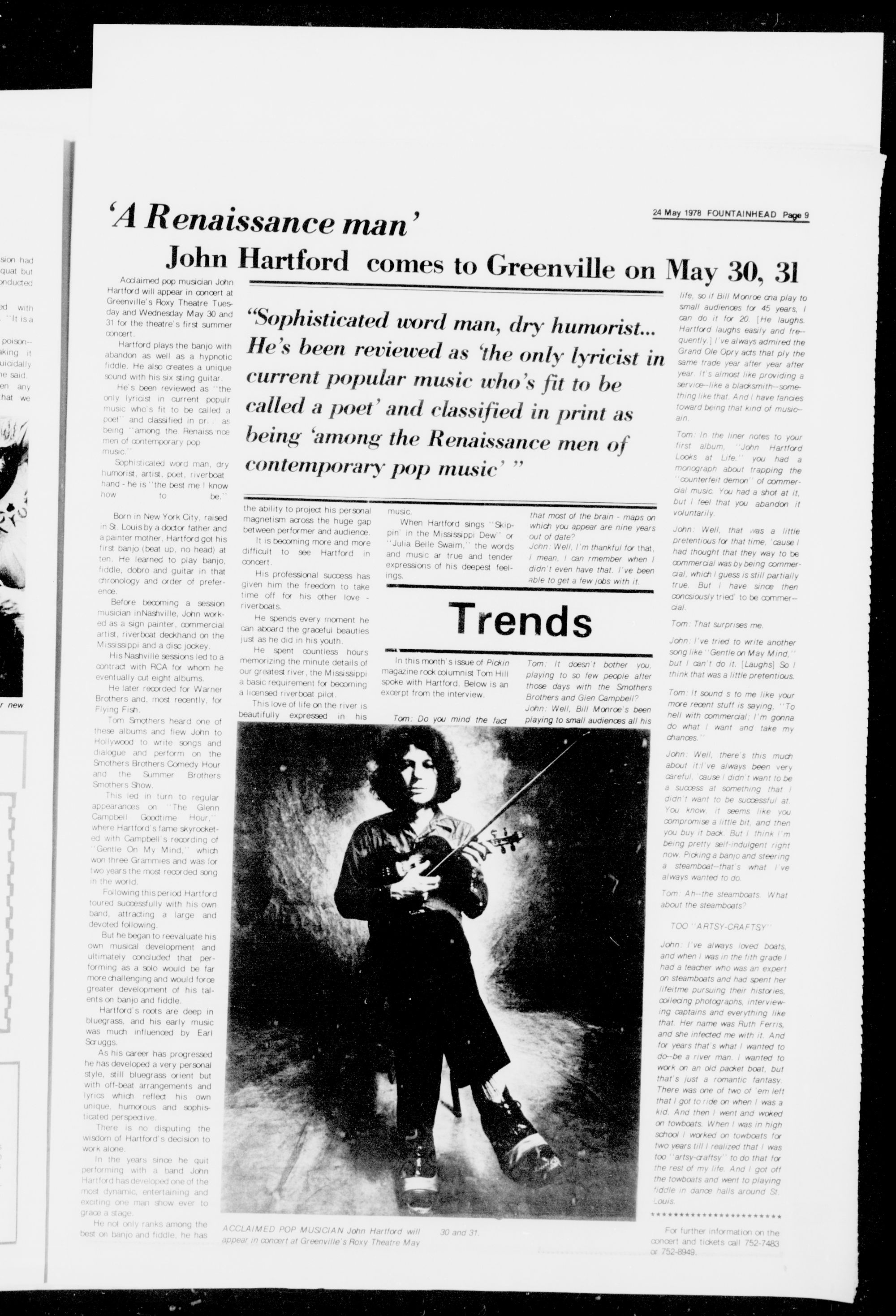 JOHN HARTFORD WILL appear in concert at the among the Renaissance men of contemporary pop