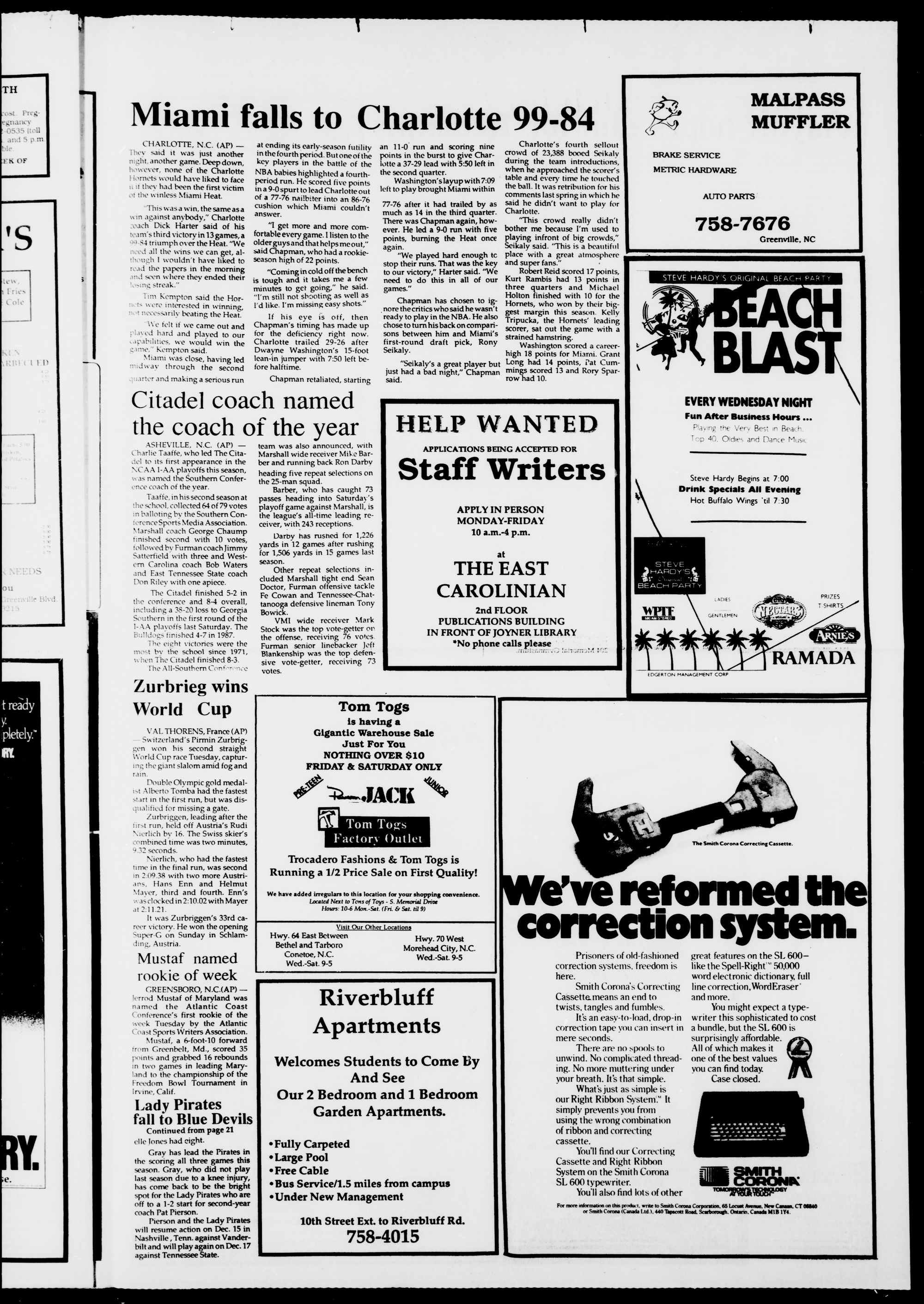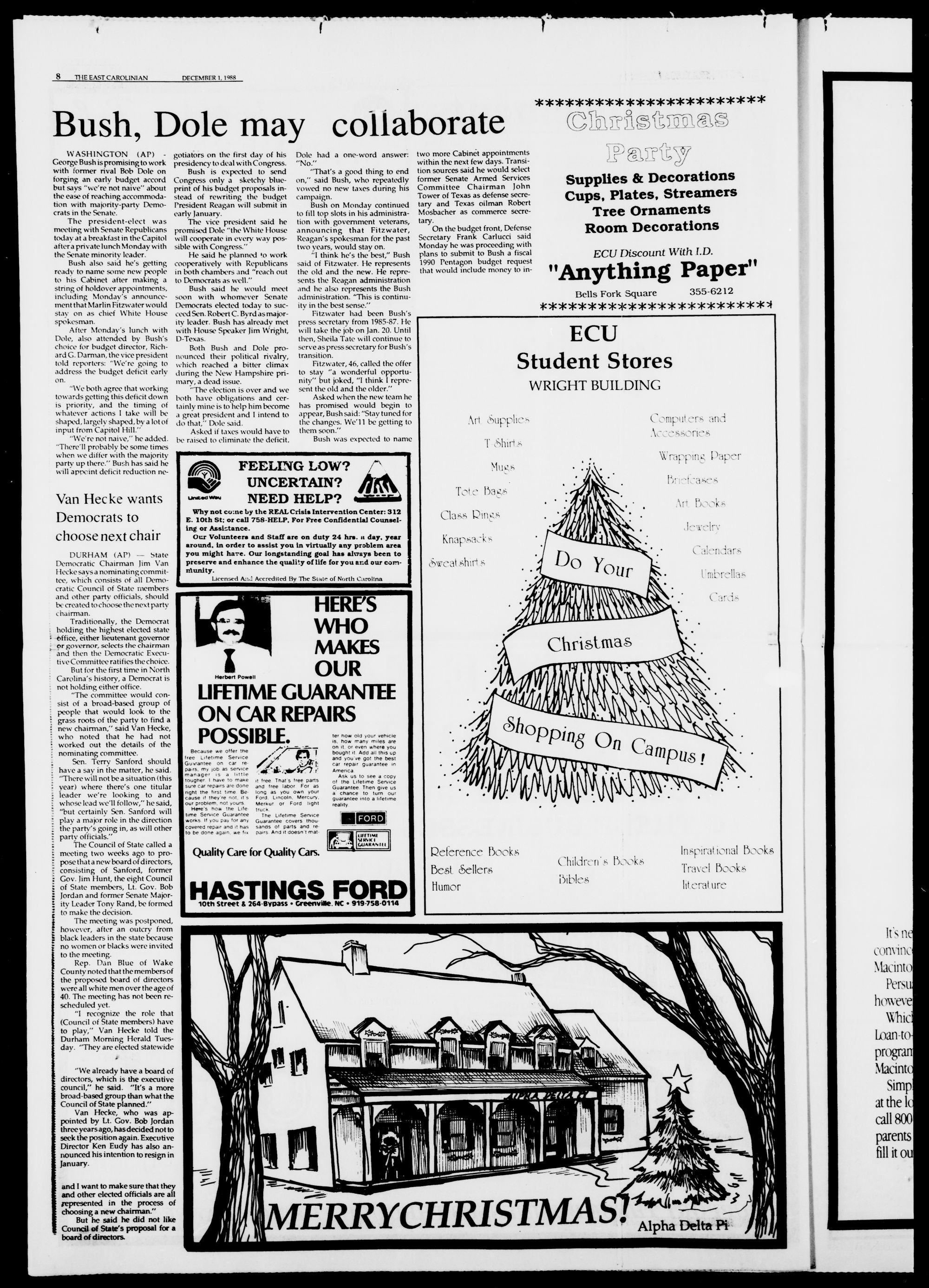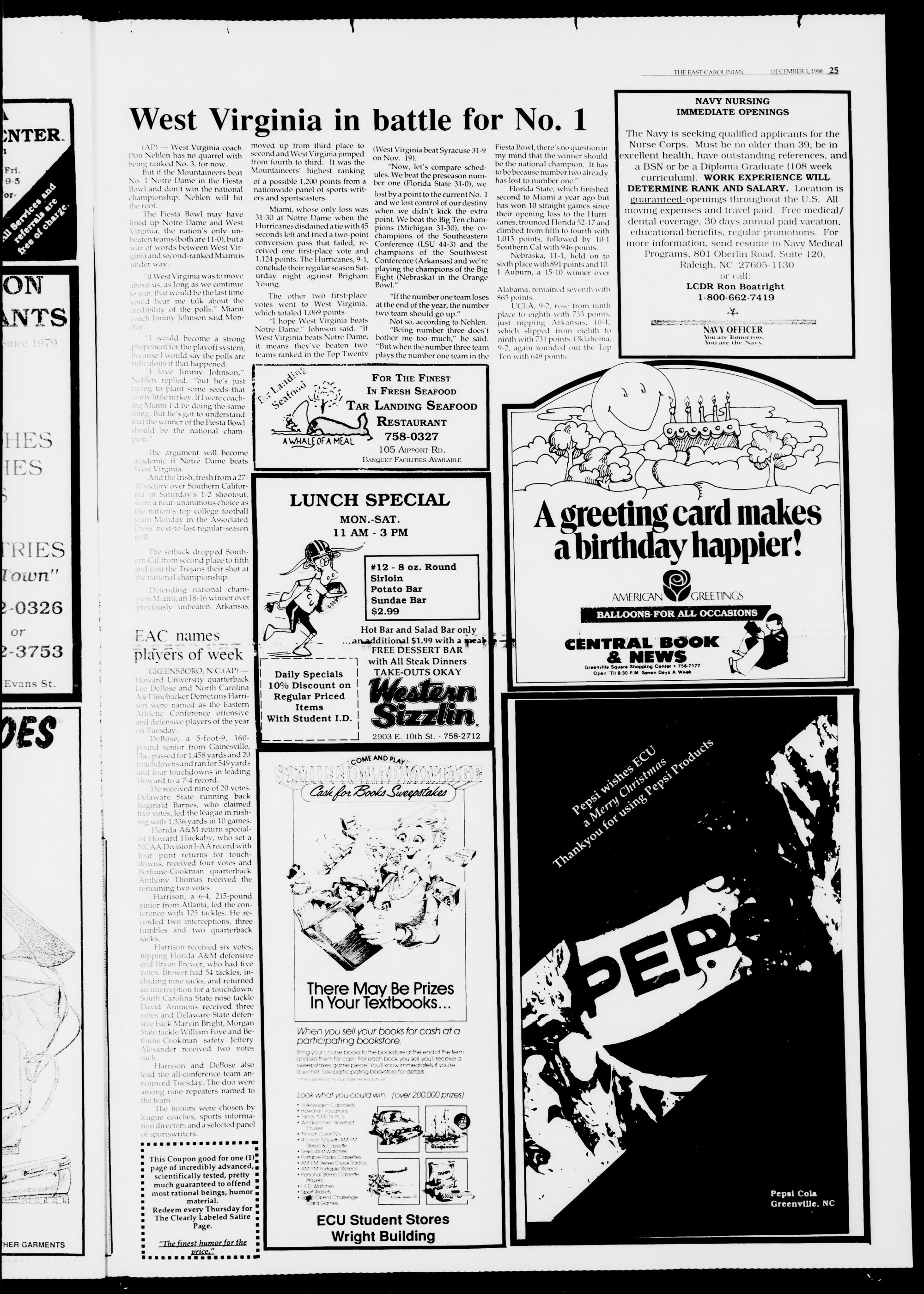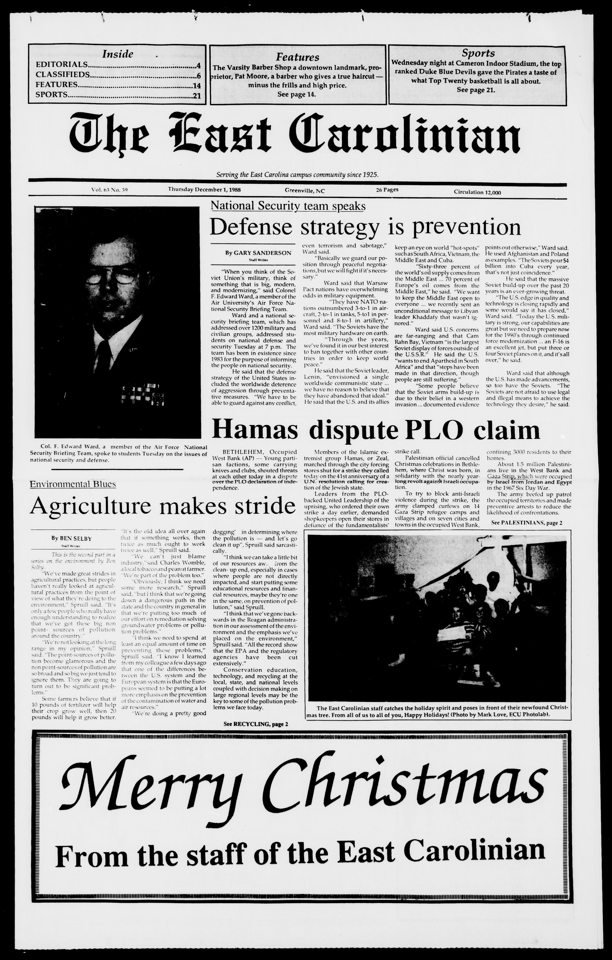 East Carolina's student-run campus newspaper was first published in 1923 as the East Carolina Teachers College News (1923-1925). It has been re-named as The Teco Echo (1925, 1926-1952), East Carolinian (1952-1969), Fountainhead (1969-1979), and The East Carolinian (1969, 1979-present). It includes local, state, national, and international stories with a focus on campus events.