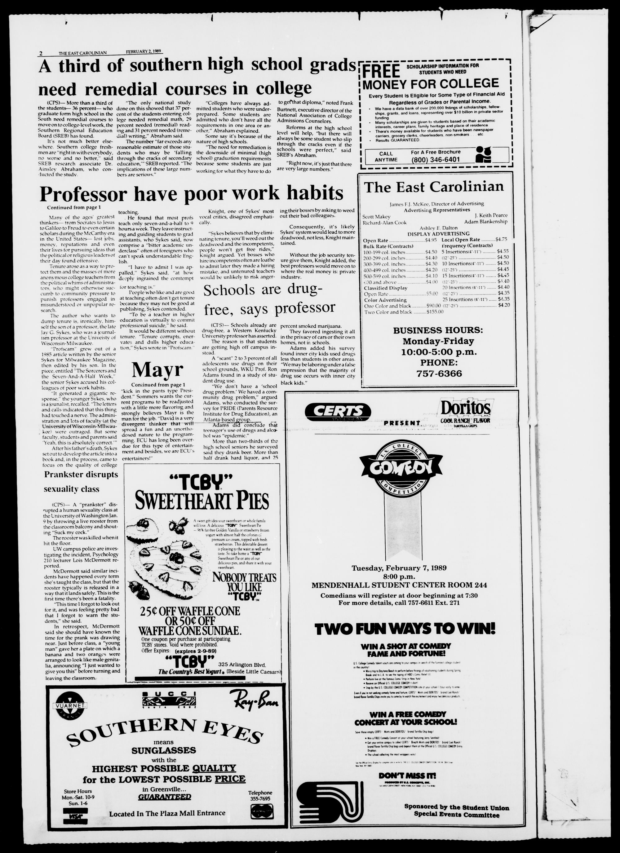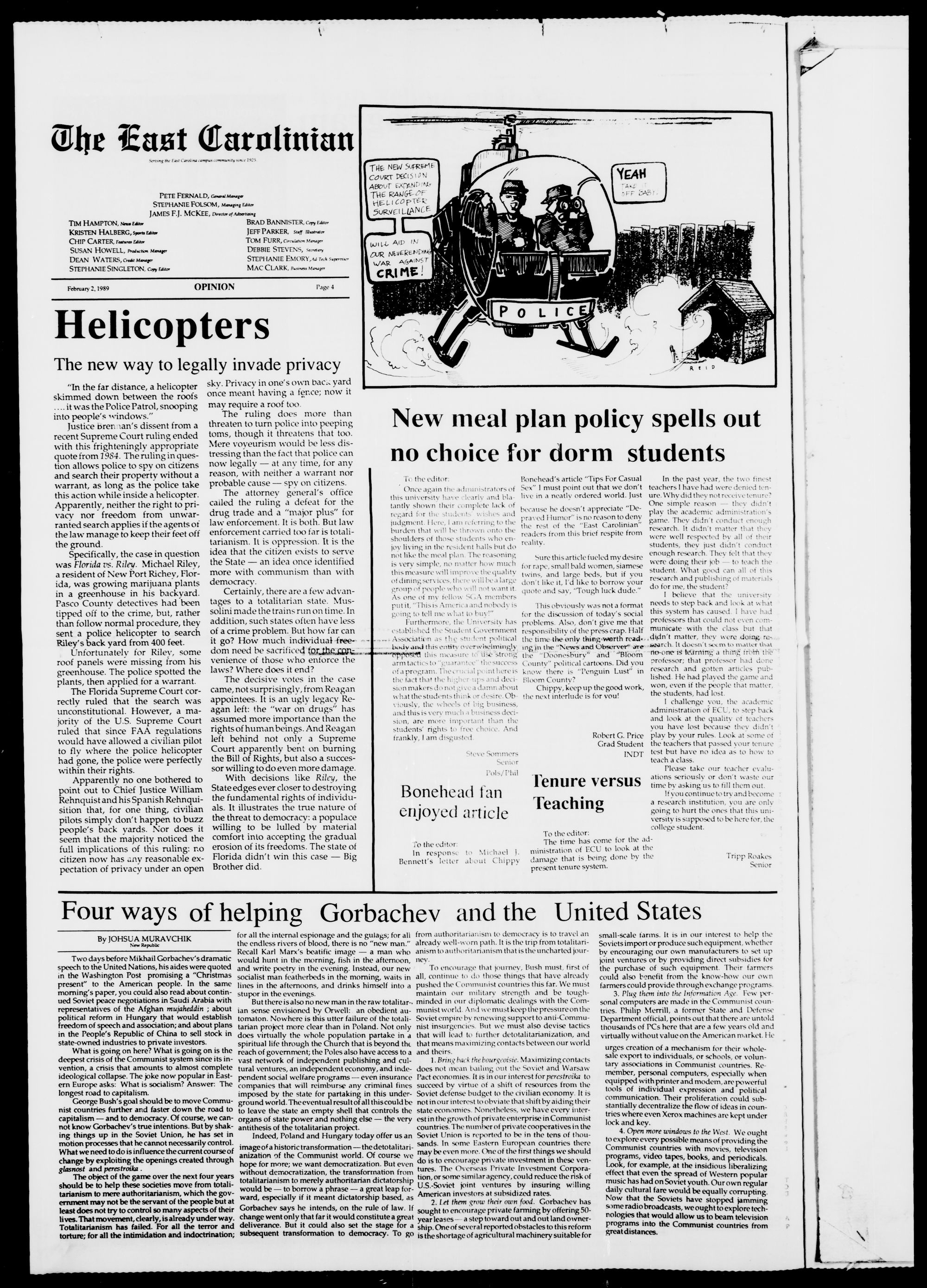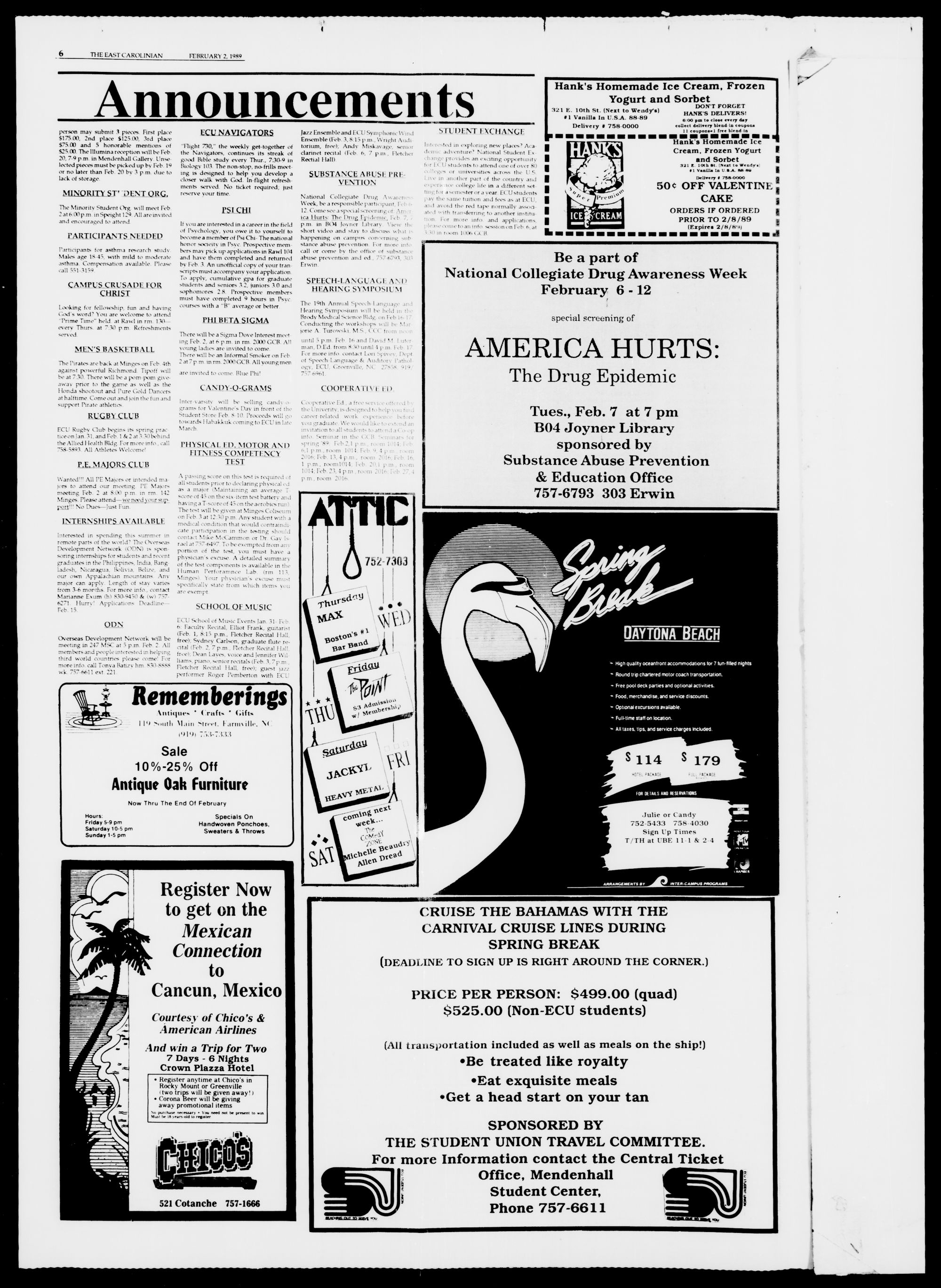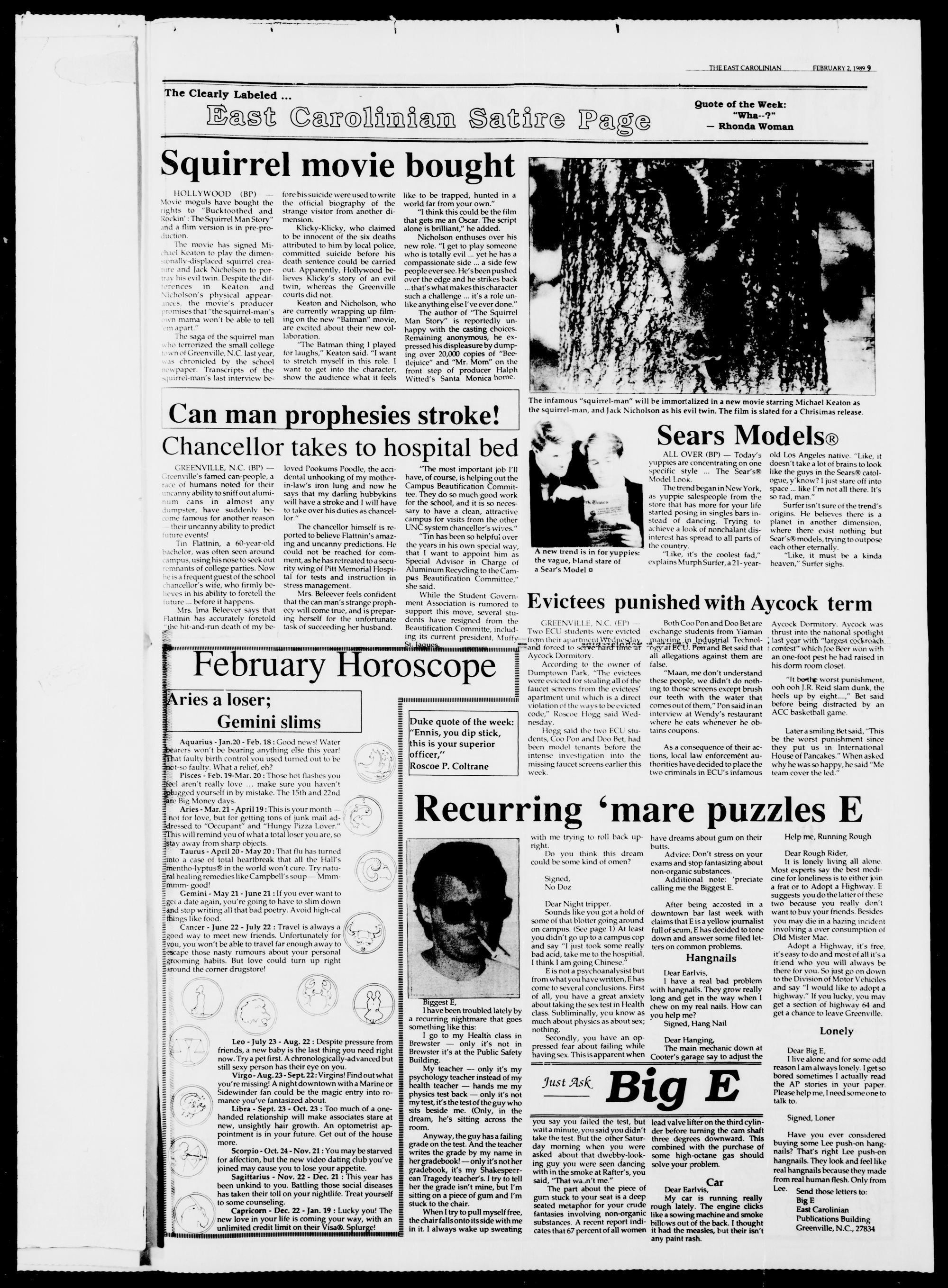 East Carolina's student-run campus newspaper was first published in 1923 as the East Carolina Teachers College News (1923-1925). It has been re-named as The Teco Echo (1925, 1926-1952), East Carolinian (1952-1969), Fountainhead (1969-1979), and The East Carolinian (1969, 1979-present). It includes local, state, national, and international stories with a focus on campus events.