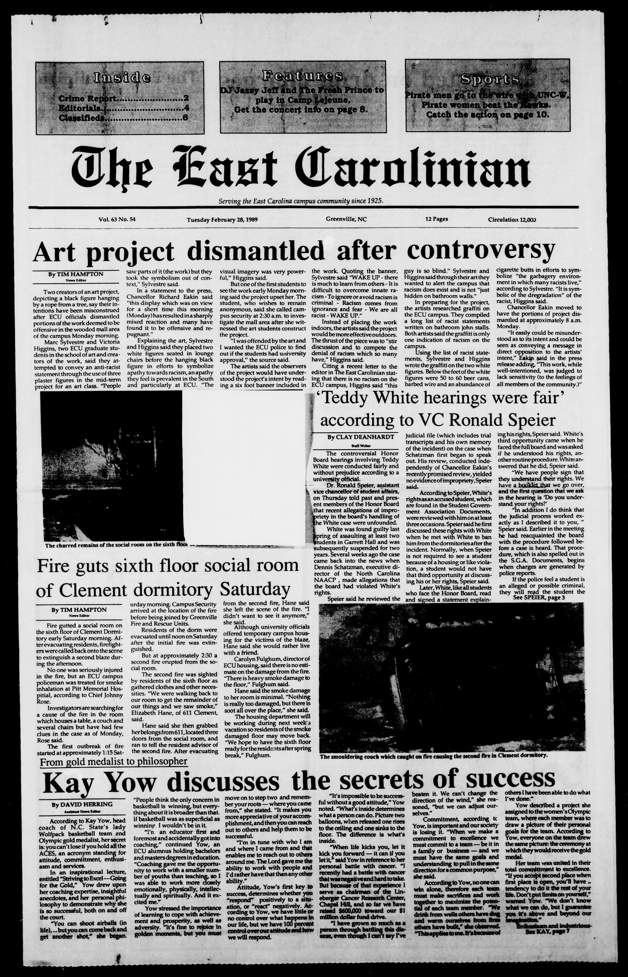 md particularly at ECU. "The ing a six foot banner included in ECU campus, Higgins said "this