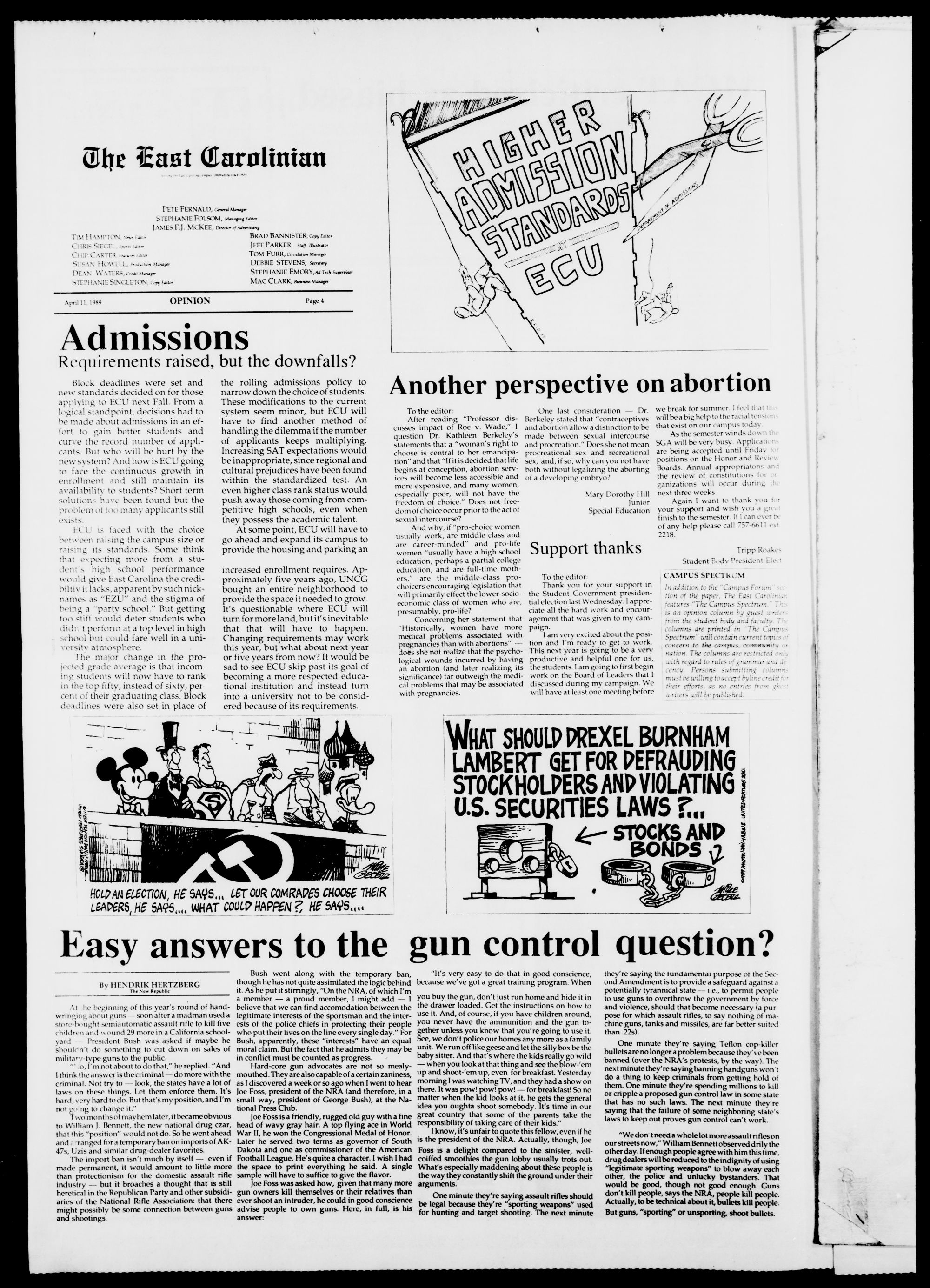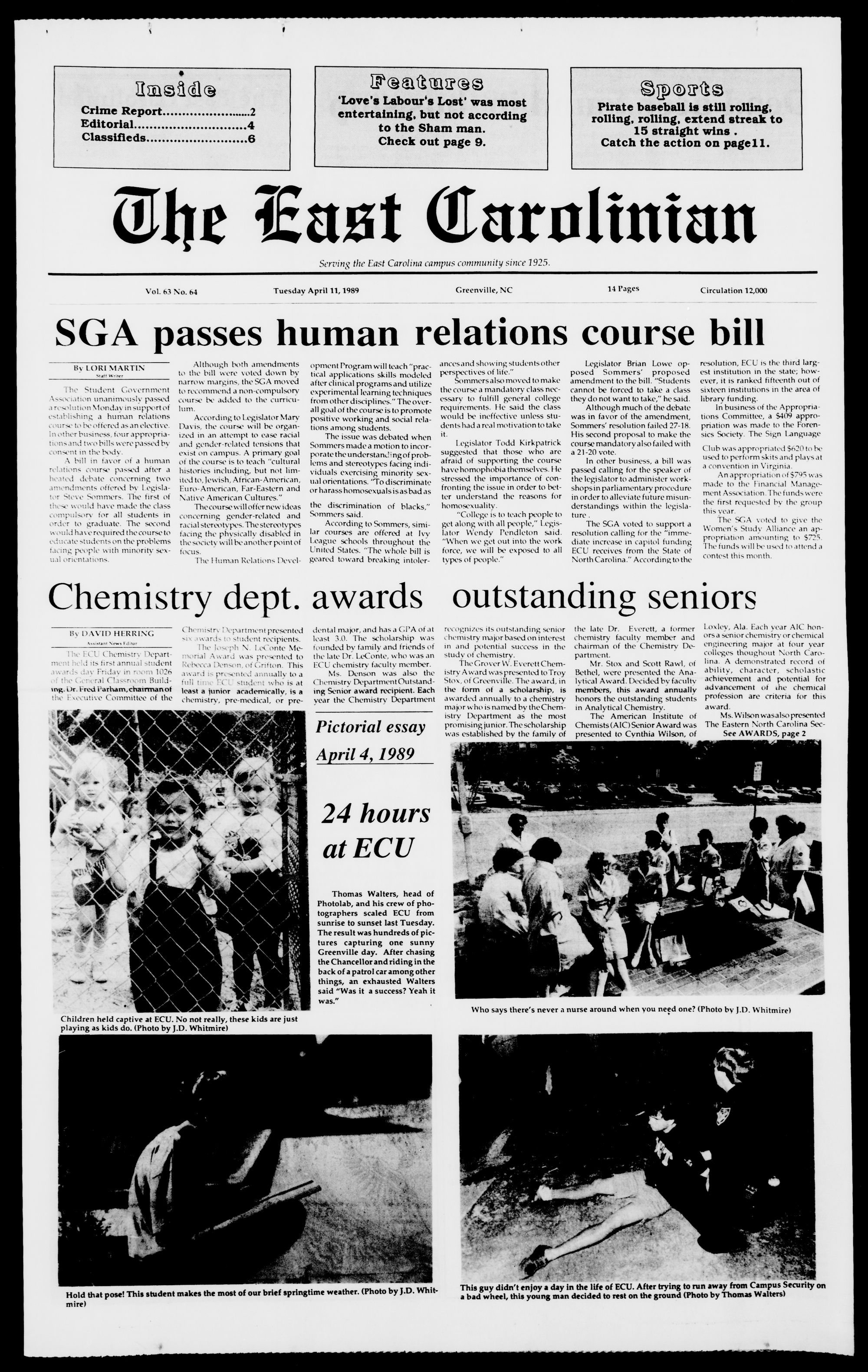 East Carolina's student-run campus newspaper was first published in 1923 as the East Carolina Teachers College News (1923-1925). It has been re-named as The Teco Echo (1925, 1926-1952), East Carolinian (1952-1969), Fountainhead (1969-1979), and The East Carolinian (1969, 1979-present). It includes local, state, national, and international stories with a focus on campus events.