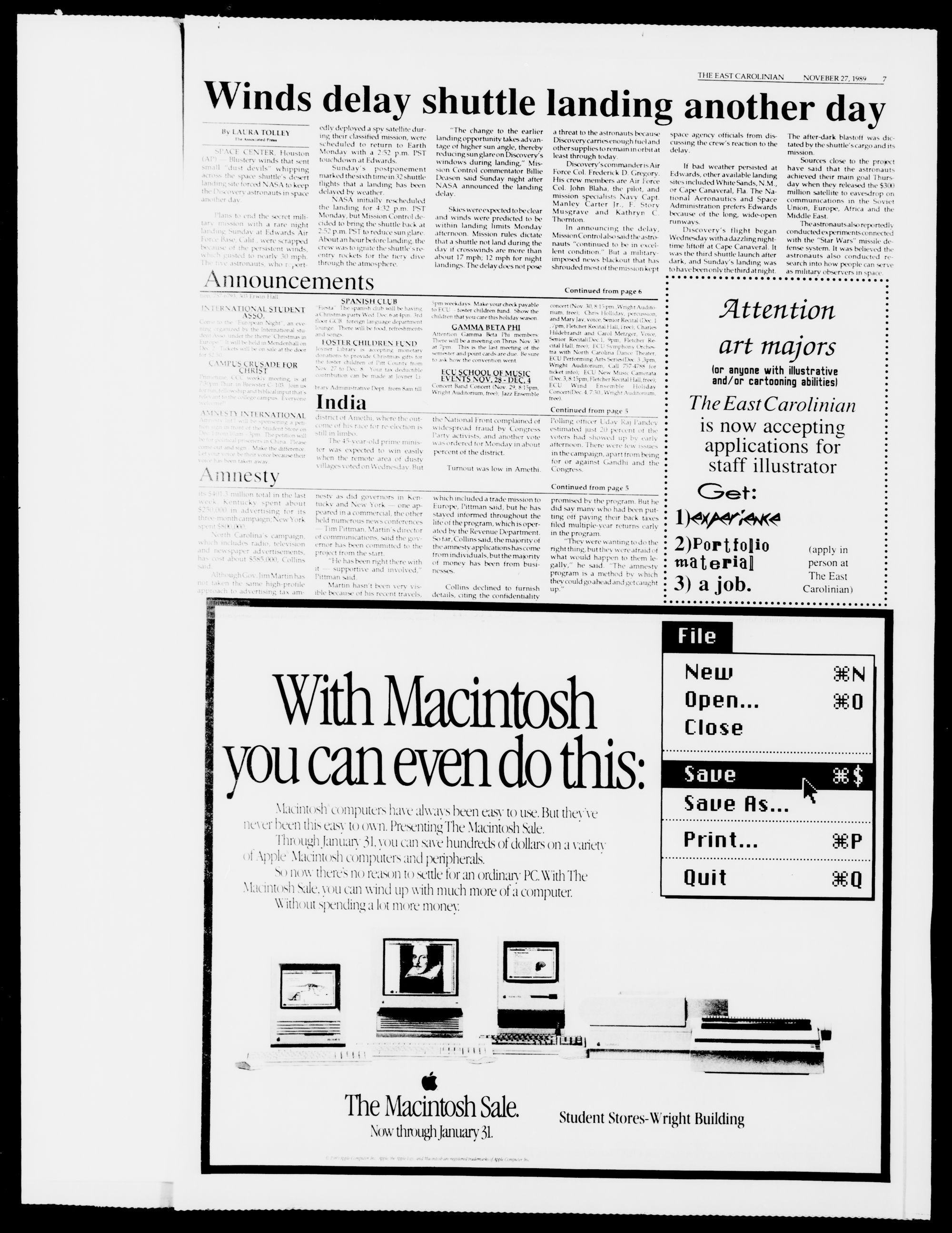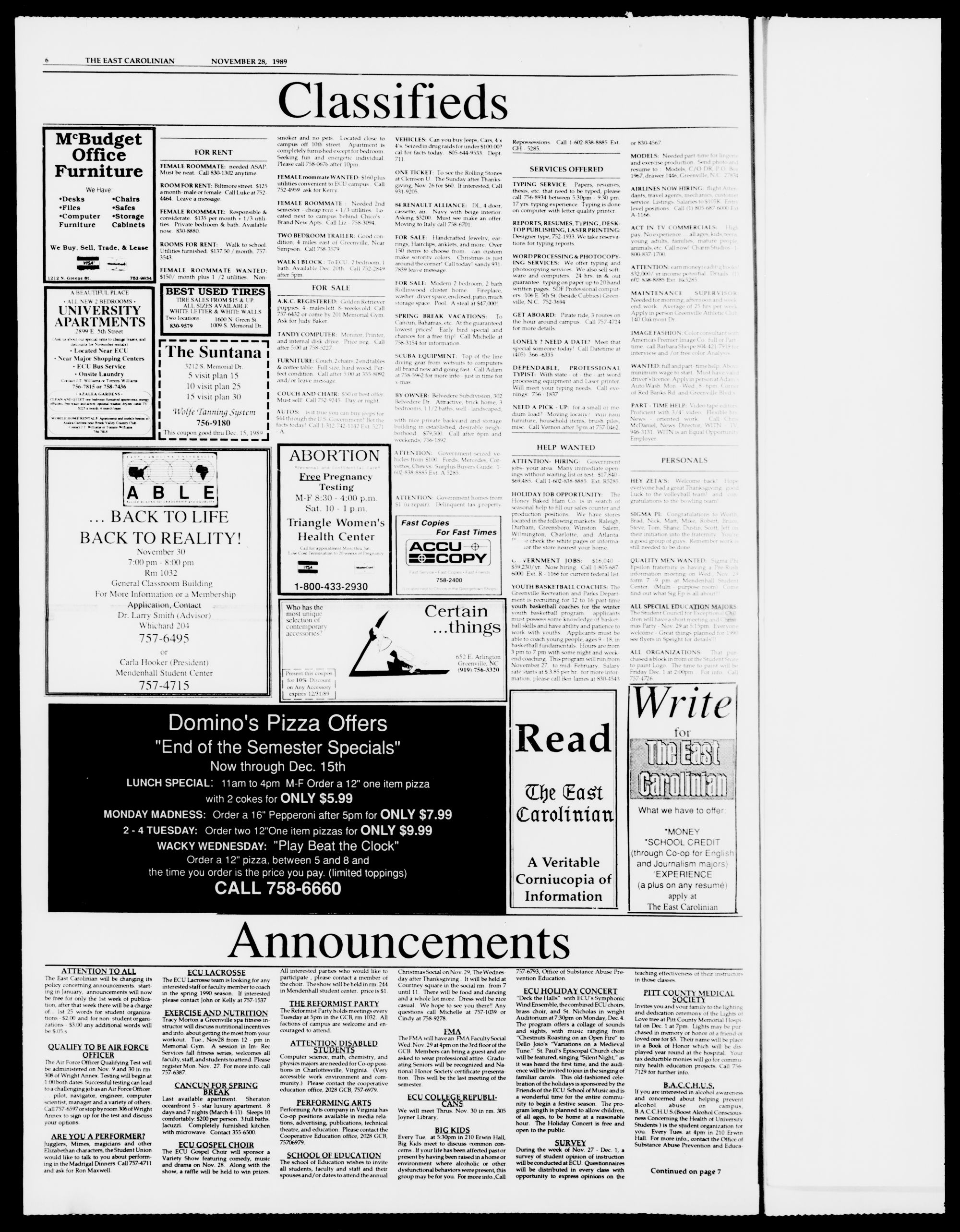 The East Carolinian, November 28, 1989