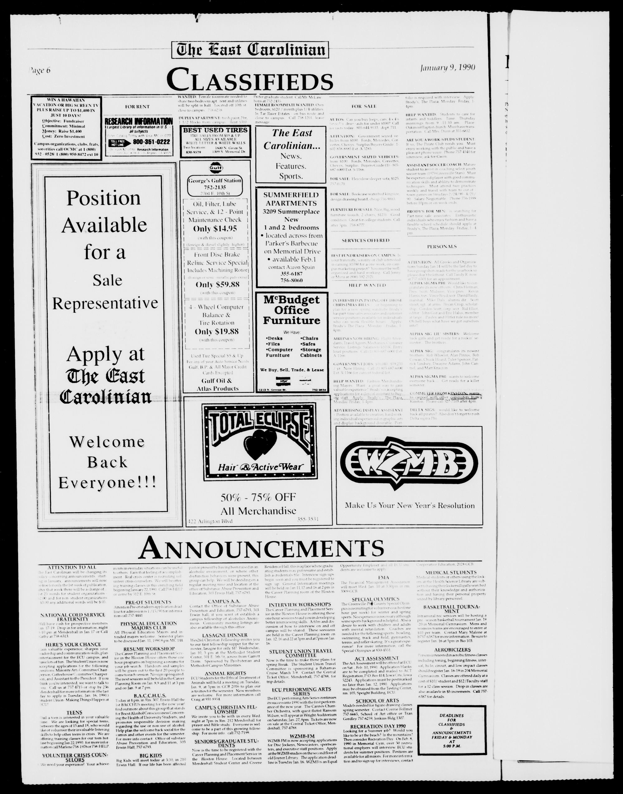 The East Carolinian, January 9, 1990
