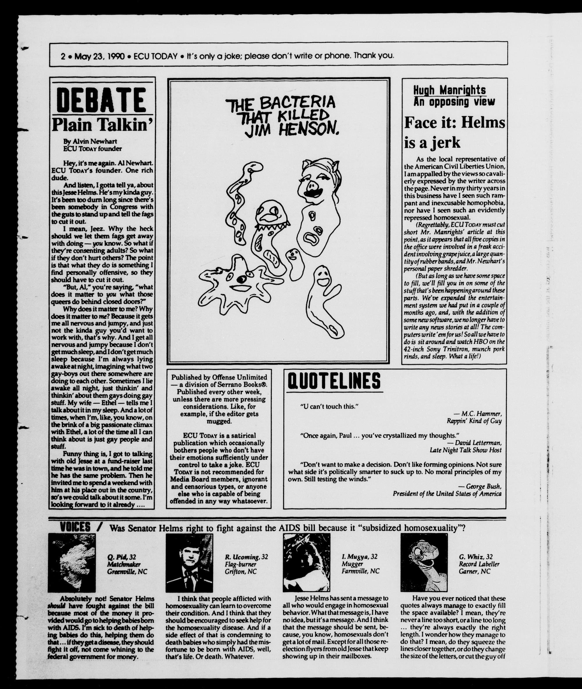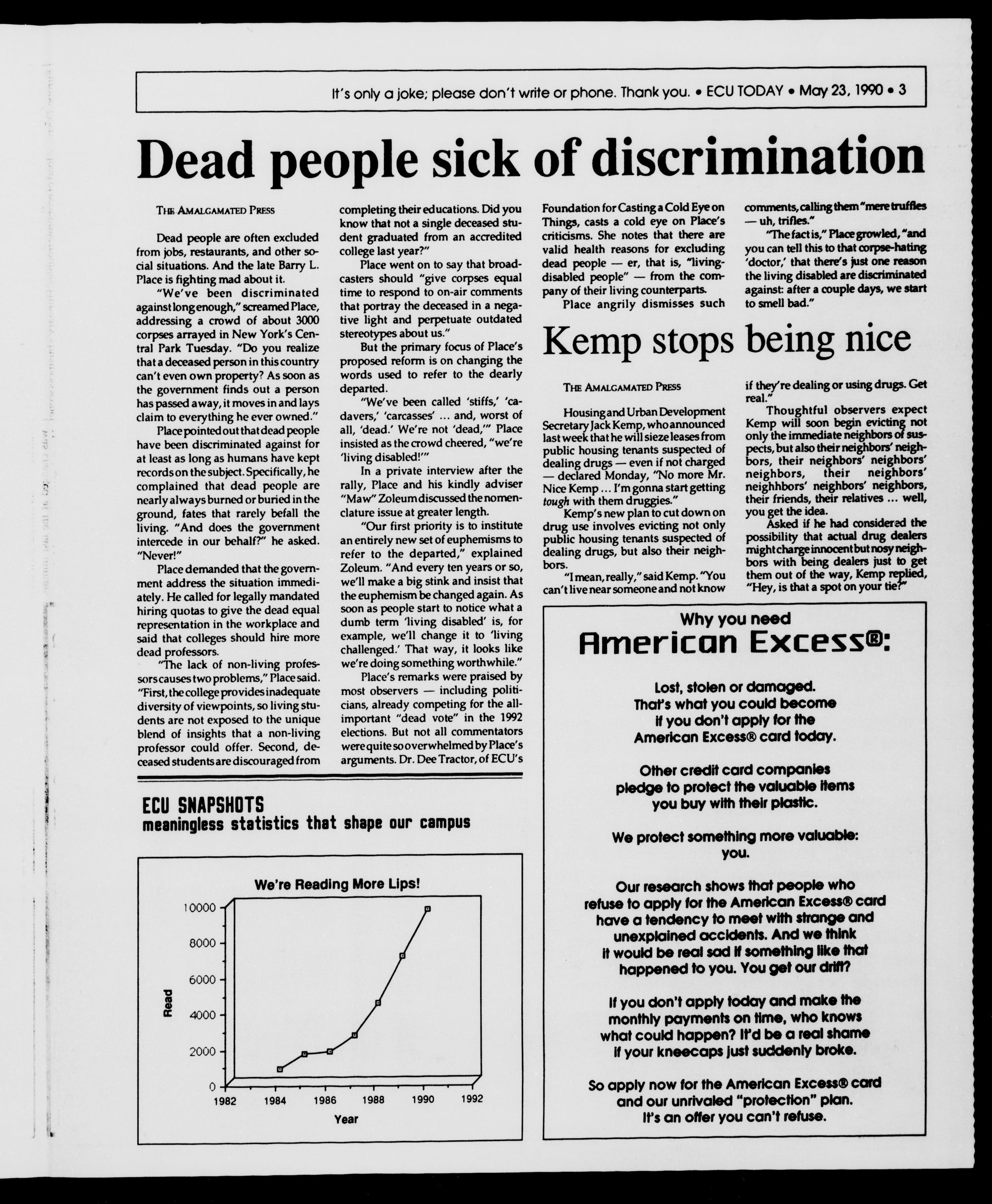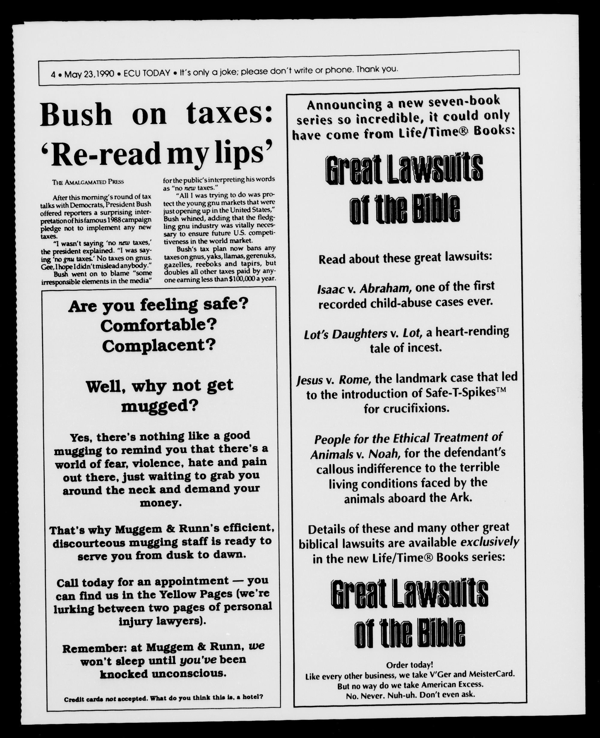 4 ? May 23,1990 ? ECU TODAY ? It's only a joke; please don't write or phone. Thank you.