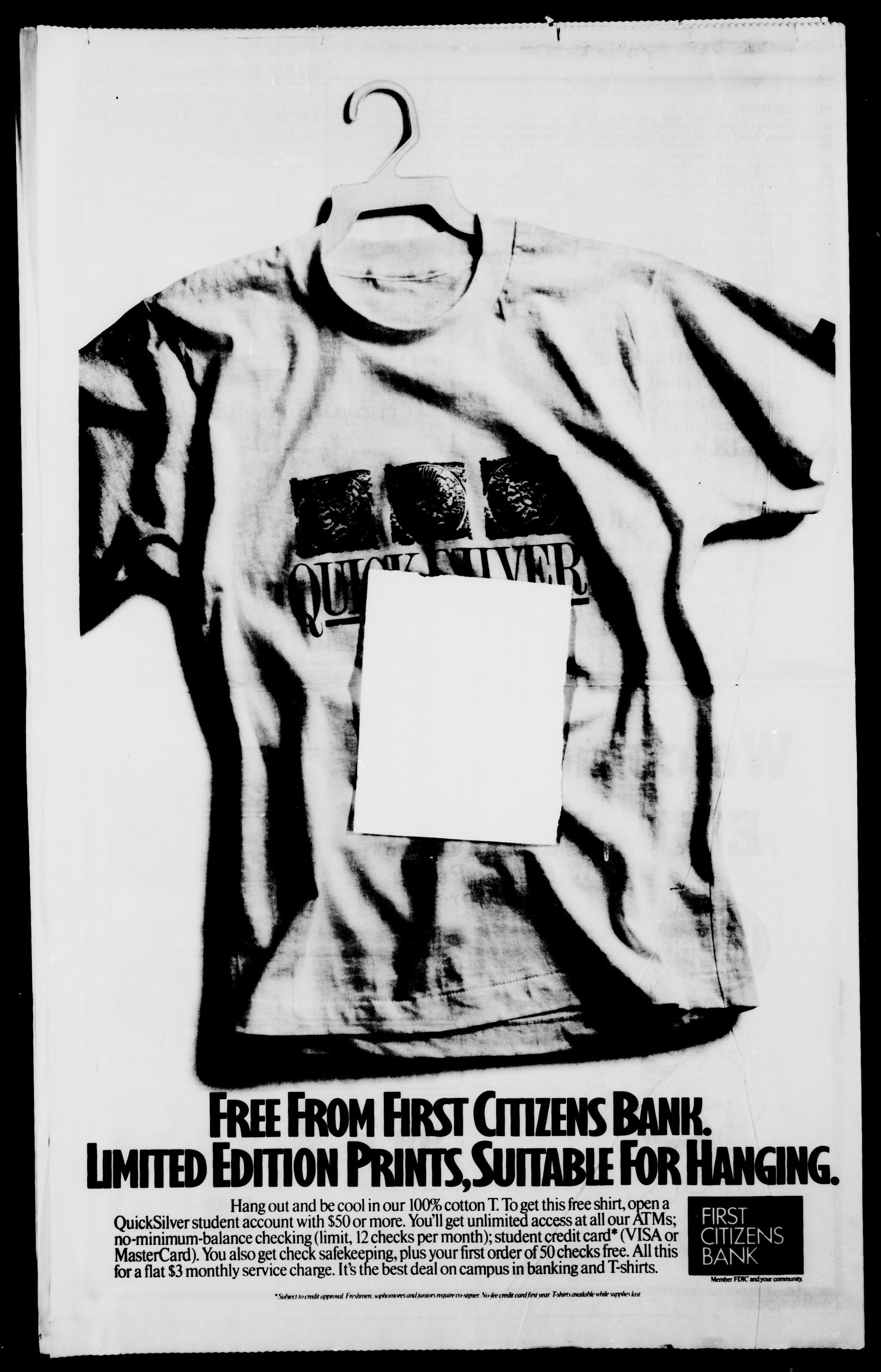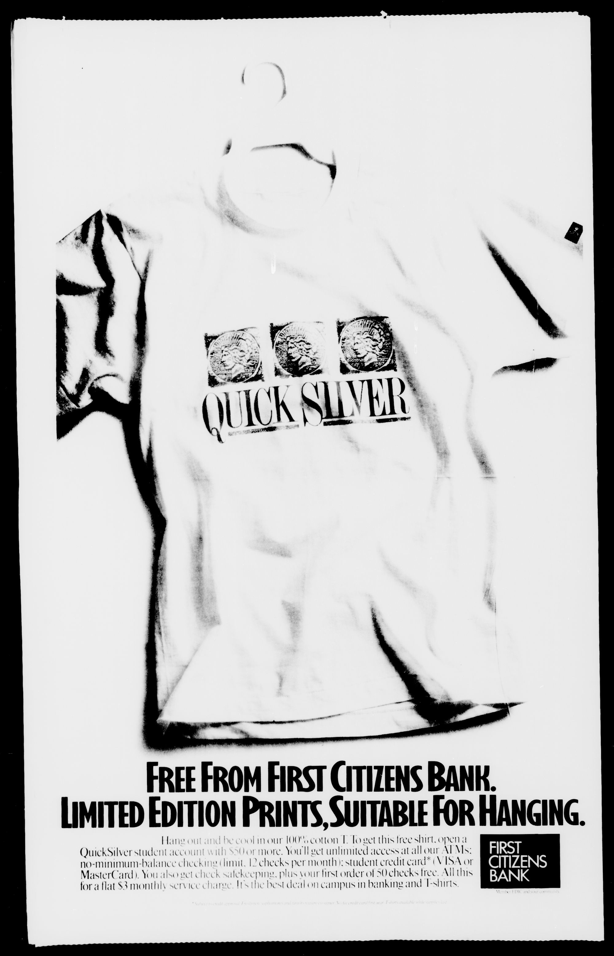 for a flat $3 monthly service charge. It's the best deal on campus in banking and T-shirts.