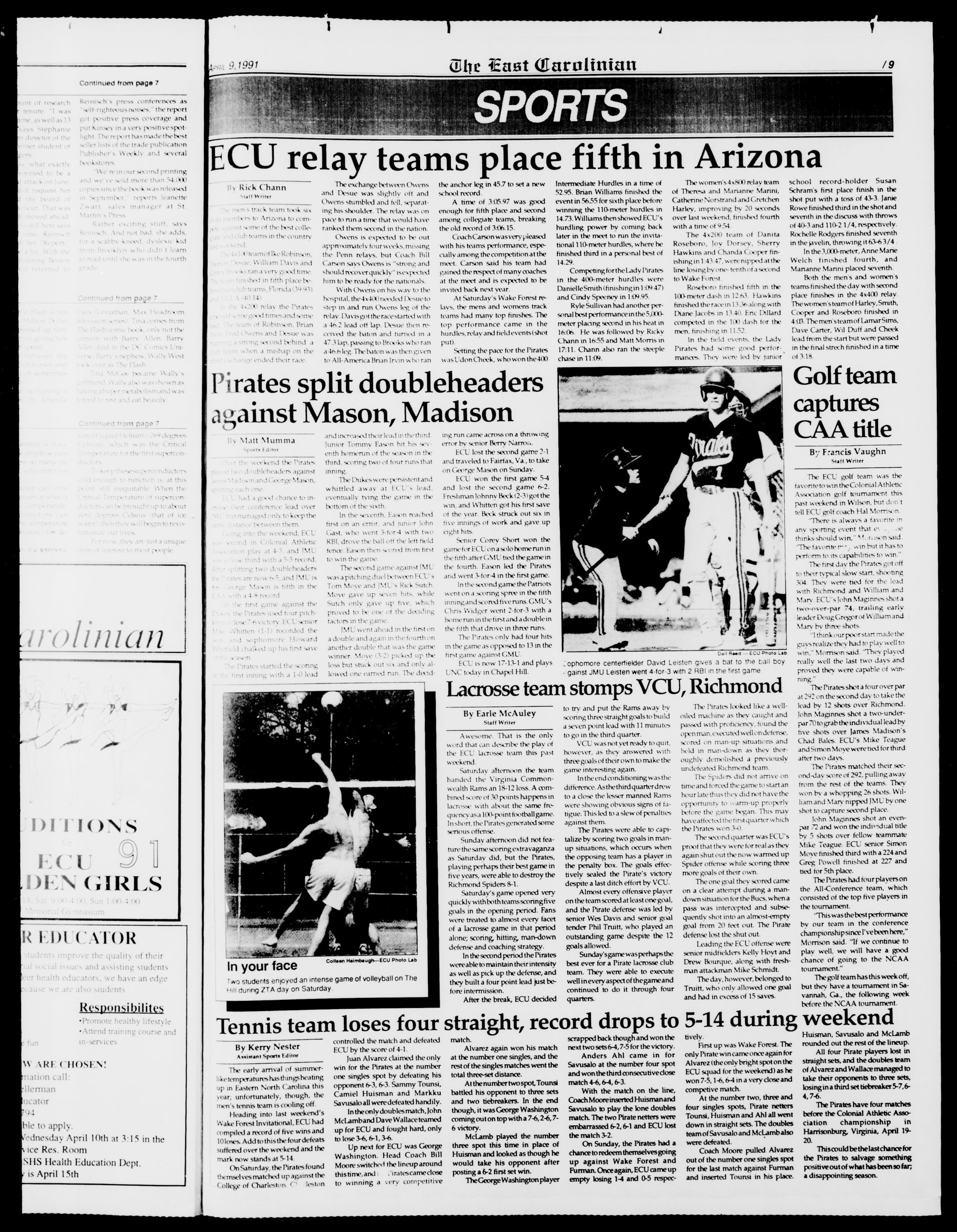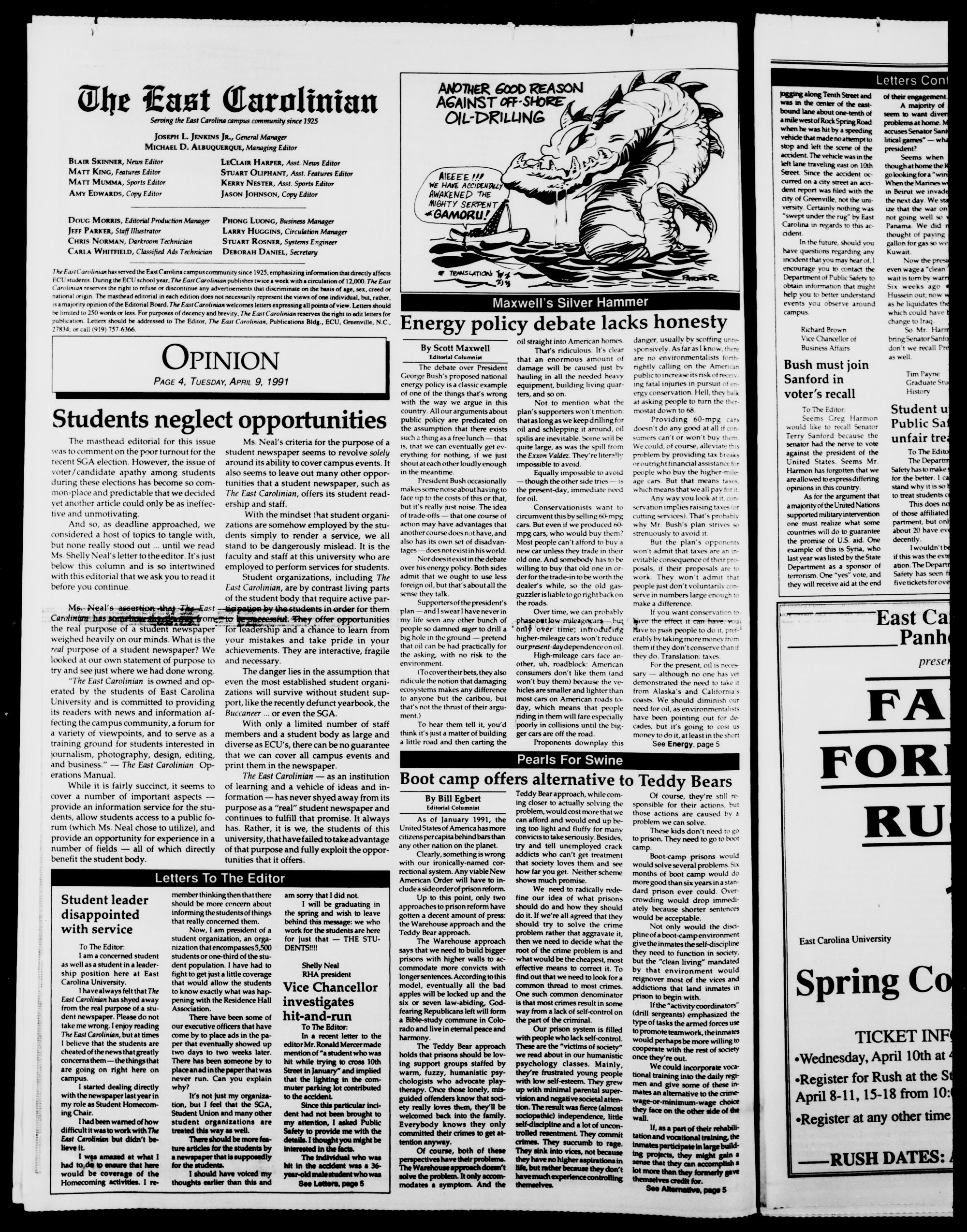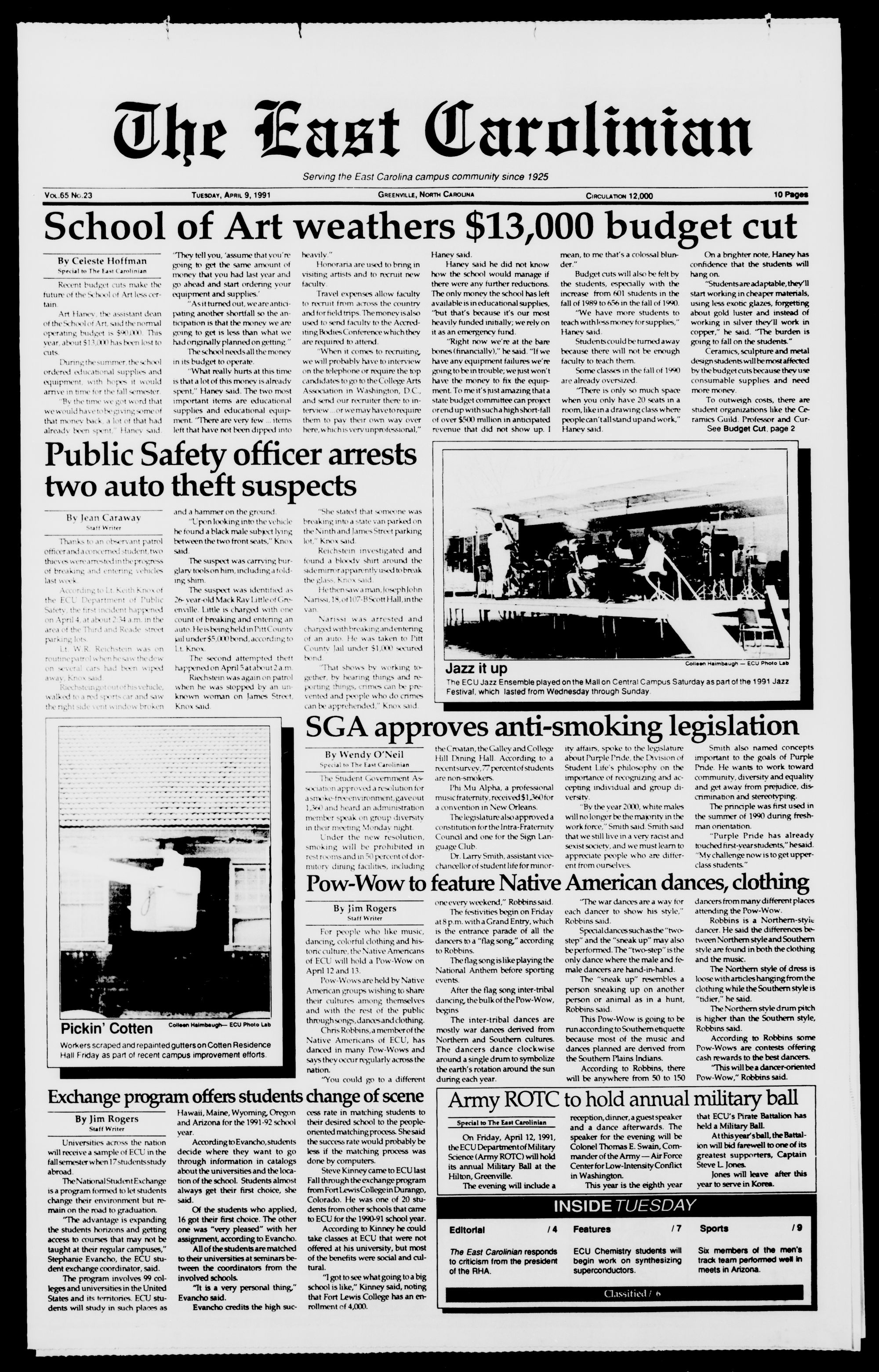 East Carolina's student-run campus newspaper was first published in 1923 as the East Carolina Teachers College News (1923-1925). It has been re-named as The Teco Echo (1925, 1926-1952), East Carolinian (1952-1969), Fountainhead (1969-1979), and The East Carolinian (1969, 1979-present). It includes local, state, national, and international stories with a focus on campus events.