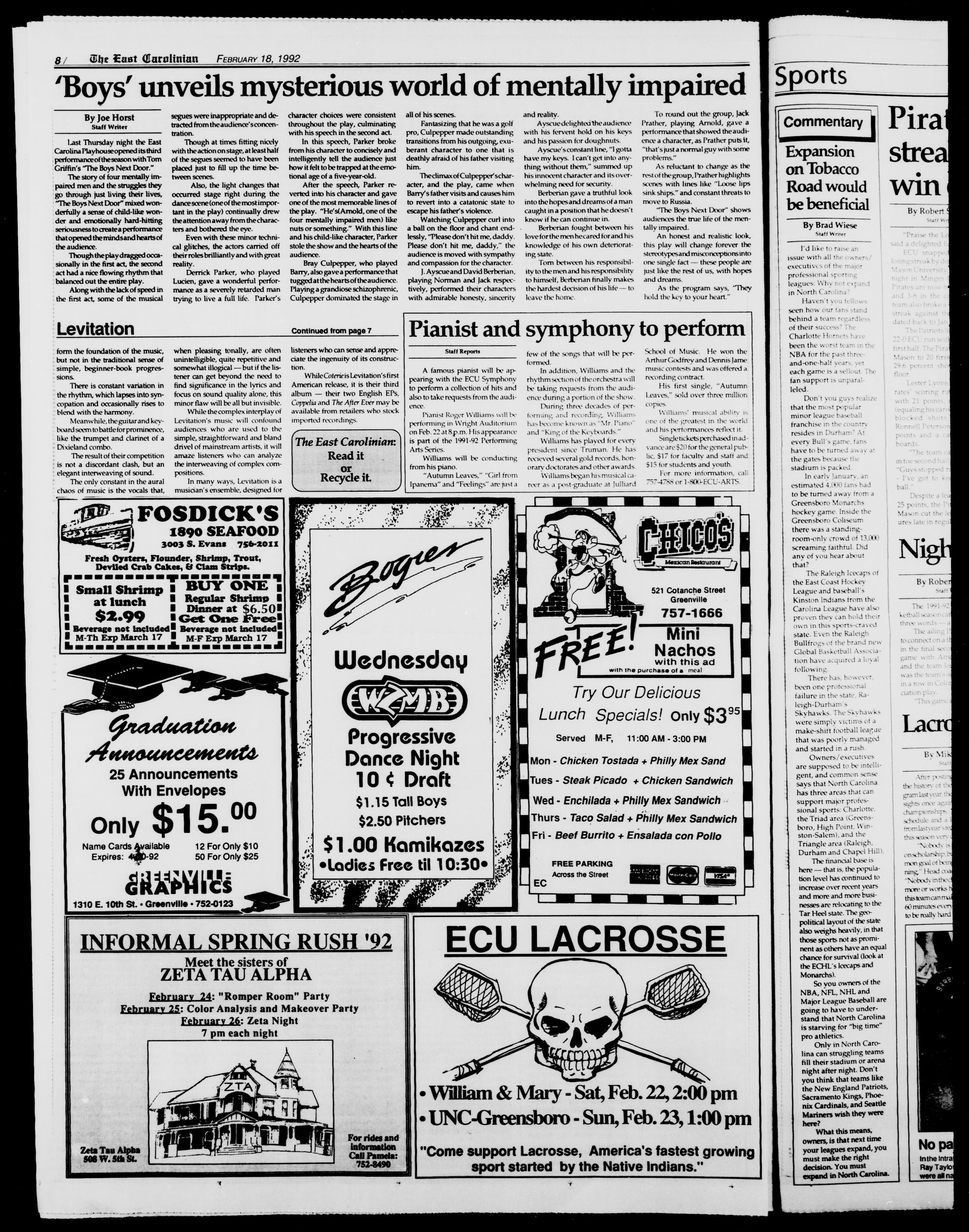 FEBRUARY 13, M, 15, 17 and 18 at 8:15 p.m.