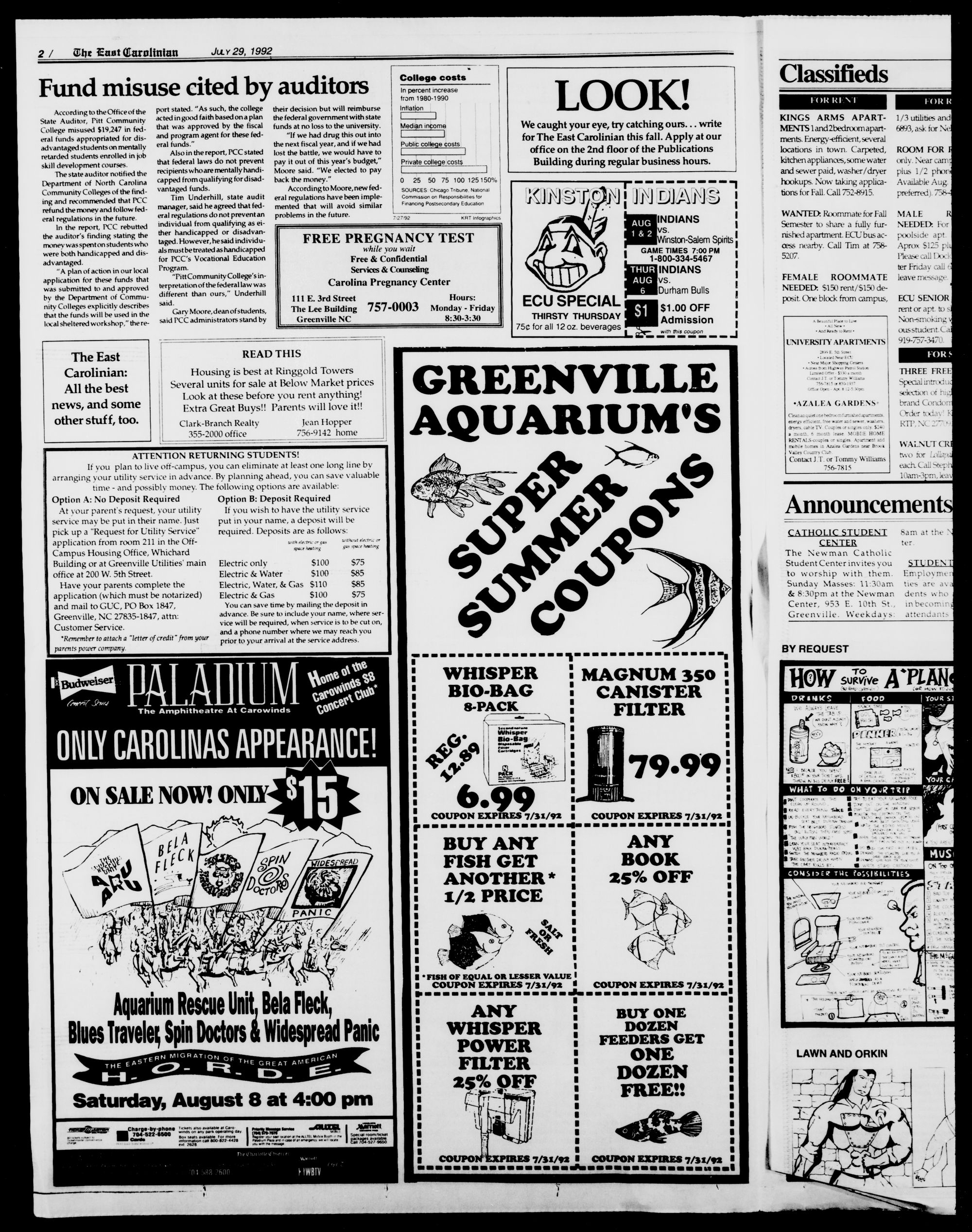 East Carolina's student-run campus newspaper was first published in 1923 as the East Carolina Teachers College News (1923-1925). It has been re-named as The Teco Echo (1925, 1926-1952), East Carolinian (1952-1969), Fountainhead (1969-1979), and The East Carolinian (1969, 1979-present). It includes local, state, national, and international stories with a focus on campus events.