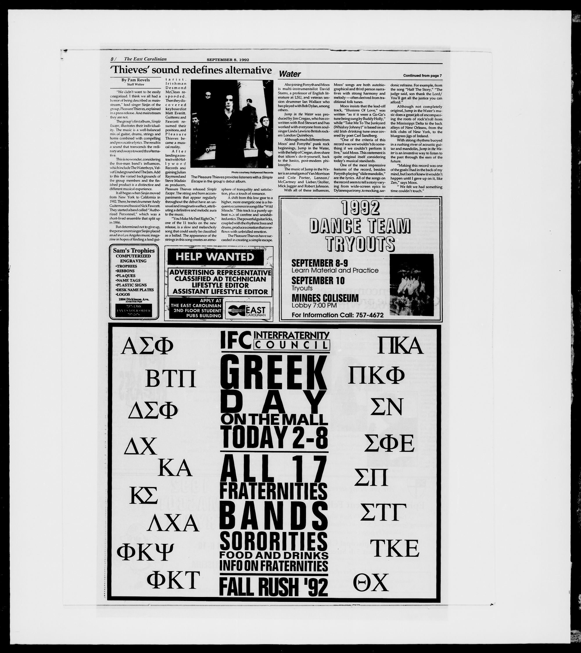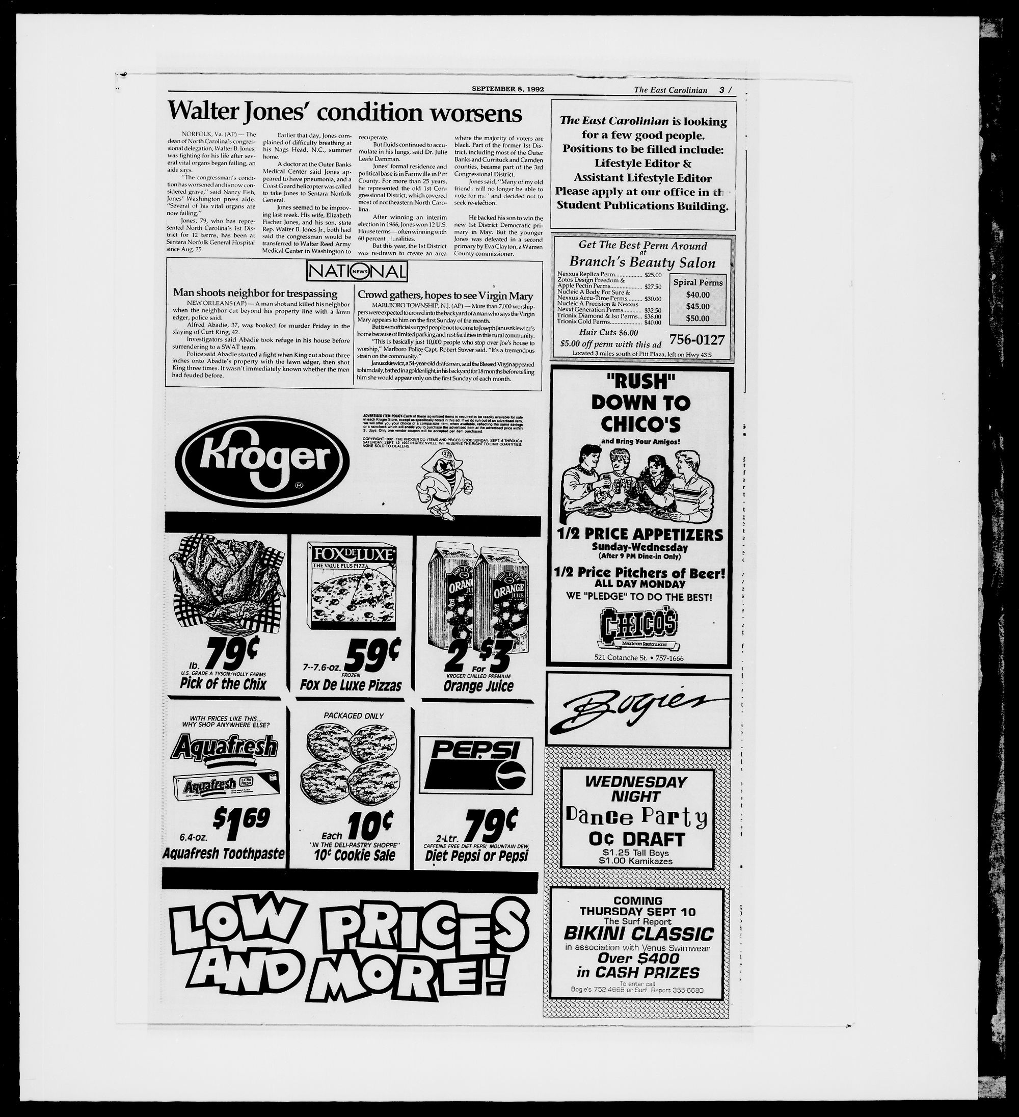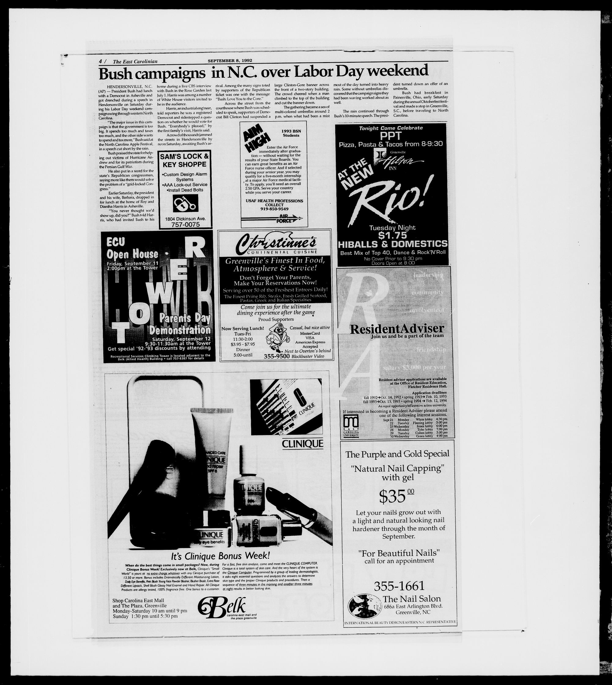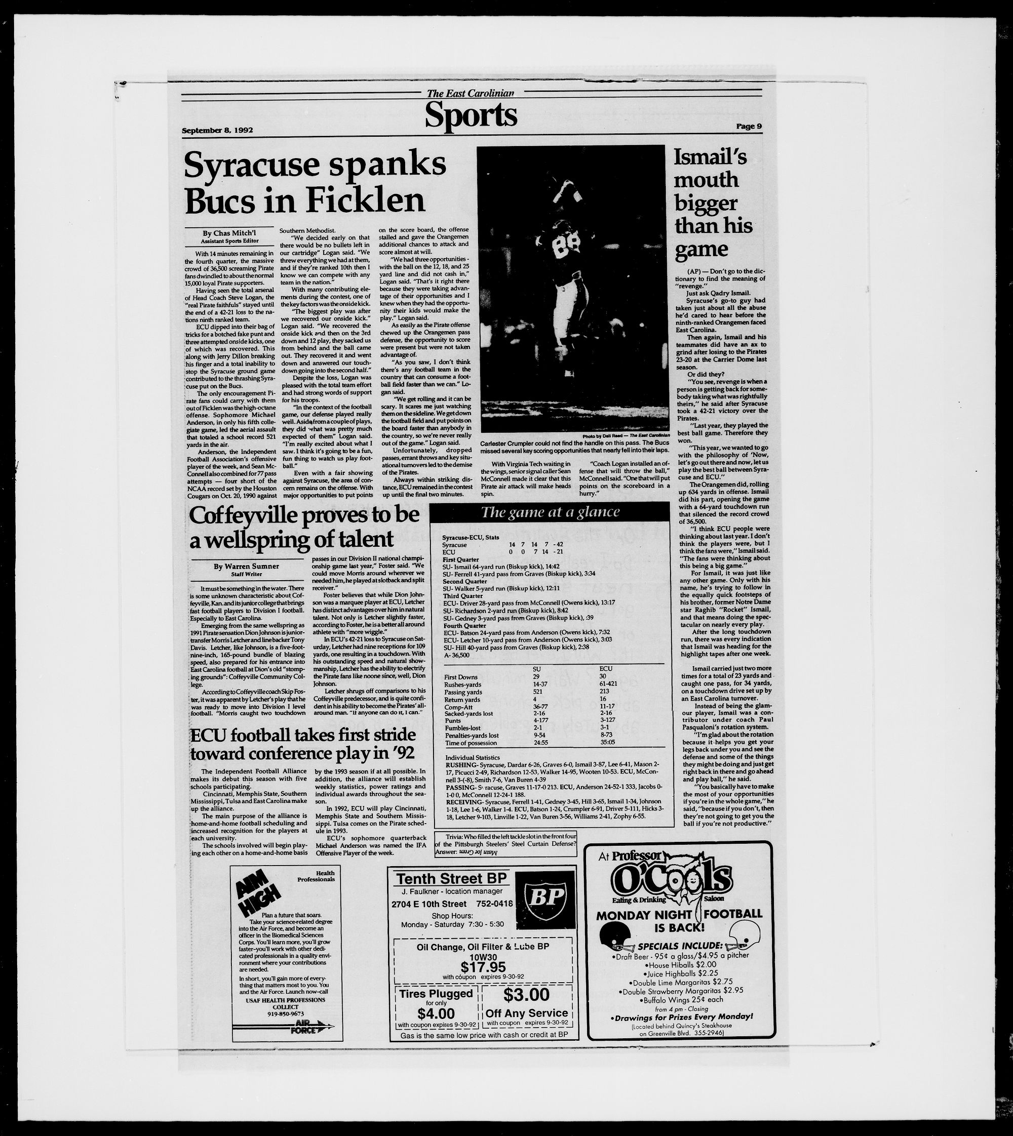 East Carolina's student-run campus newspaper was first published in 1923 as the East Carolina Teachers College News (1923-1925). It has been re-named as The Teco Echo (1925, 1926-1952), East Carolinian (1952-1969), Fountainhead (1969-1979), and The East Carolinian (1969, 1979-present). It includes local, state, national, and international stories with a focus on campus events.