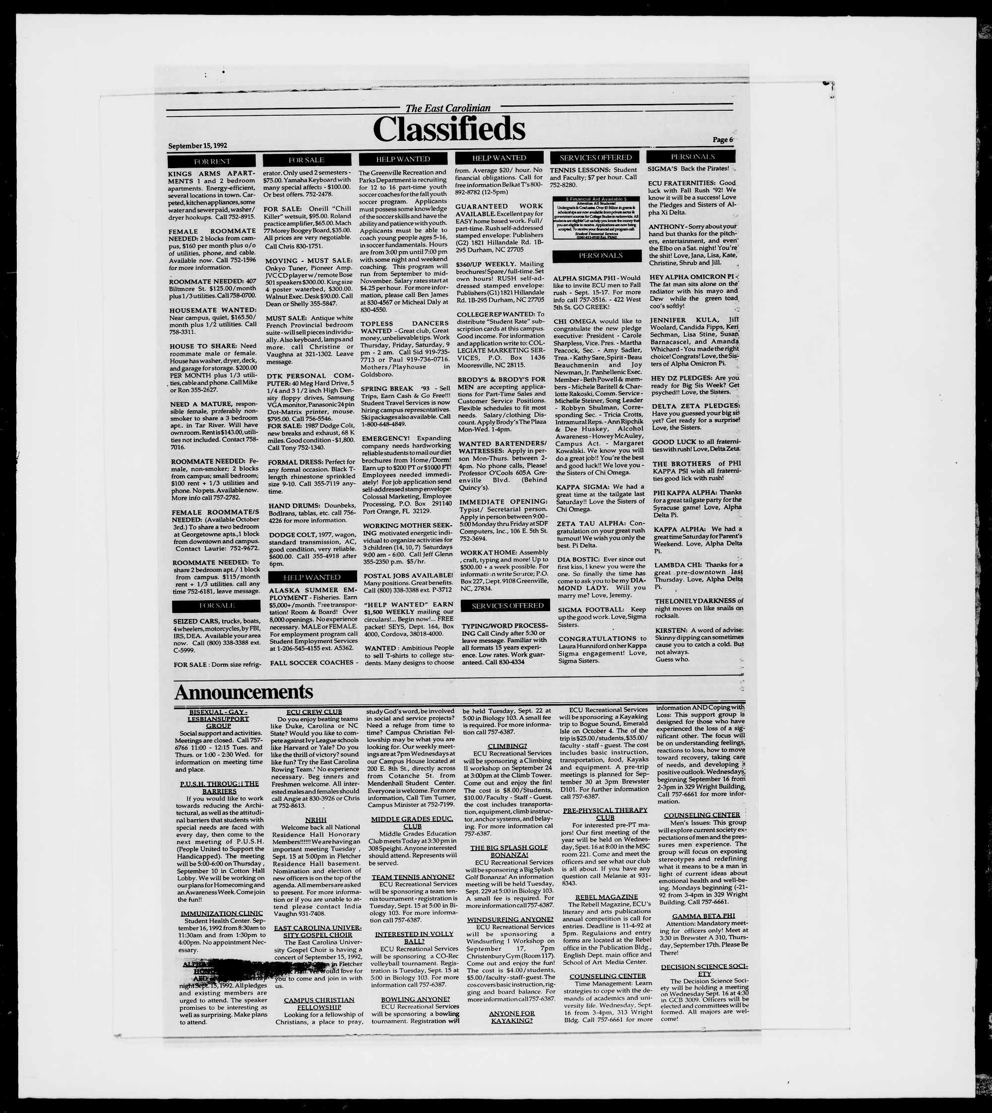 The East Carolinian, September 15, 1992