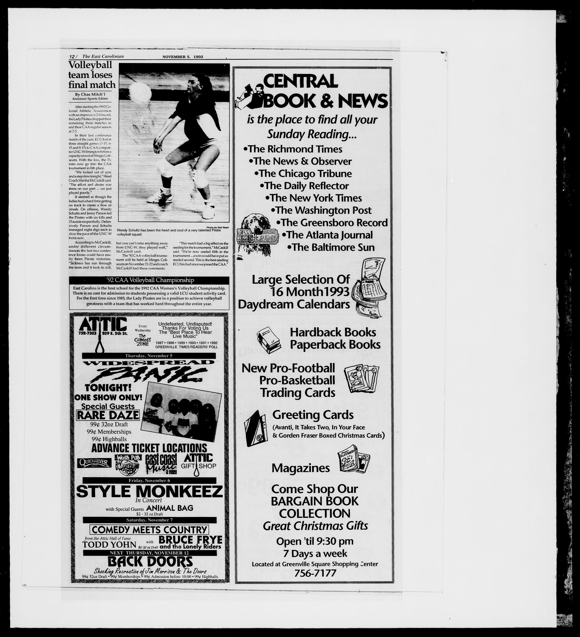 East Carolina is the host school for the 1992 CAA Women's Volleyball Championship.