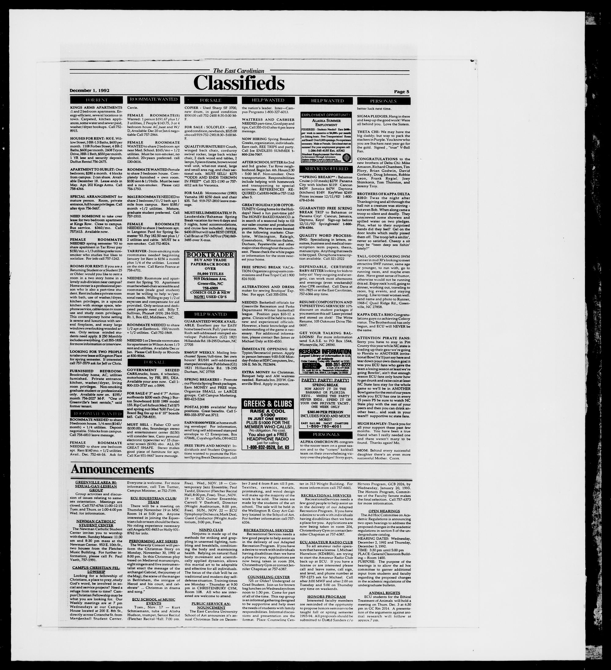 S?E$5' 1992 1N GREENVILLE WE RESERVE THE