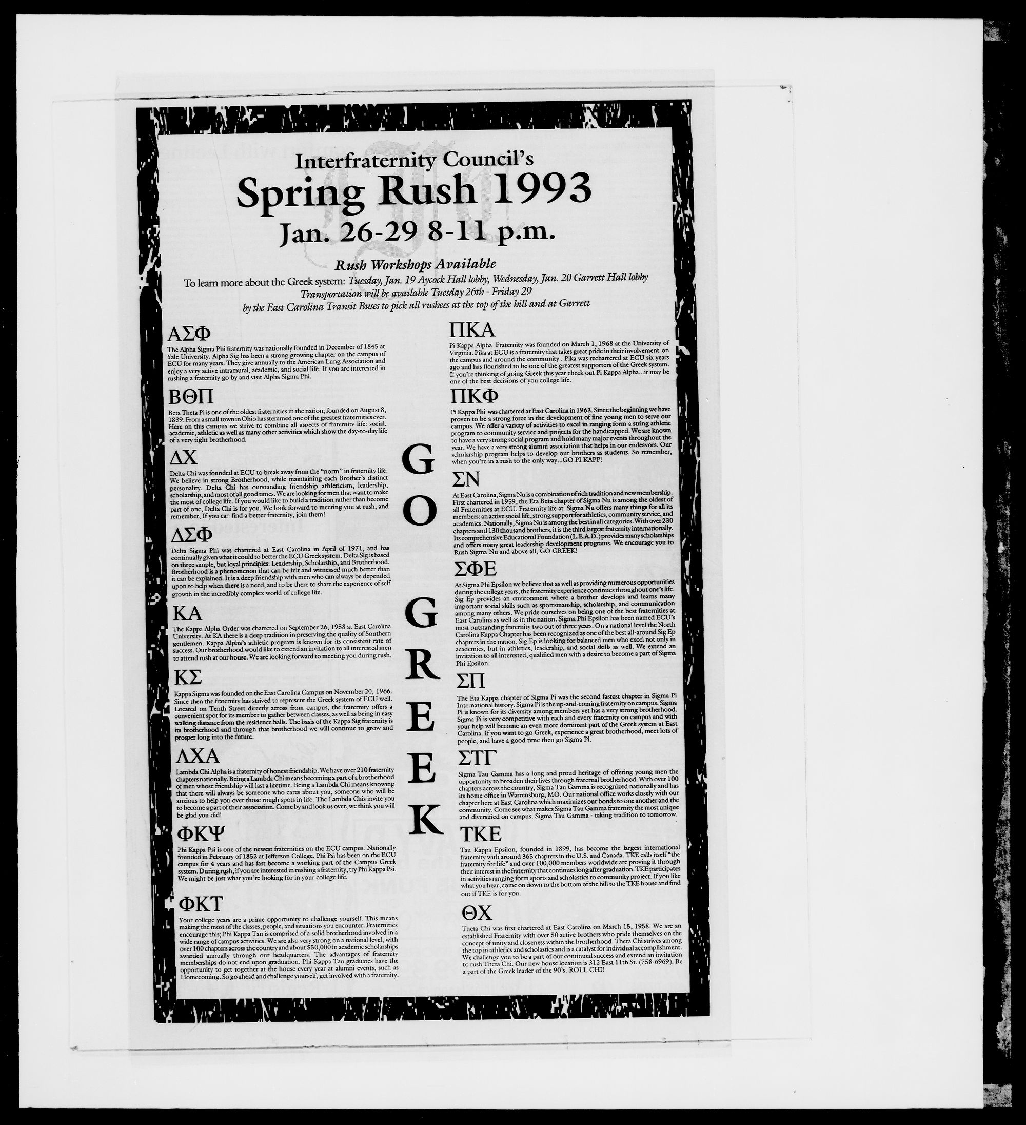 Since then the fraternity has strived to represent the Greek system of ECU well.