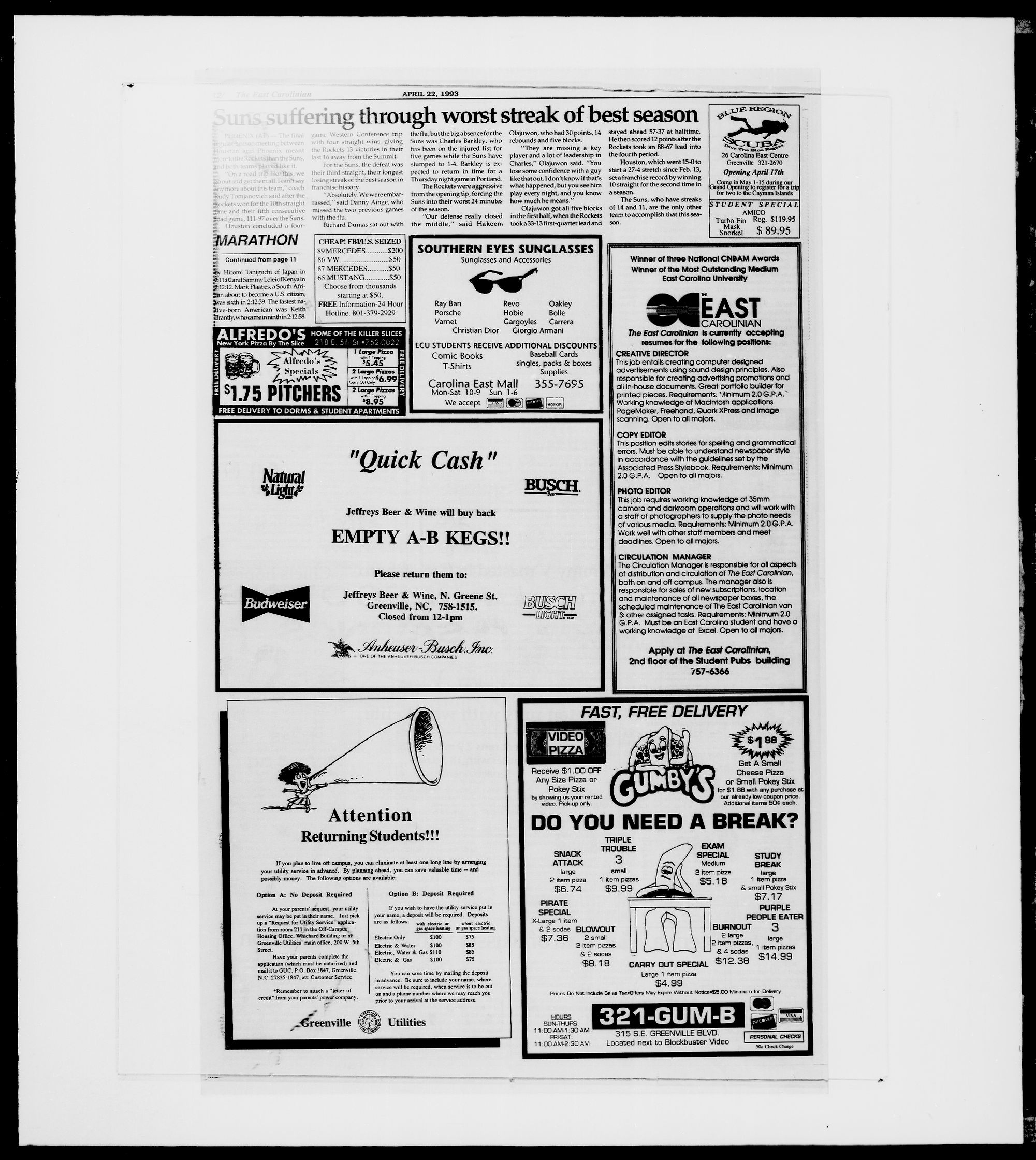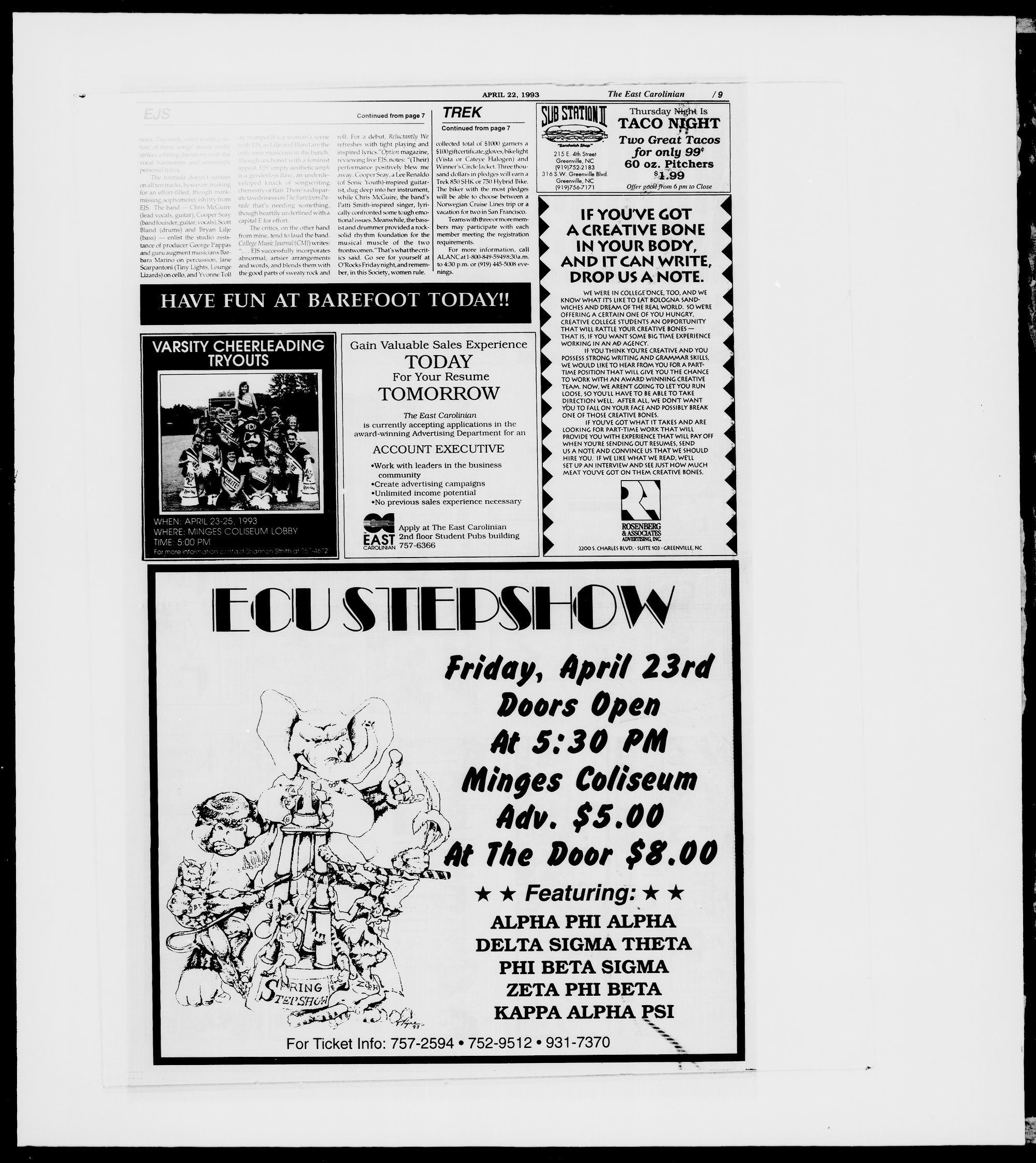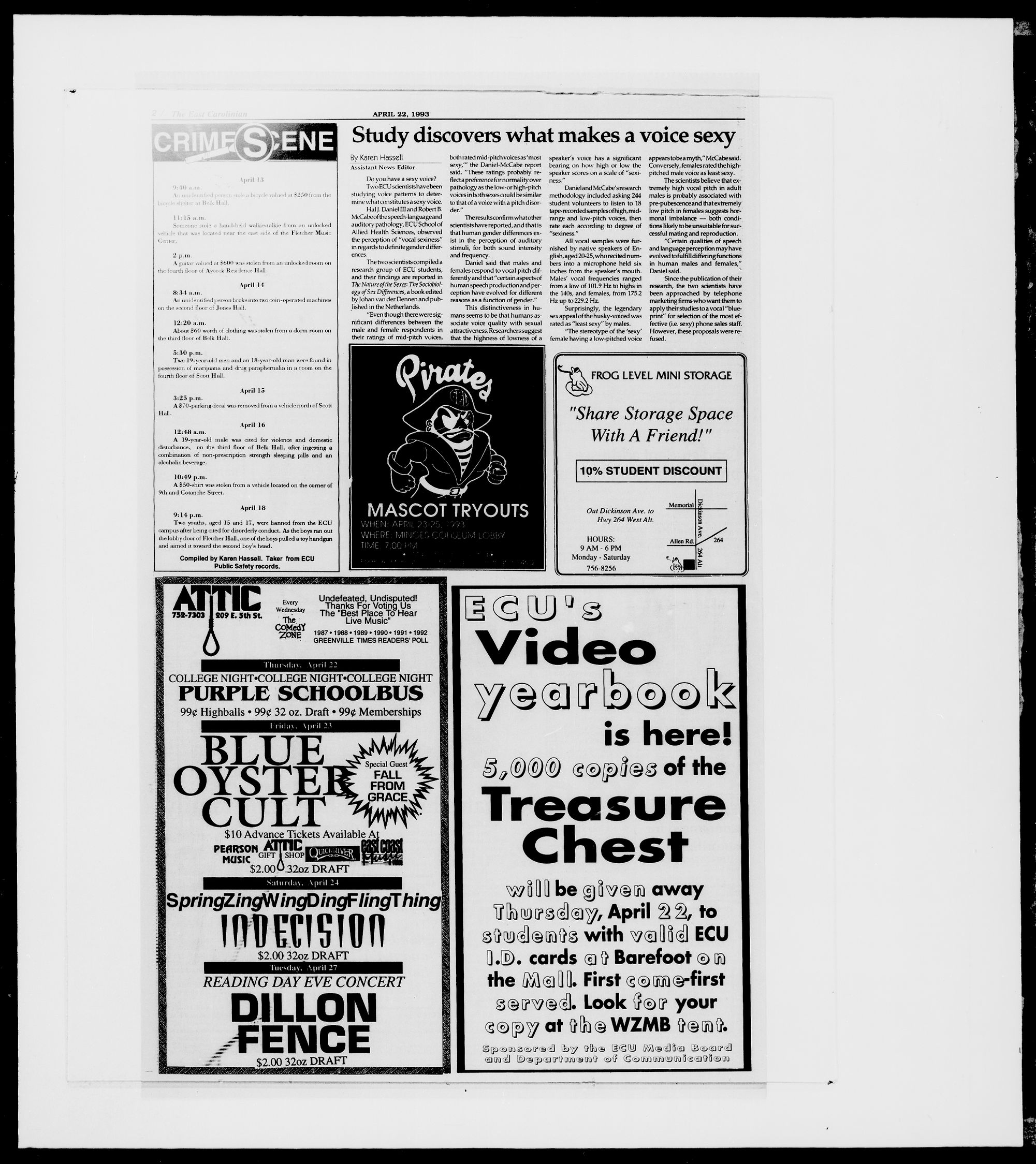East Carolina's student-run campus newspaper was first published in 1923 as the East Carolina Teachers College News (1923-1925). It has been re-named as The Teco Echo (1925, 1926-1952), East Carolinian (1952-1969), Fountainhead (1969-1979), and The East Carolinian (1969, 1979-present). It includes local, state, national, and international stories with a focus on campus events.