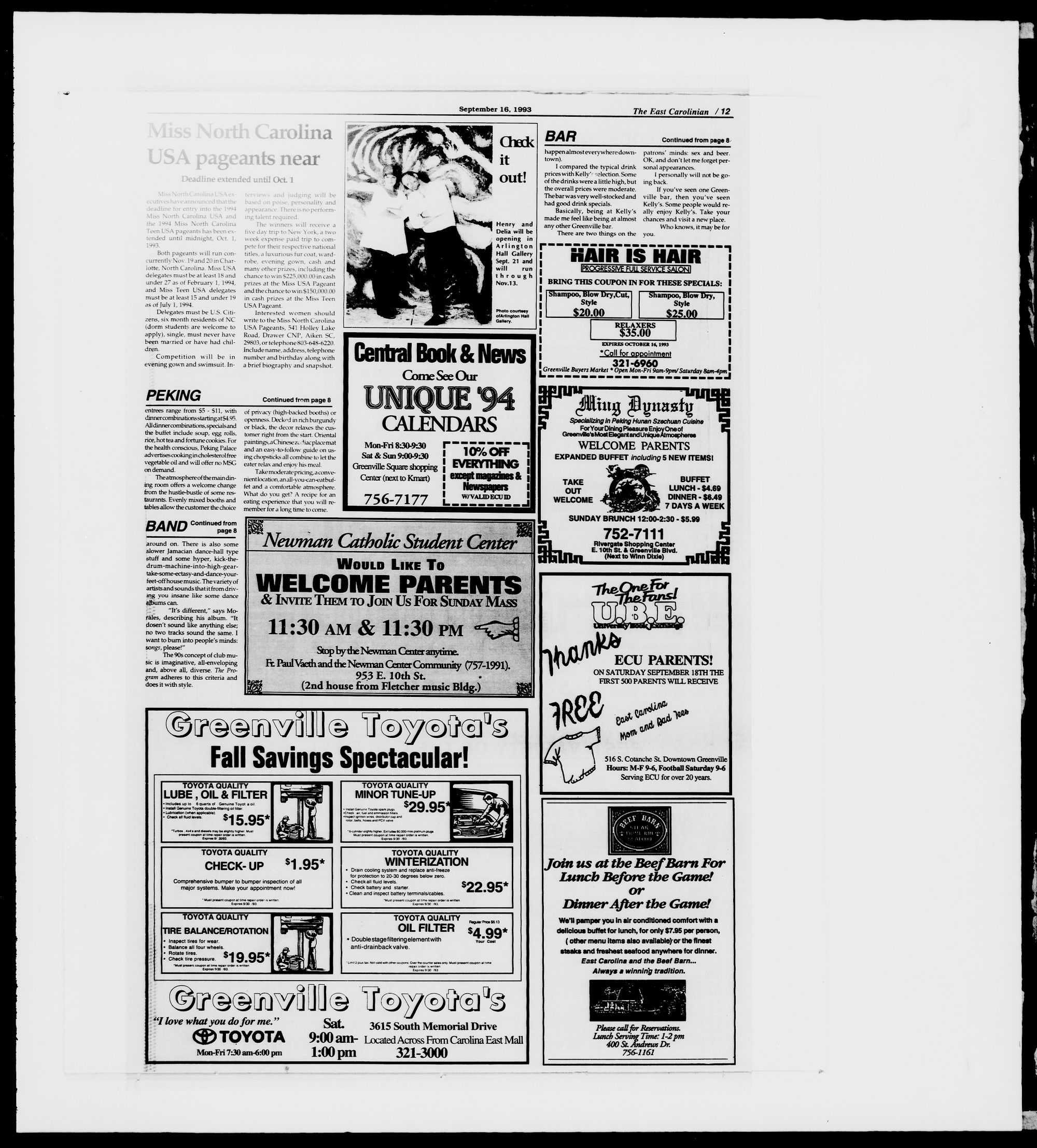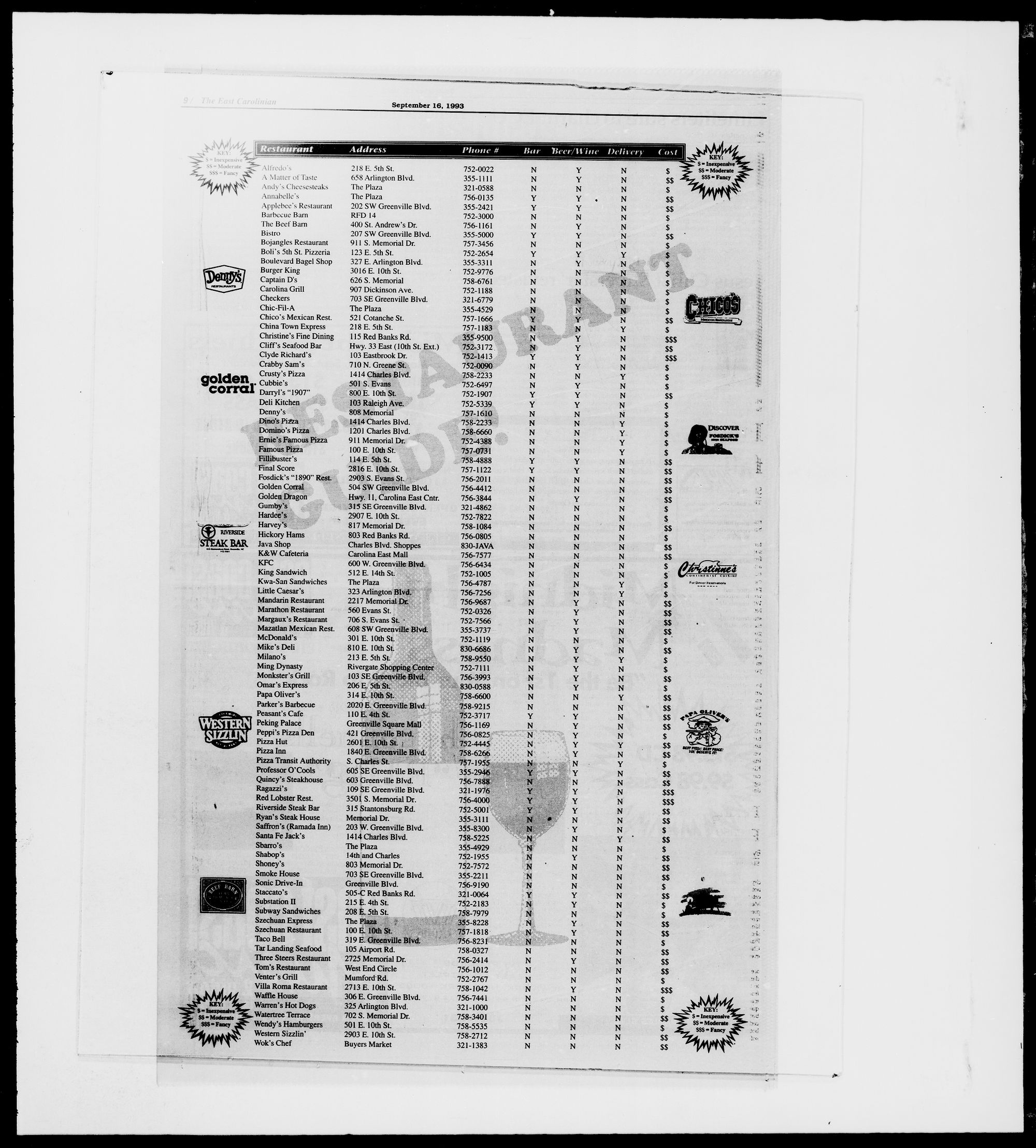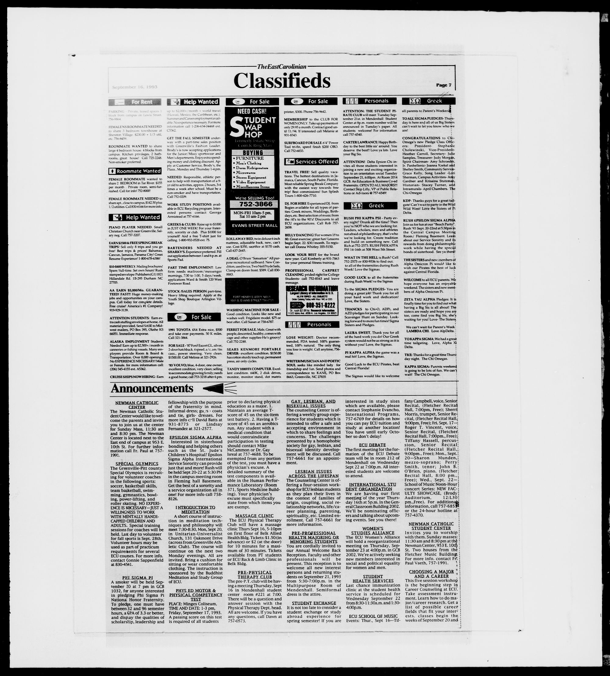 rL s f Eelve Wednesday, September 15 Thrown Tuesday, September 211993. In Greenville Store Only.