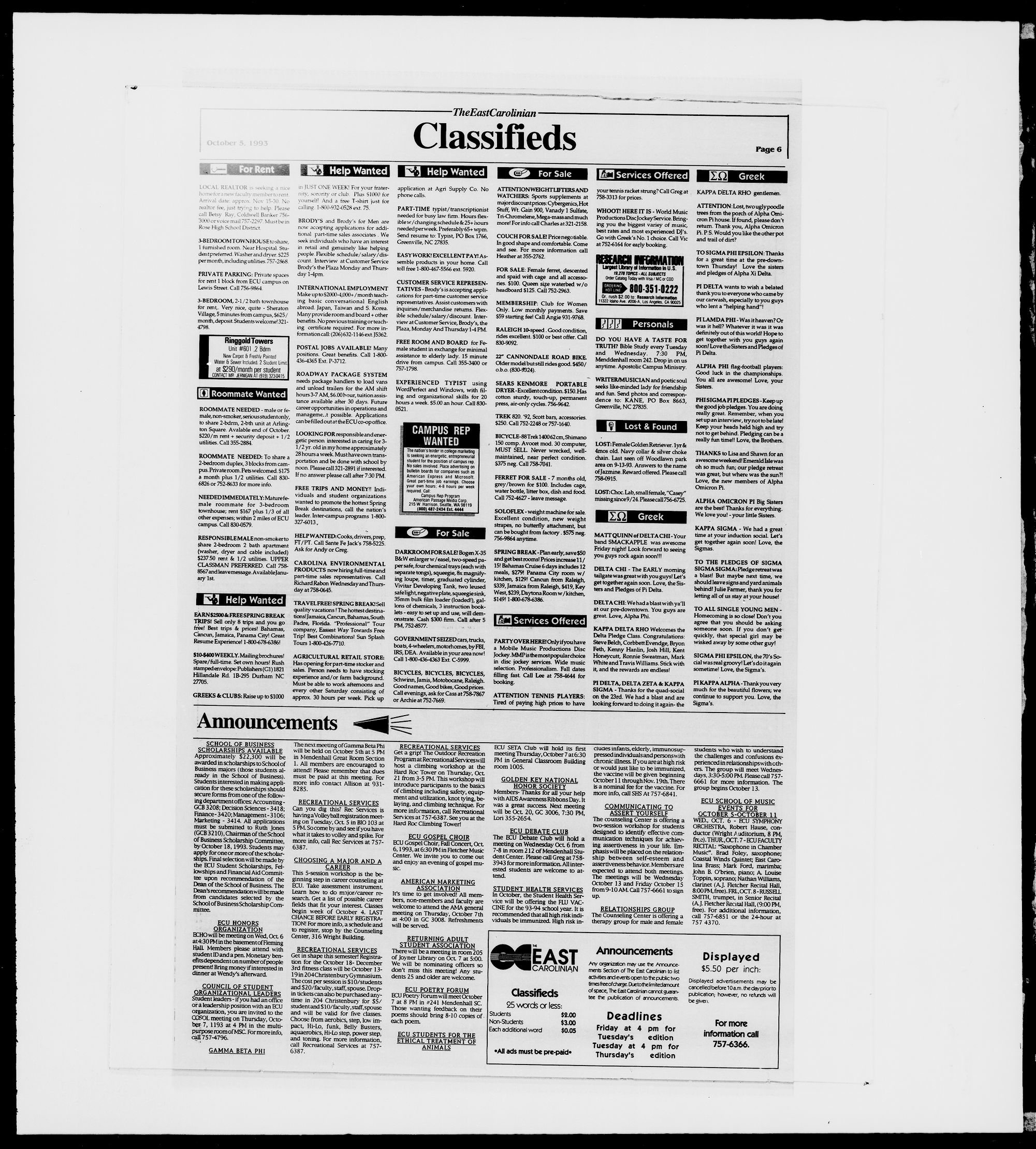 MctiinnLs Theatre (Corner or Kiflh and Kastcrn)September 30. October 1.2.4 and 5,1993 at X:00 p.m. October 3.1993 at 2:00 p.m. Call - 757-6829General Public: $12.50 ECU Students: $750