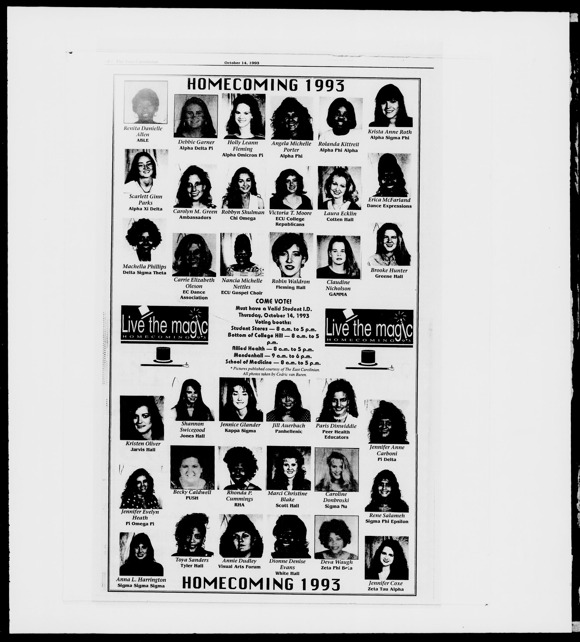 ? Includes announcement of Homecoming candidates and contest winners.