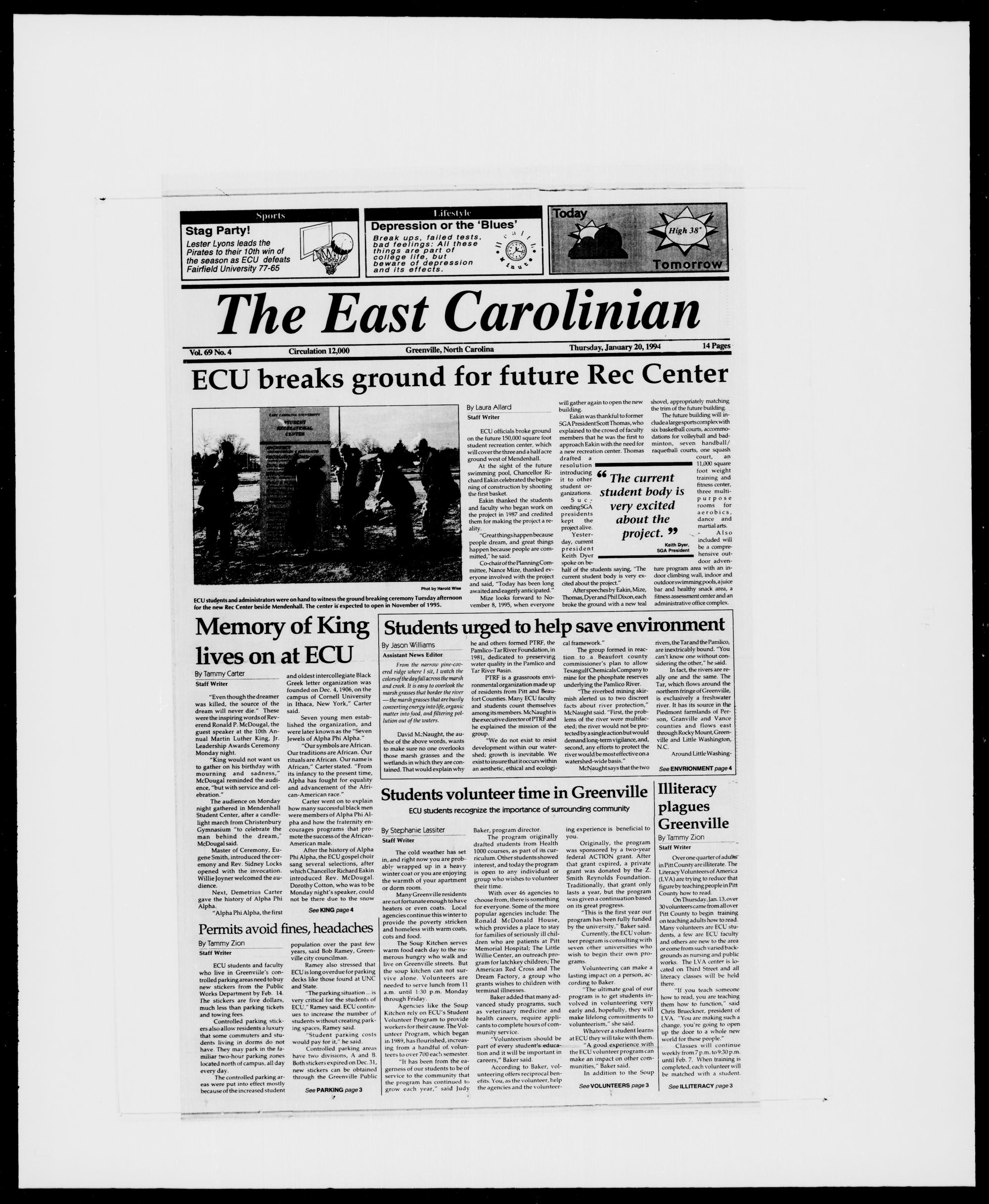 for the new Rec Center beside Mendenhall. The center is expected to open in November of 1995.