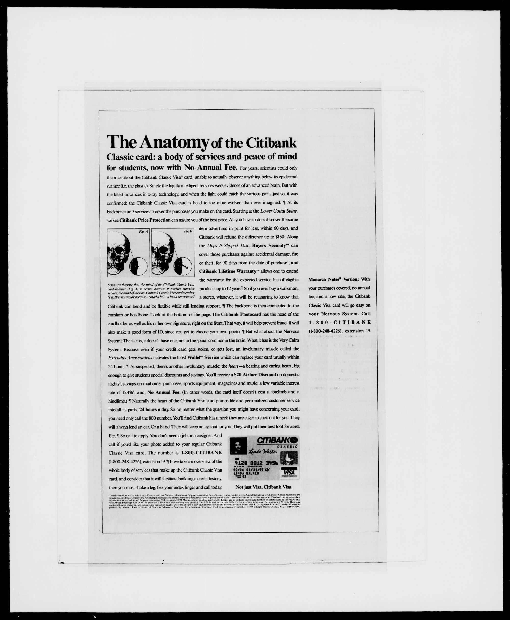 theorize about the Citibank Classic Visa? card, unable to actually observe anything below its epidermal