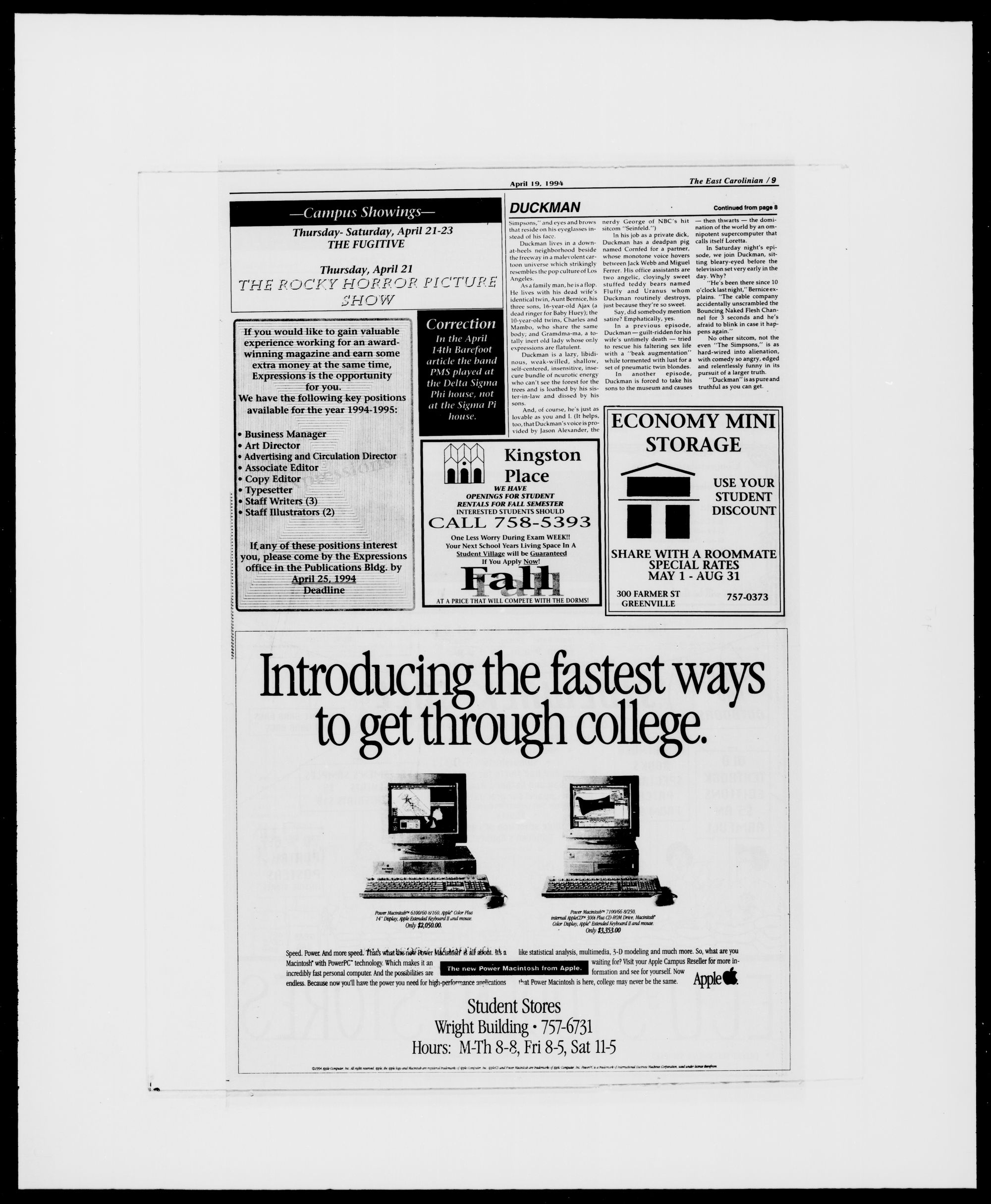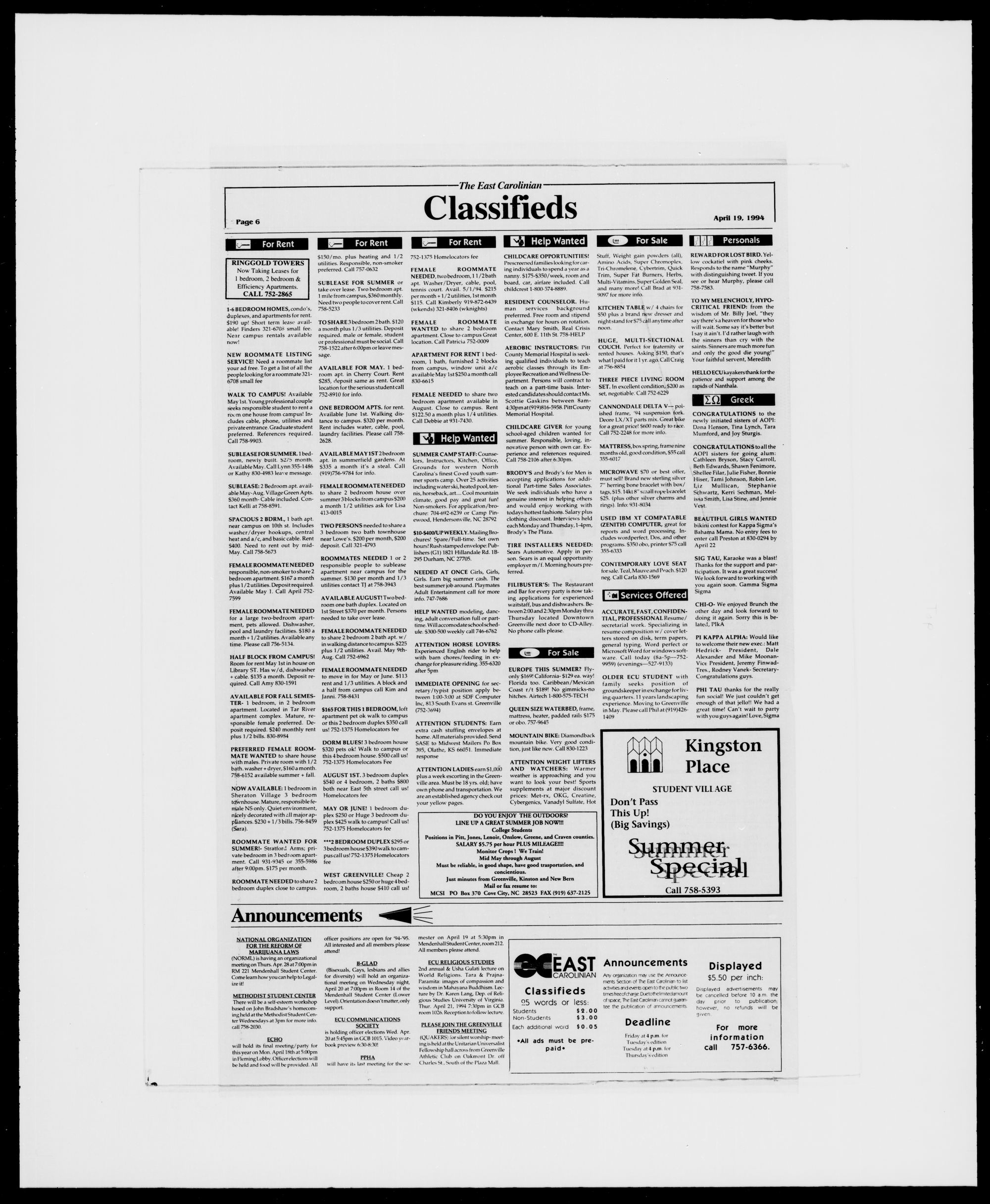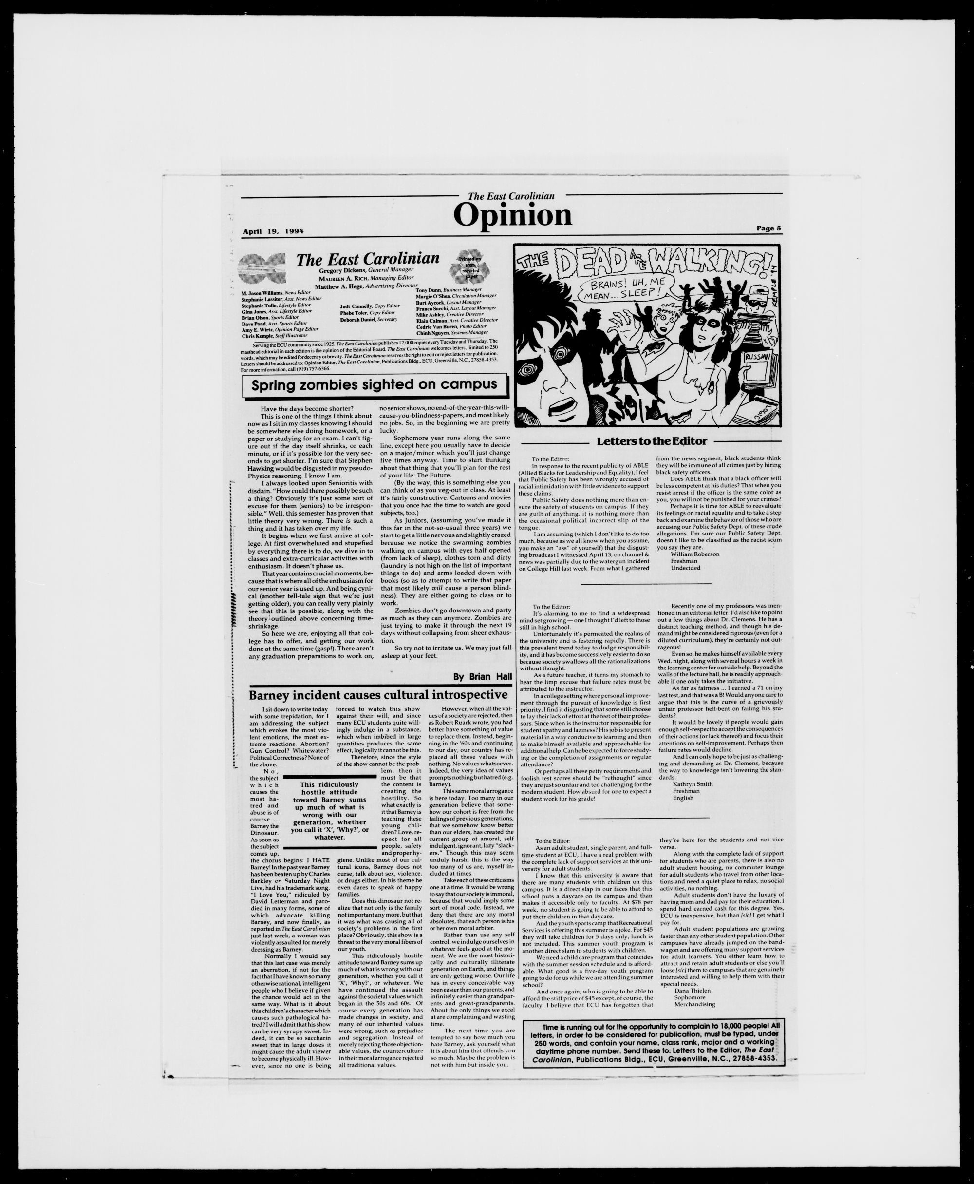 East Carolina's student-run campus newspaper was first published in 1923 as the East Carolina Teachers College News (1923-1925). It has been re-named as The Teco Echo (1925, 1926-1952), East Carolinian (1952-1969), Fountainhead (1969-1979), and The East Carolinian (1969, 1979-present). It includes local, state, national, and international stories with a focus on campus events.